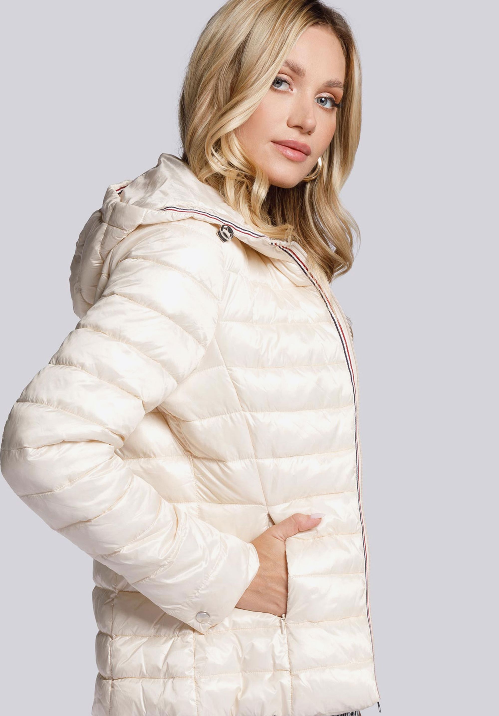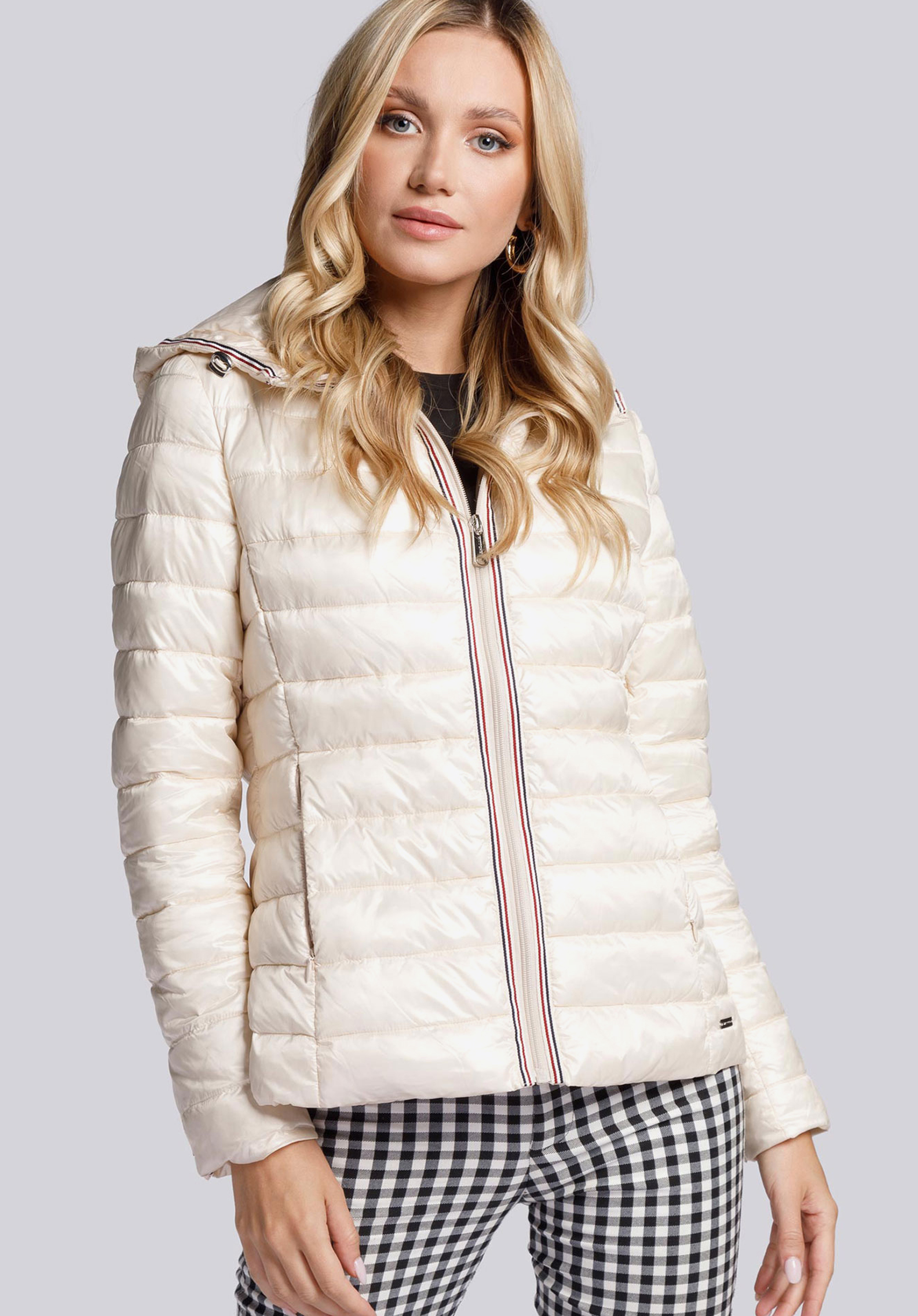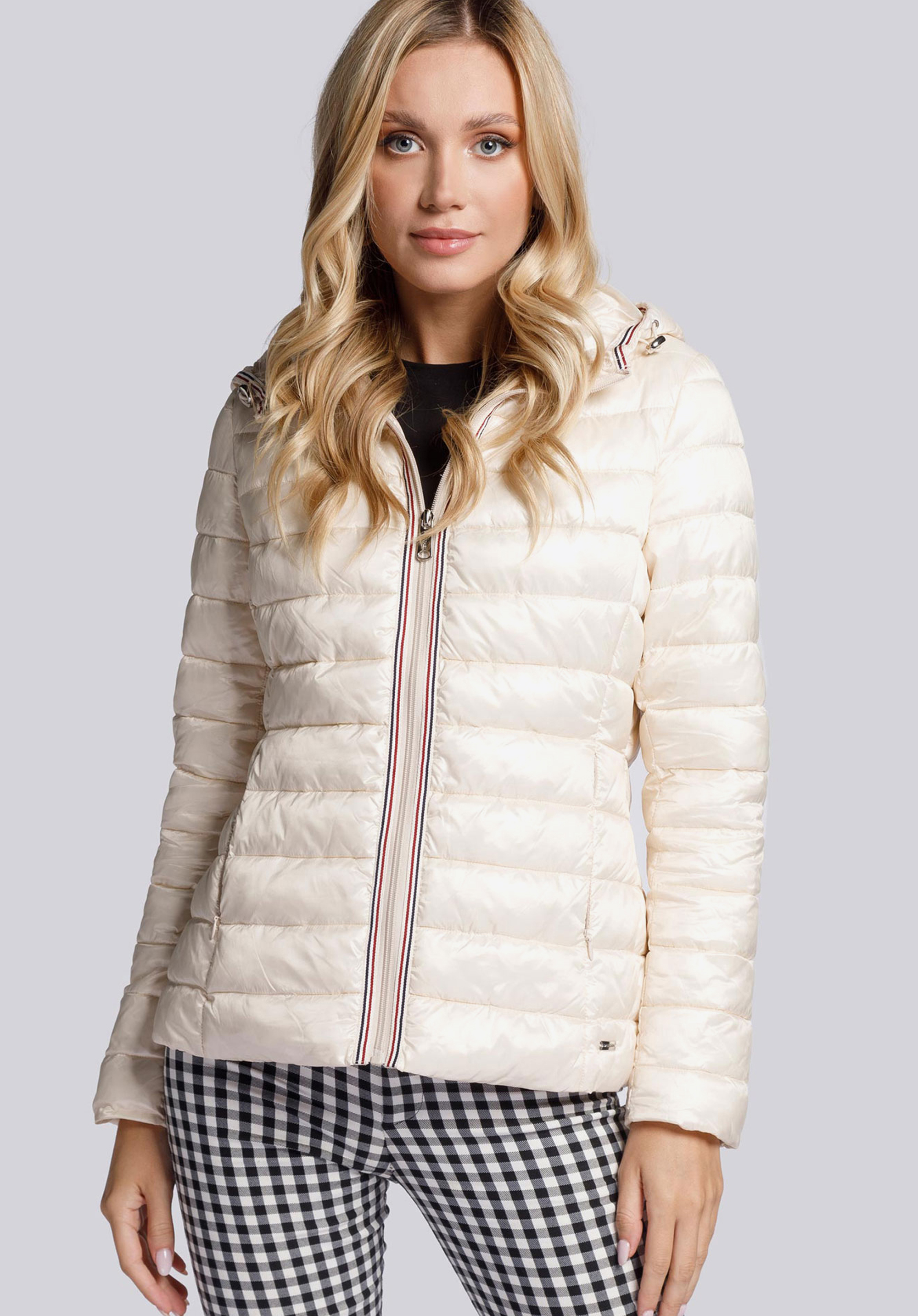 Budując garderobę na zbliżający się sezon, warto postawić na coś, co odświeży te same kreacje. Damska kurtka pikowana z trójkolorową lamówką dobrze spełni tę funkcję. Dobrej jakości kurtka przejściowa, lekko ocieplana, o uniwersalnym kolorze i ponadczasowym kroju, pozwoli na stworzenie wielu różnorodnych kompozycji ubraniowych na co dzień. Klasyczny fason do linii bioder został urozmaicony taśmą biegnącą wzdłuż zapięcia, wewnętrznego brzegu kaptura oraz przy obu rękawach. Kolorowy lampas nadaje całości sportowego charakteru i wpisuje okrycie w najświeższe trendy modowe.