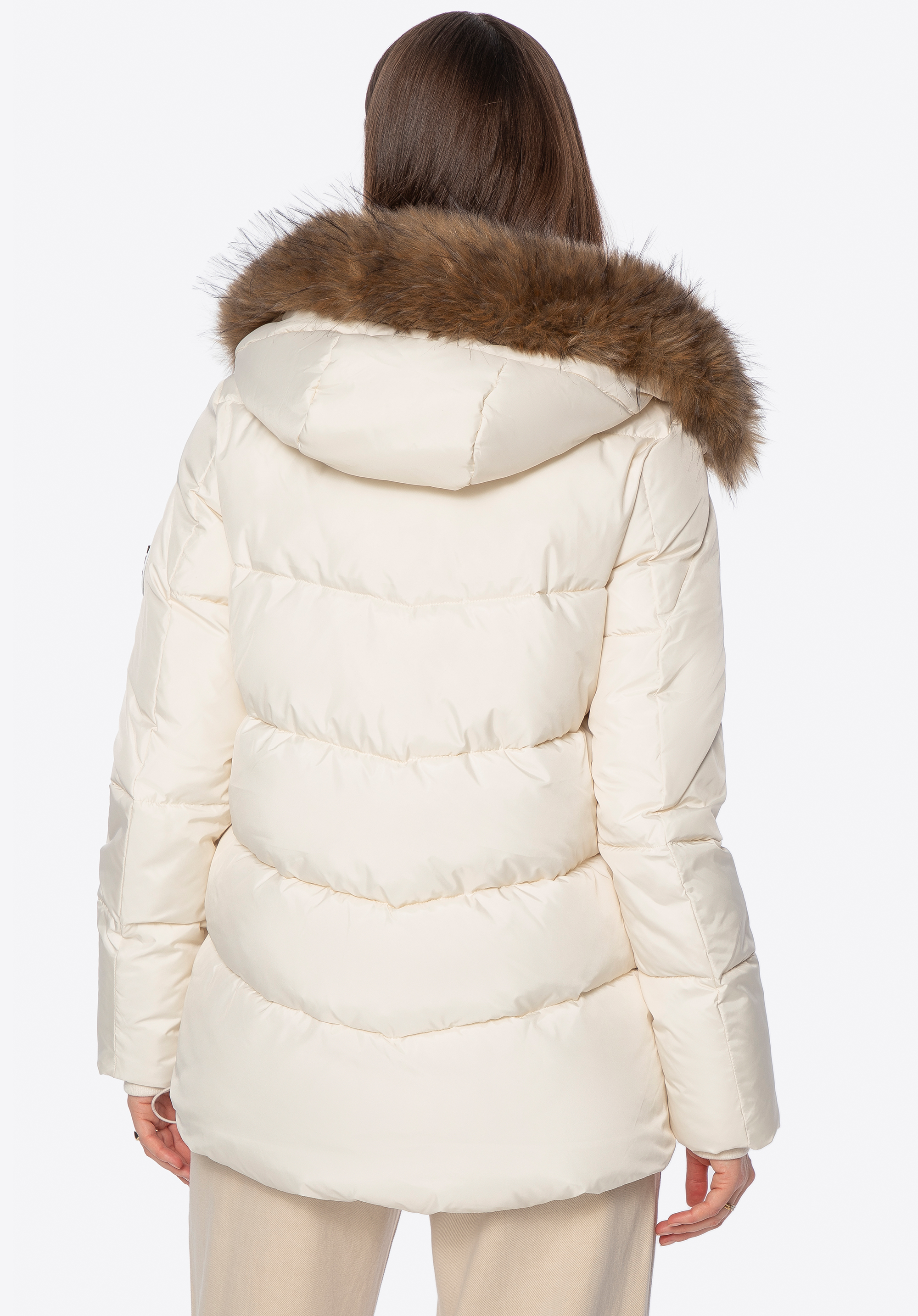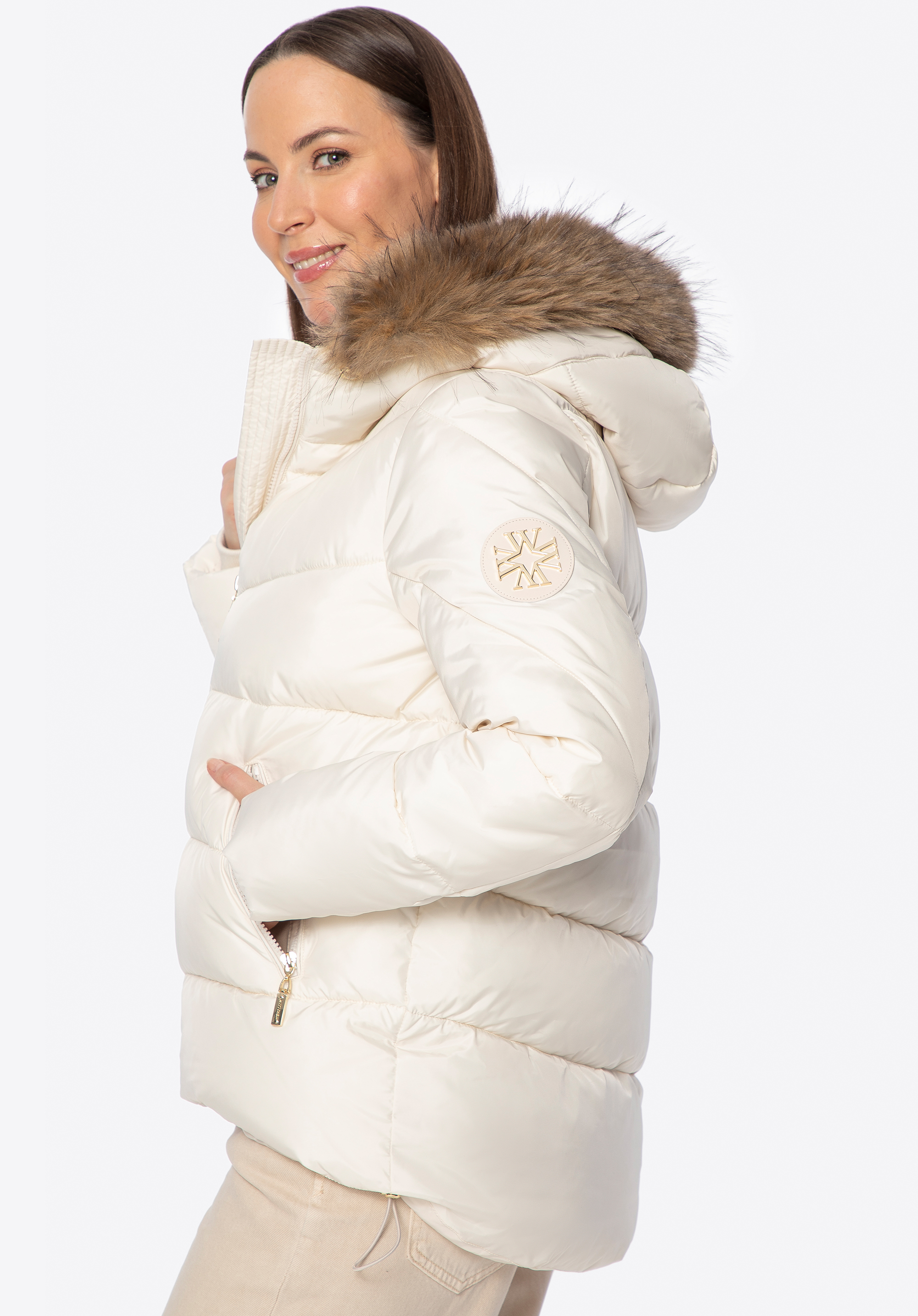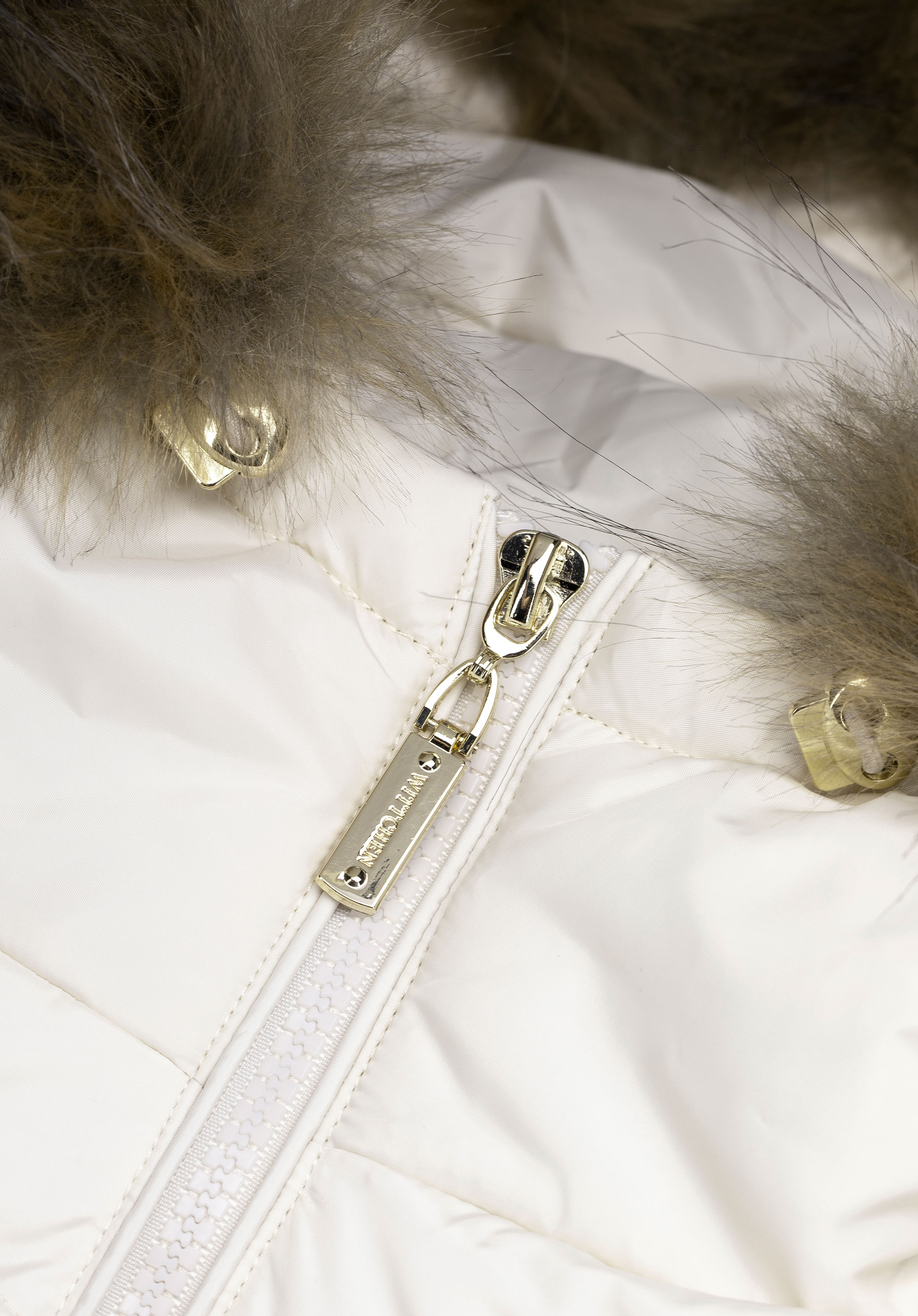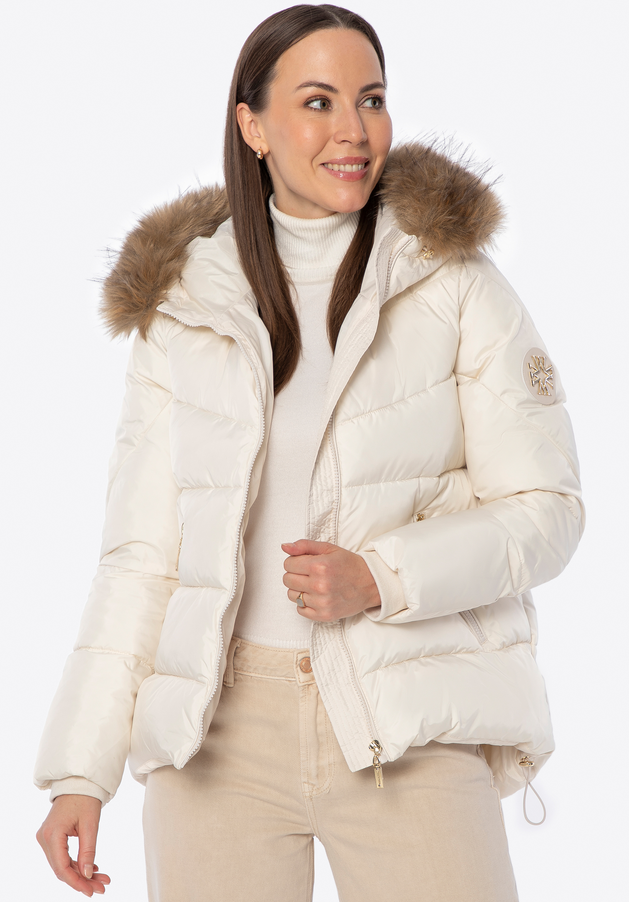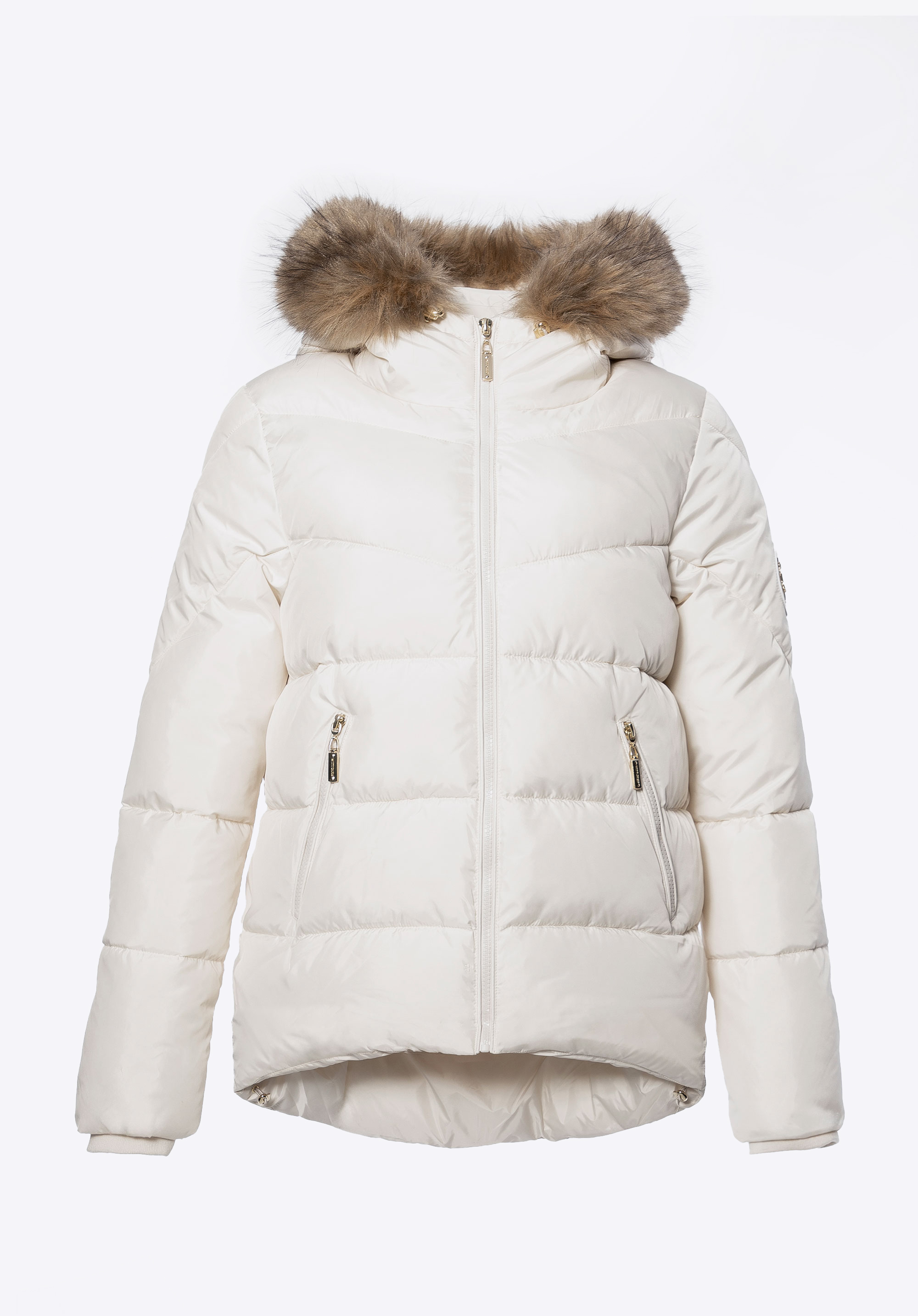 Damska kurtka puchowa ze ściągaczami kremowa