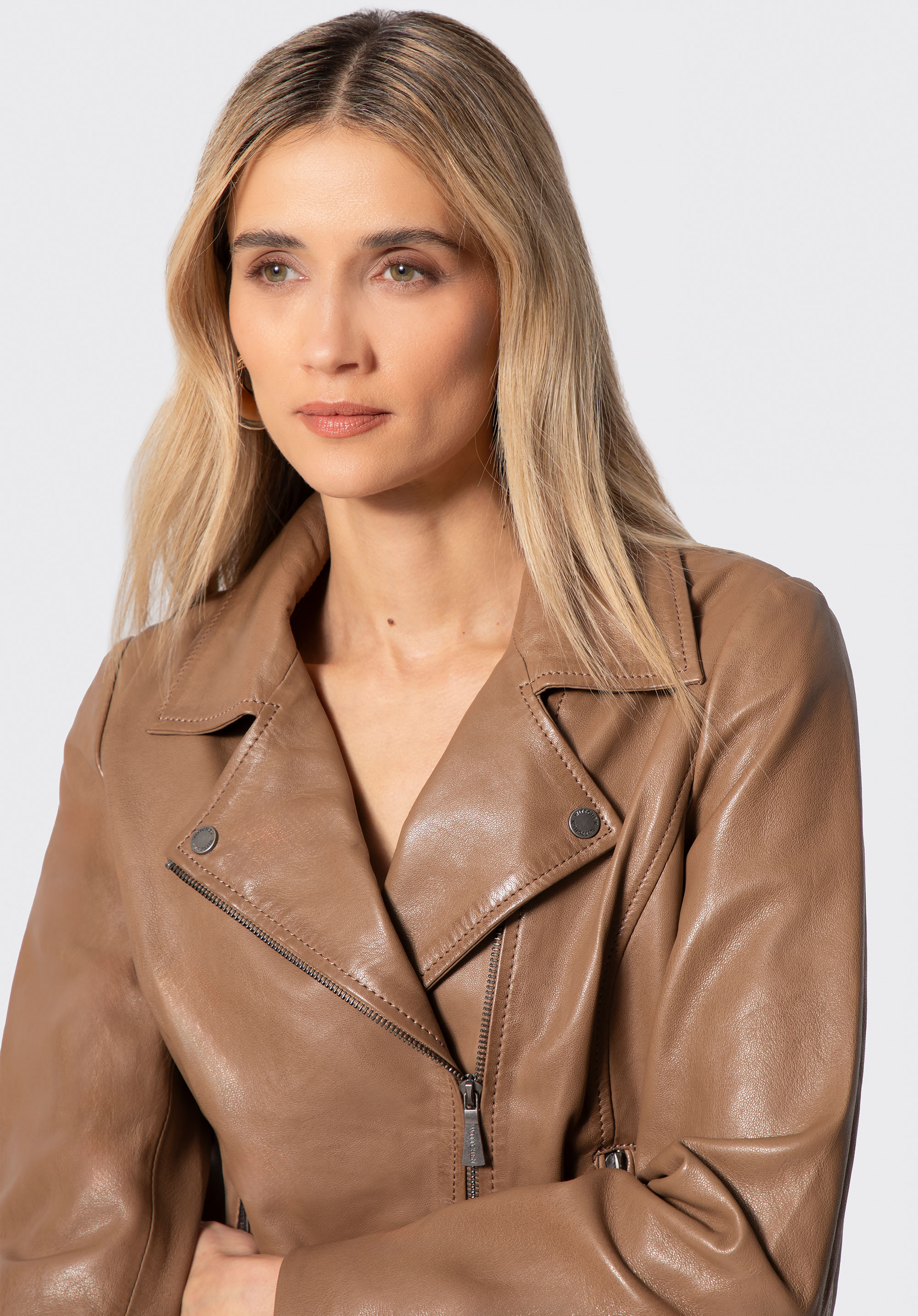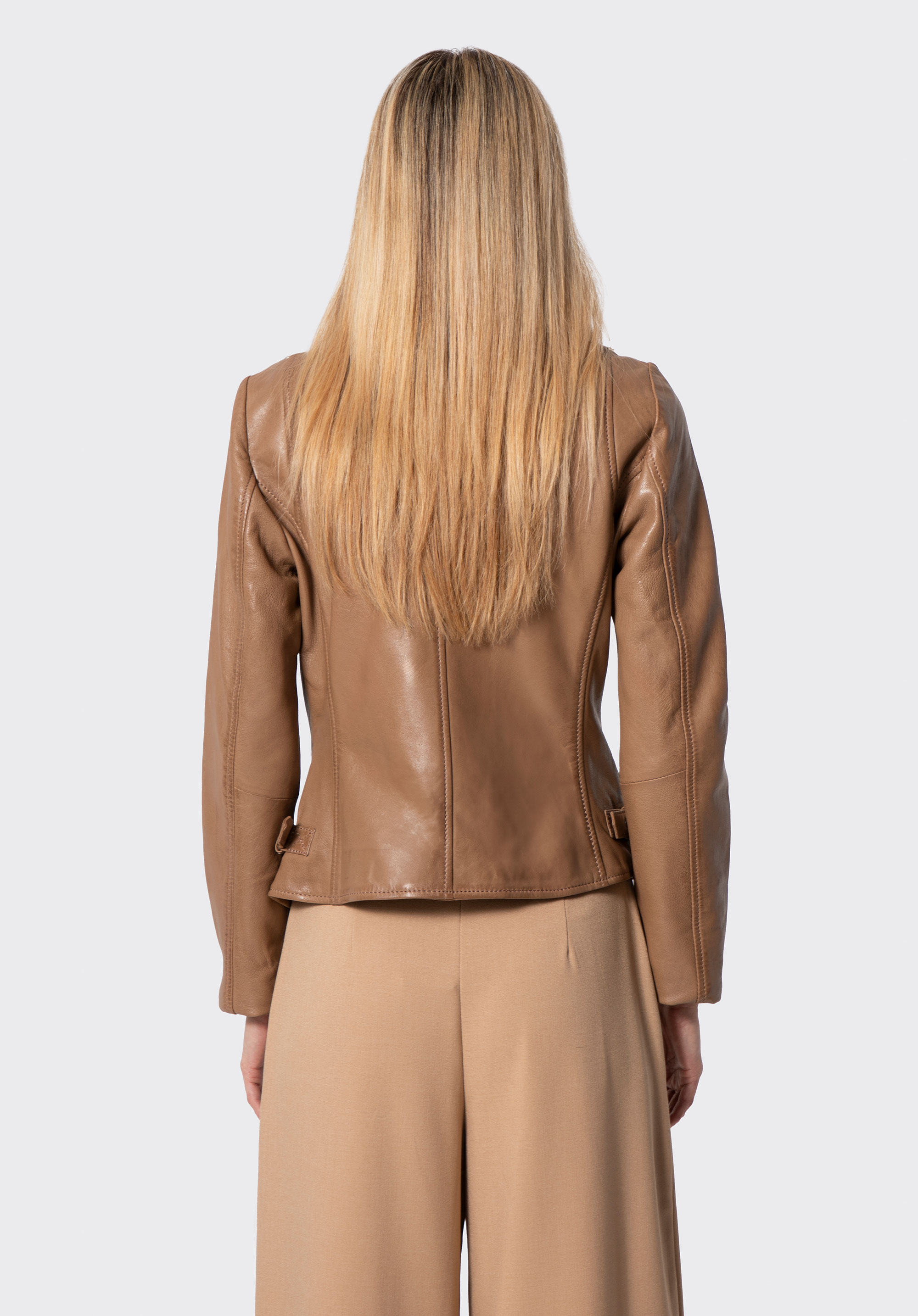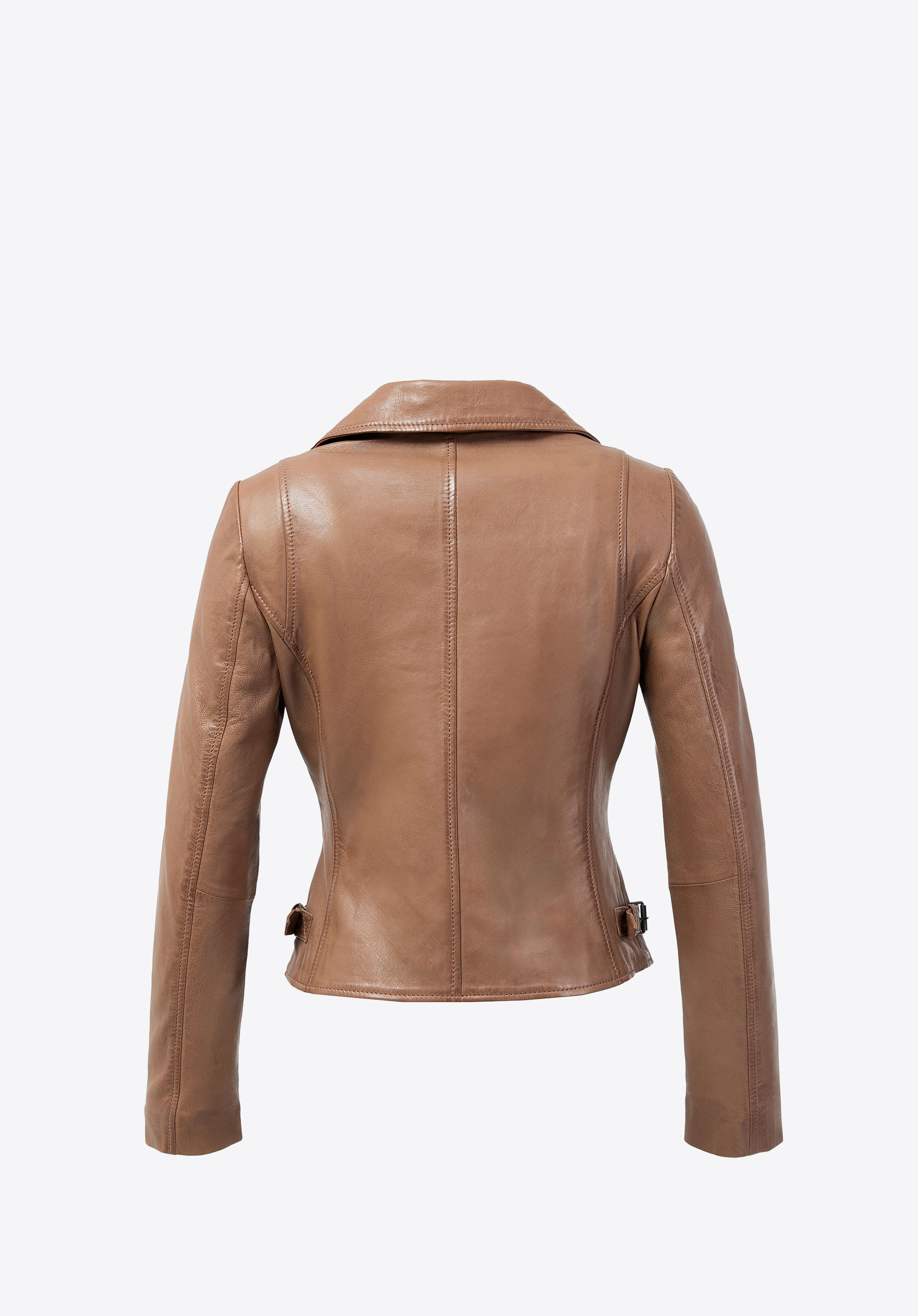 Damska kurtka ramoneska ze skóry naturalnej owczej to propozycja dla kobiet, które chcą wyrazić charakter w miejskich i wieczorowych stylizacjach, zachowując wyrafinowaną formę. Naturalna skóra owcza, modelująca linia talii oraz dynamiczne detale w postaci ukośnego zamka i regulacji w pasie zapewniają perfekcyjne dopasowanie, trwałość i ponadczasową elegancję z nutą nowoczesności.