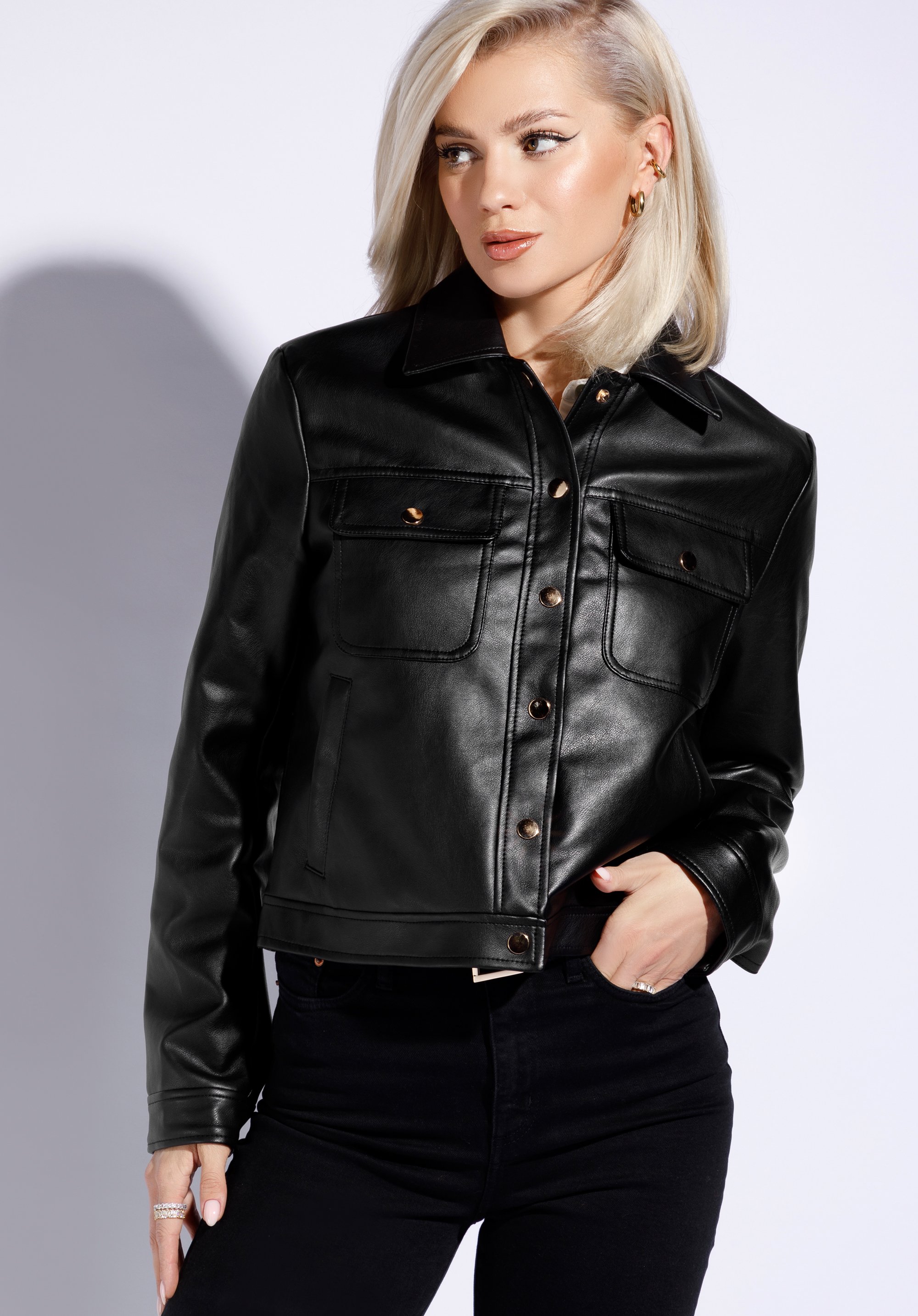Damska kurtka z ekoskóry na zatrzaski to modny dodatek, który możesz nosić przez wiele sezonów.