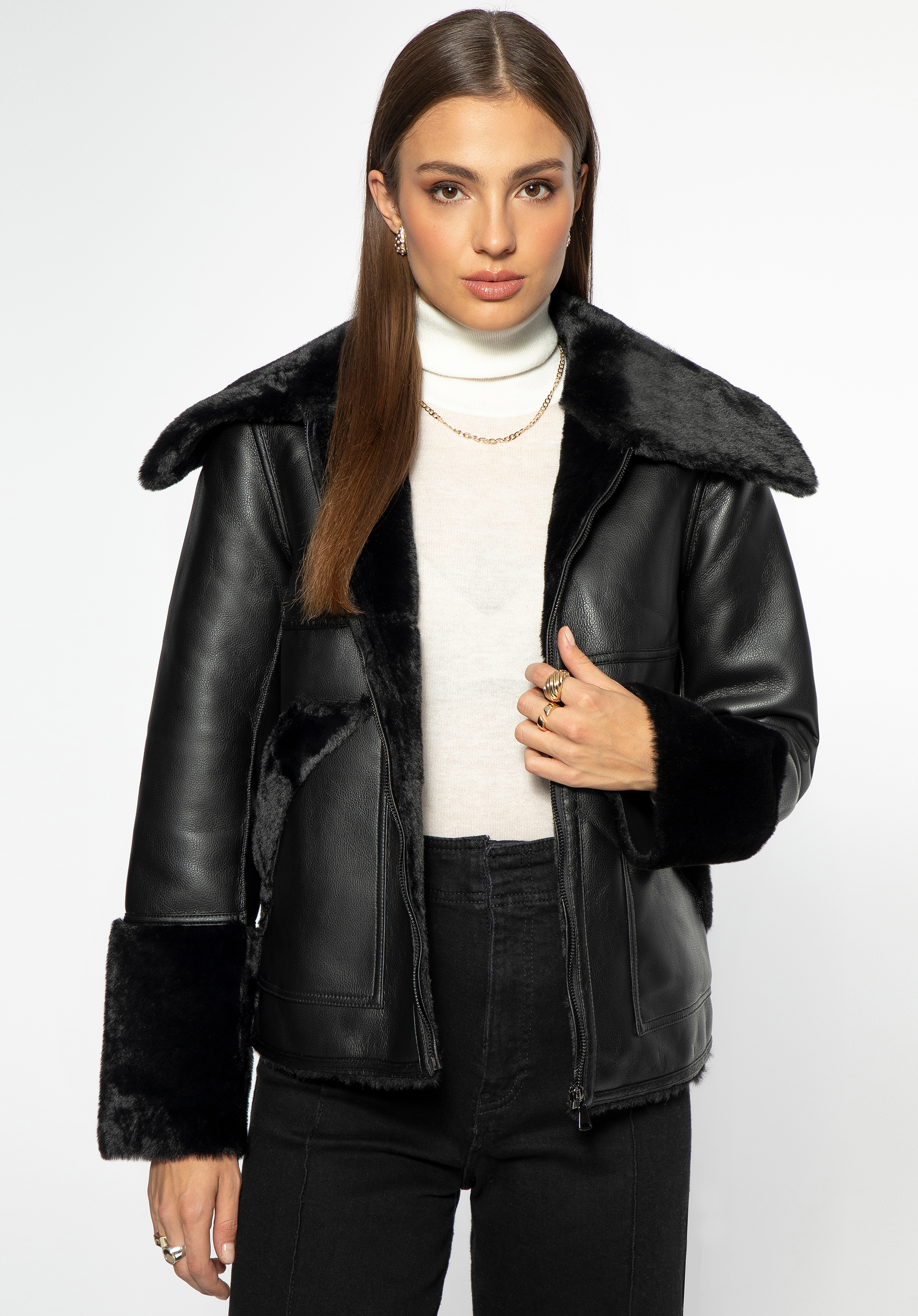 miękkiej podszewce przyjemnie będzie ją nosić. Szykownie dopełni ulubione dżinsy boyfriendy i trapery, jak również dopasowaną minisukienkę i botki na obcasie. Damska kurtka z ekoskóry podszyta sztucznym futerkiem to świetny wybór dla miłośniczek modnych dodatków.