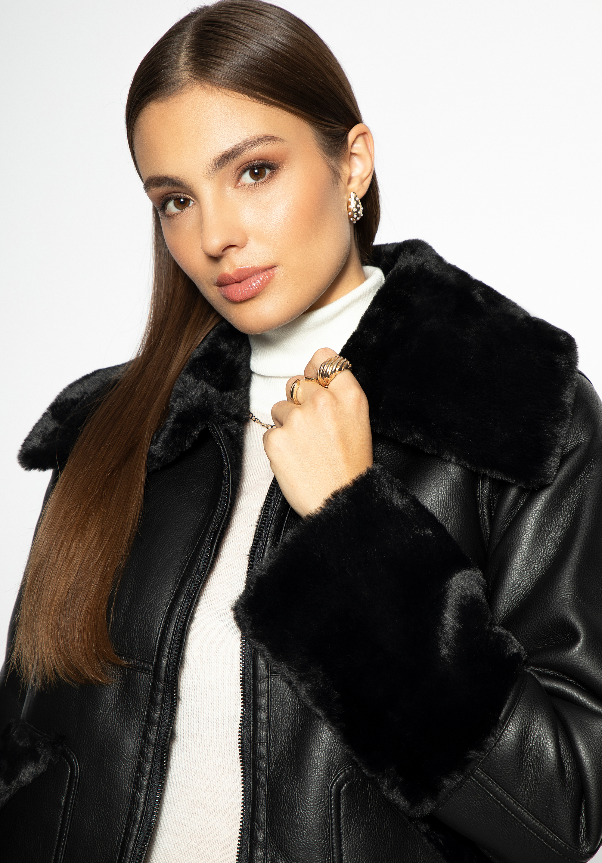 - wstawki ze sztucznego futerka na rękawach i kieszeniach;