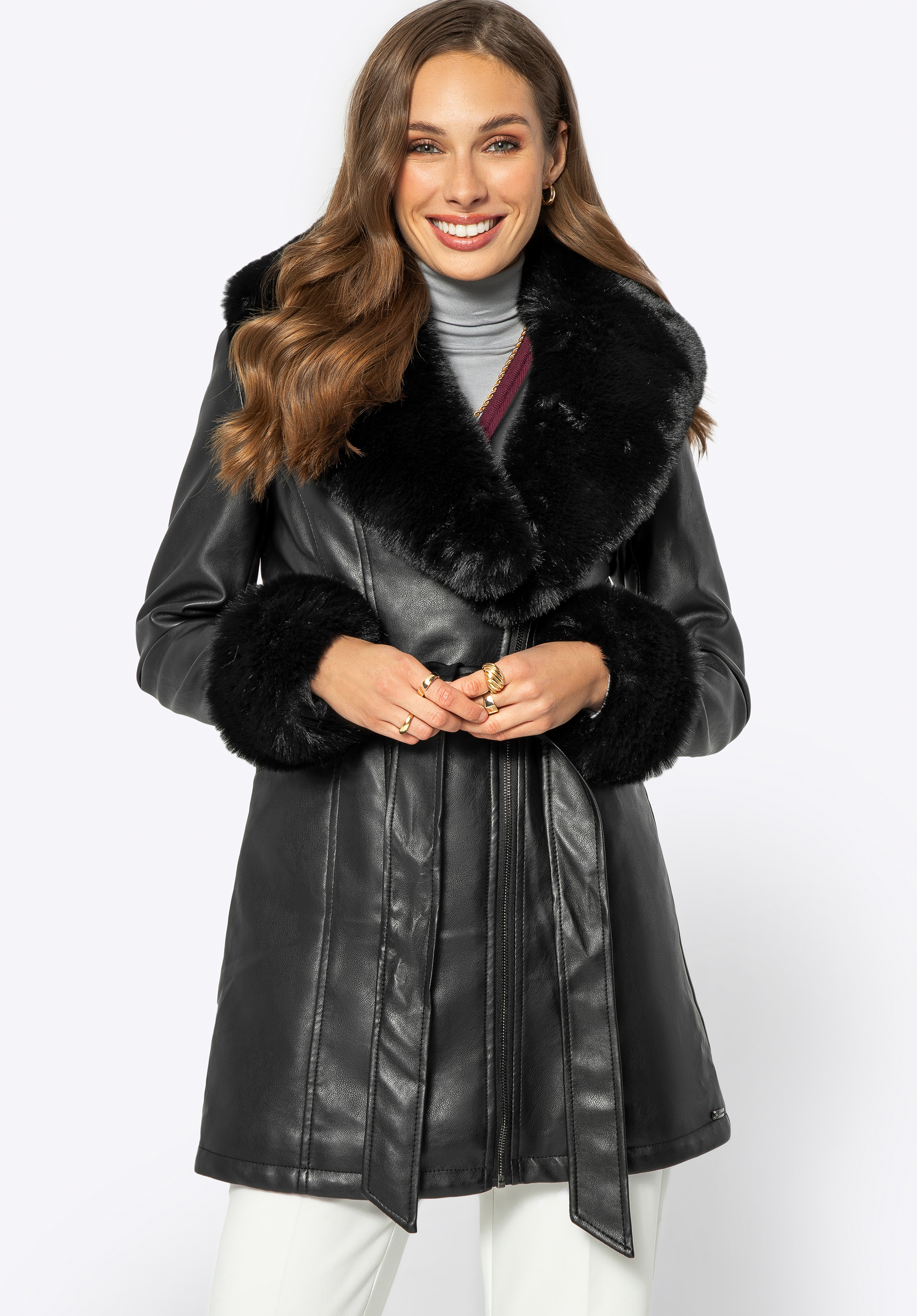 Damska kurtka z ekoskóry i futerkowymi mankietami