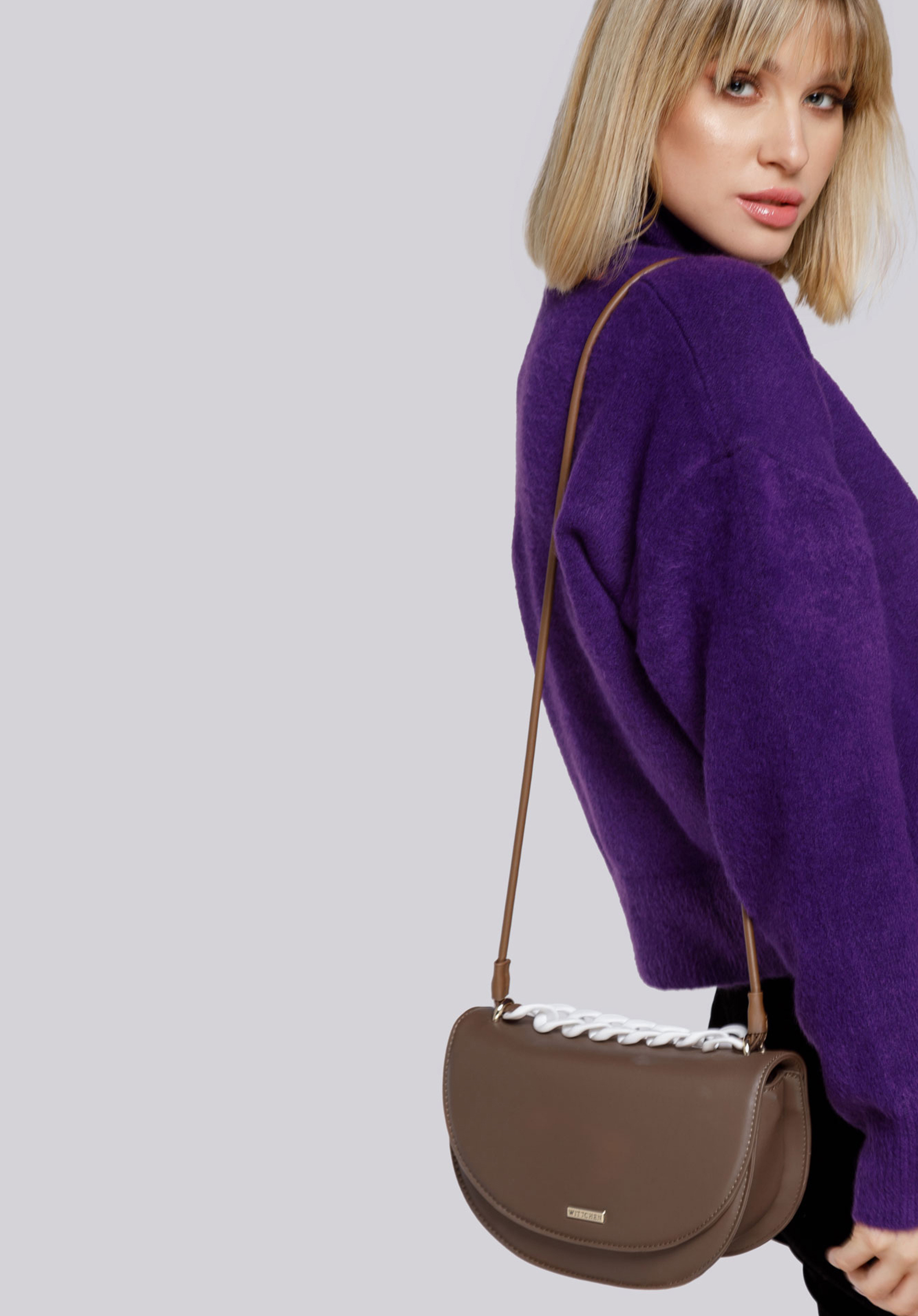 Damska listonoszka półokrągła z grubym łańcuchem brązowa