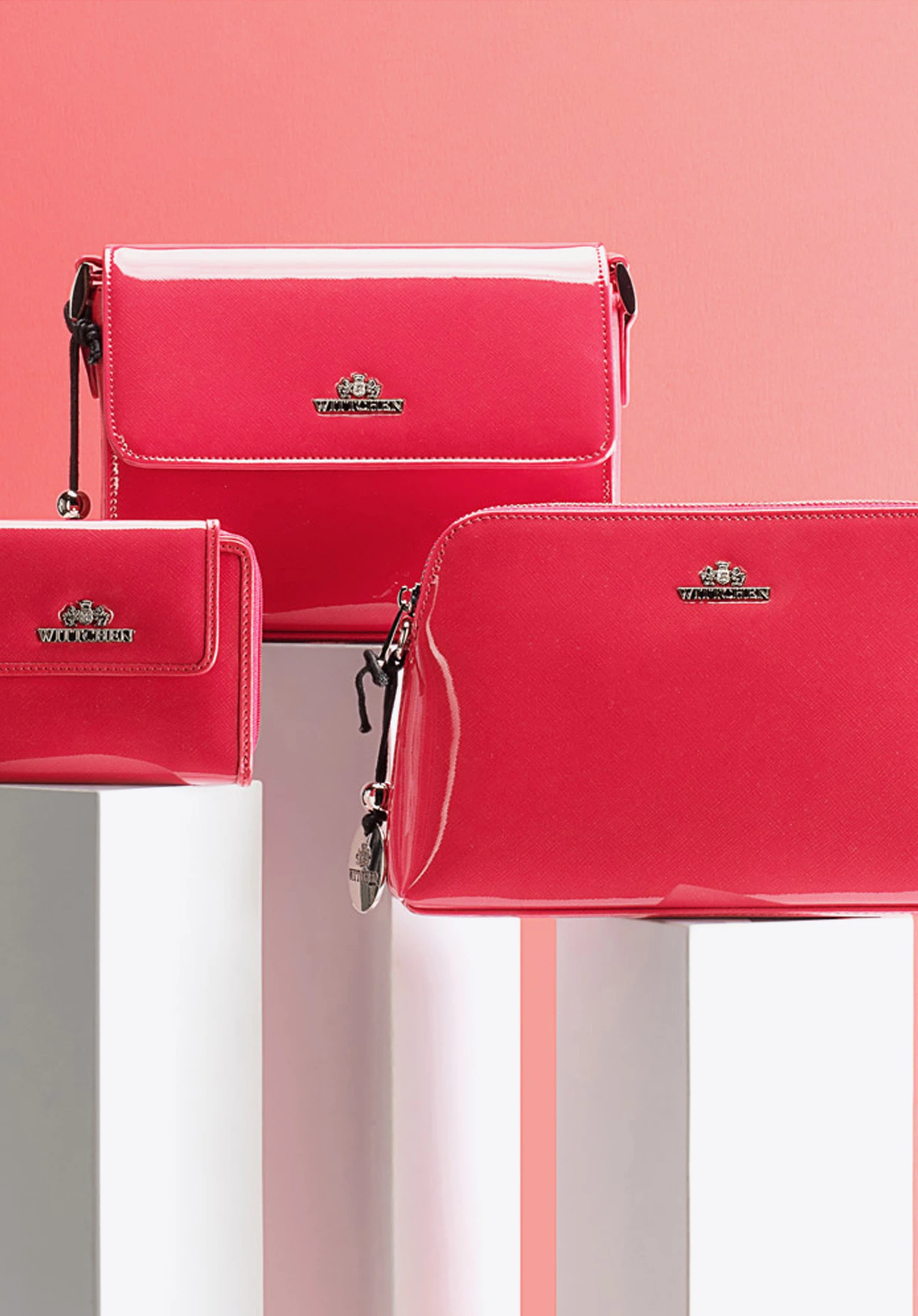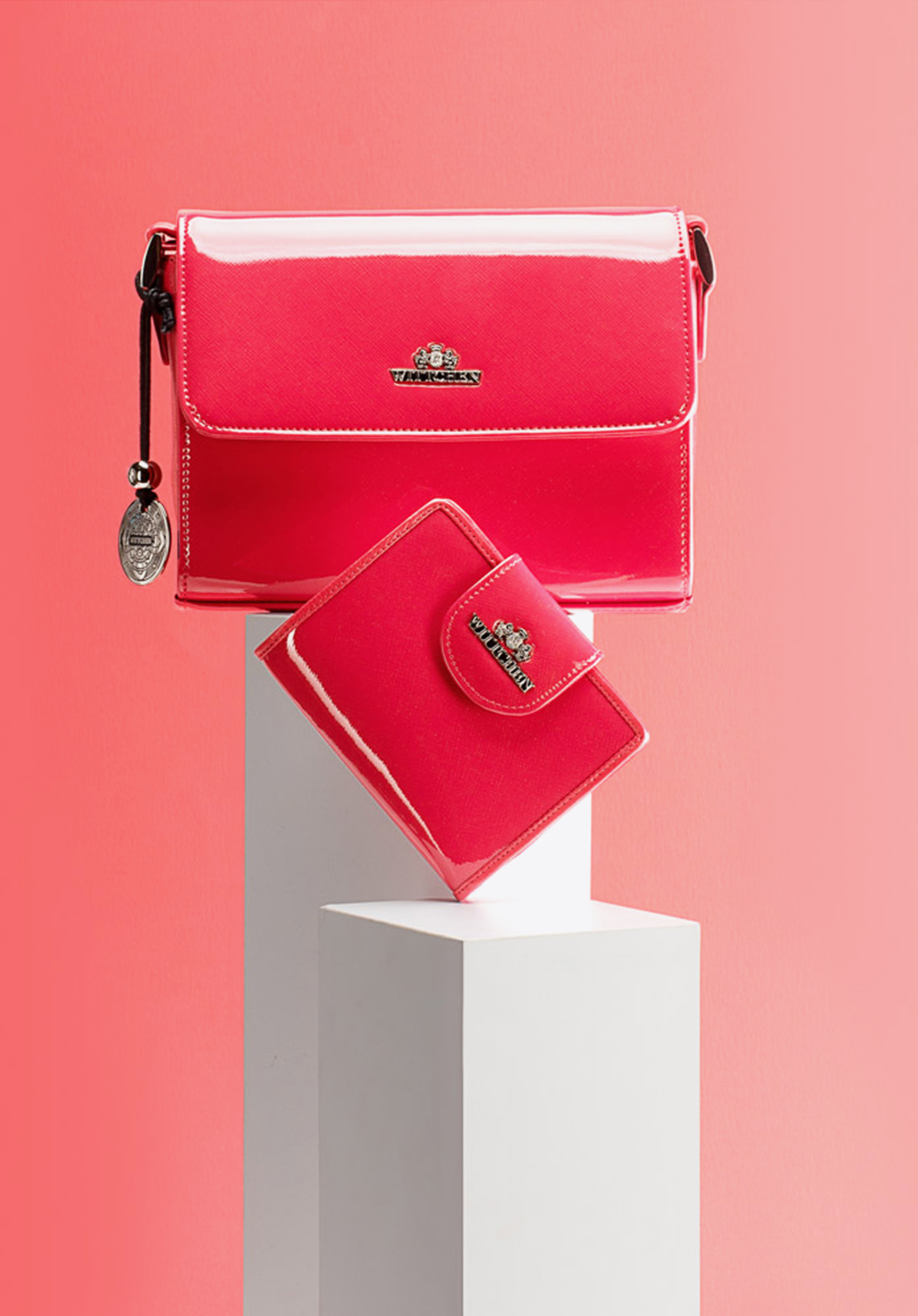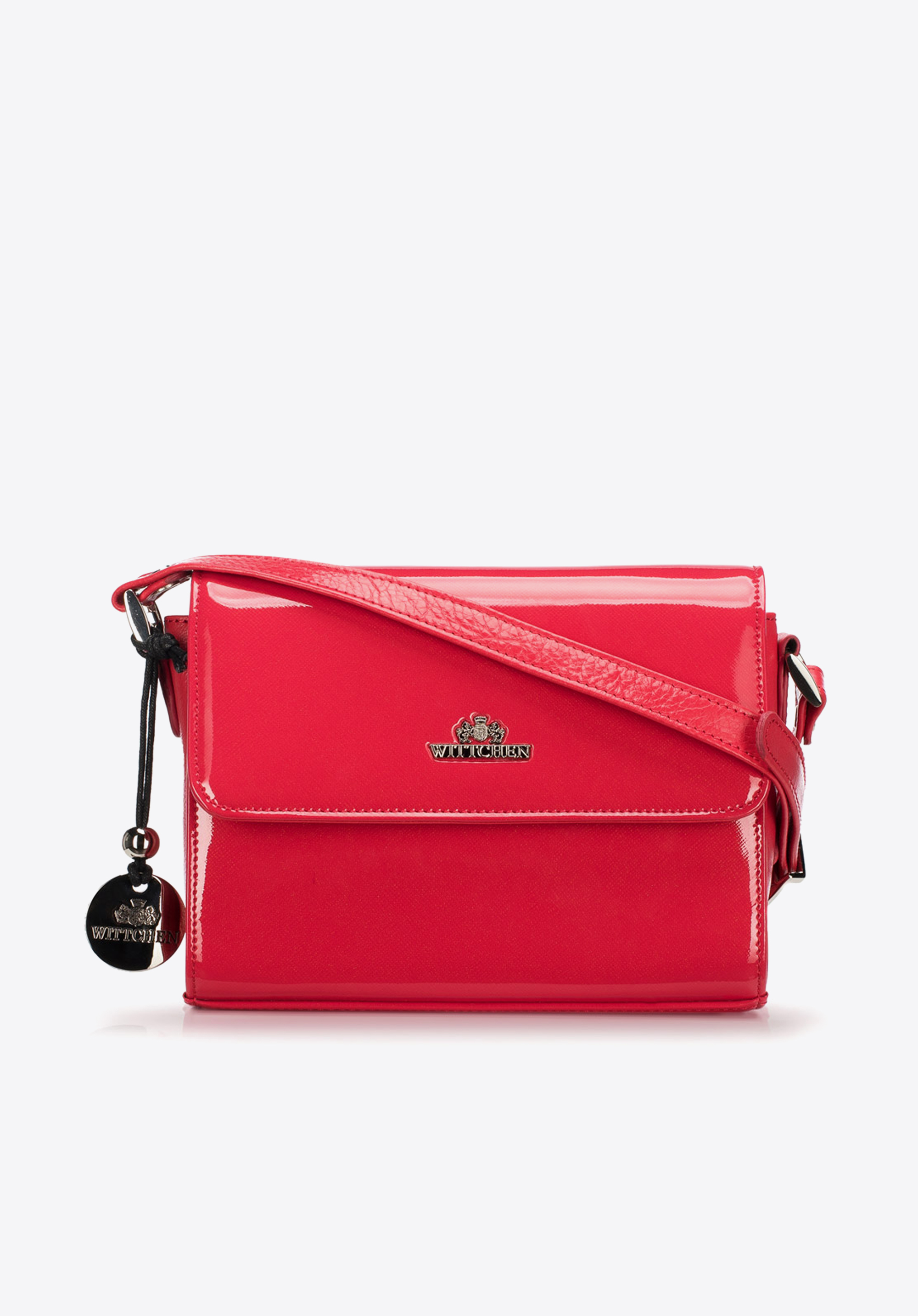 Gładka, sztywna faktura lakierowanej skóry została urozmaicona błyszczącymi detalami oraz logo WITTCHEN w kolorze srebra.
