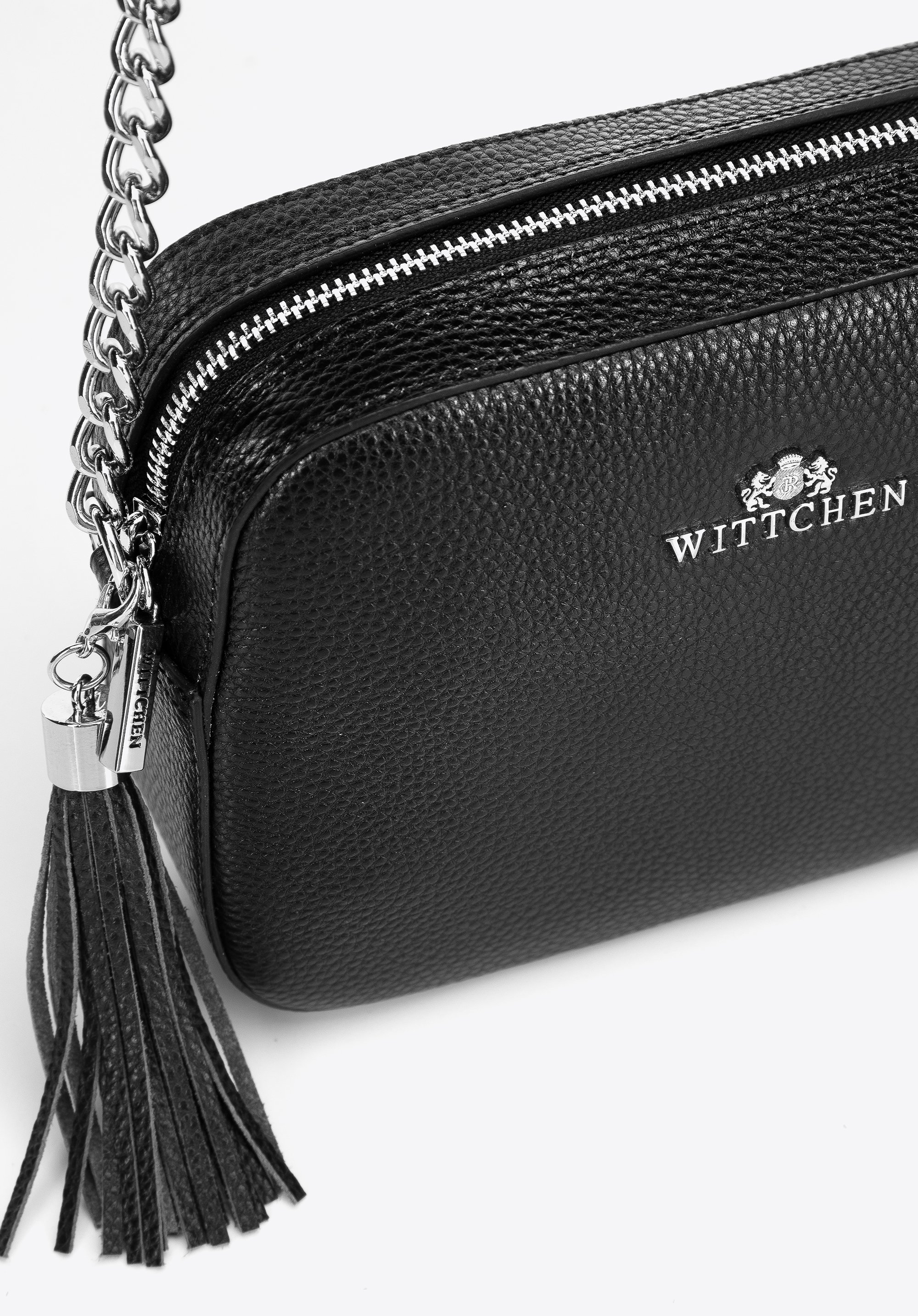- Komfort noszenia: Nieodczepiany pasek z łańcuszkiem zapewnia wygodne noszenie torebki na ramieniu lub na skos.