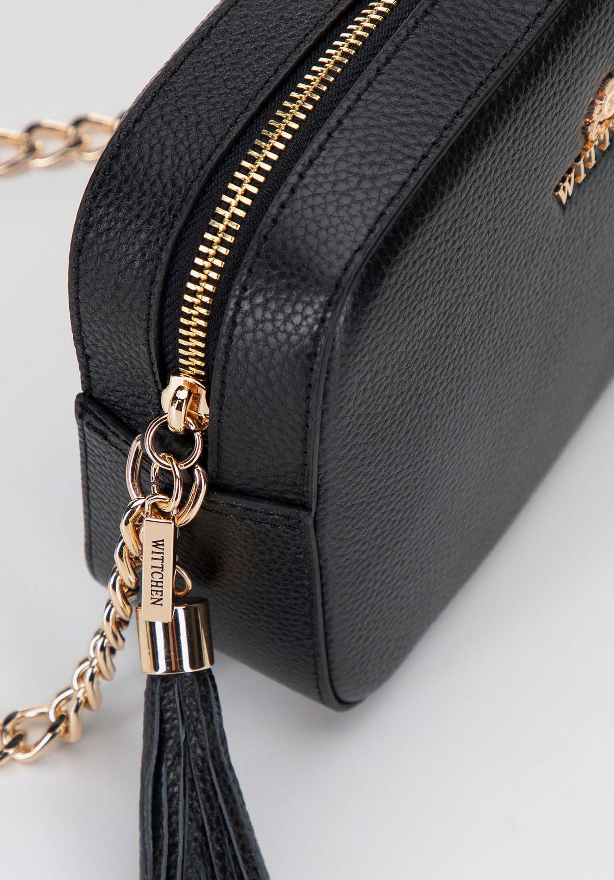 - Komfort noszenia: Nieodczepiany pasek z łańcuszkiem zapewnia wygodne noszenie torebki na ramieniu lub na skos.