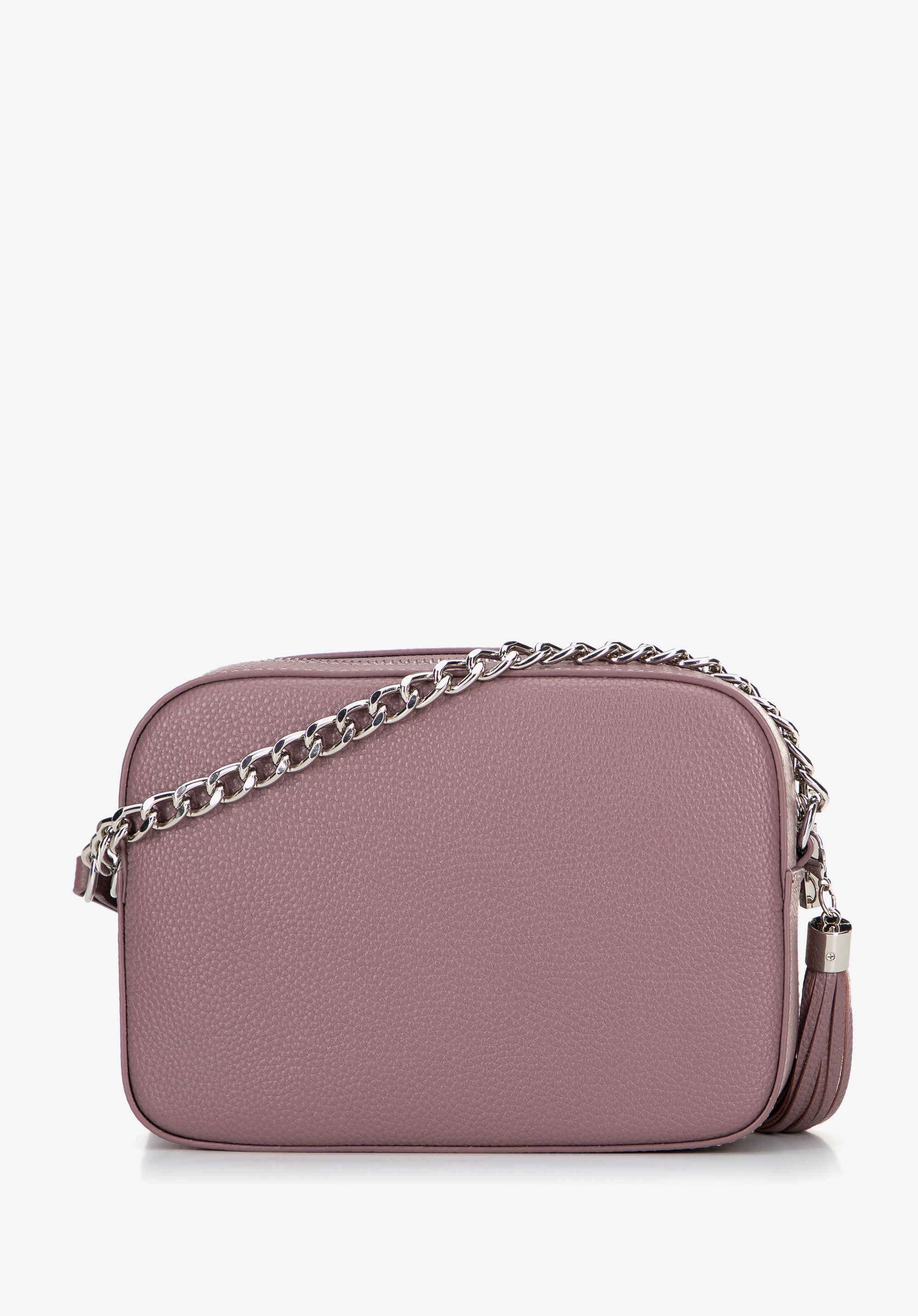 - Komfort noszenia: Nieodczepiany pasek z łańcuszkiem zapewnia wygodne noszenie torebki na ramieniu lub na skos.