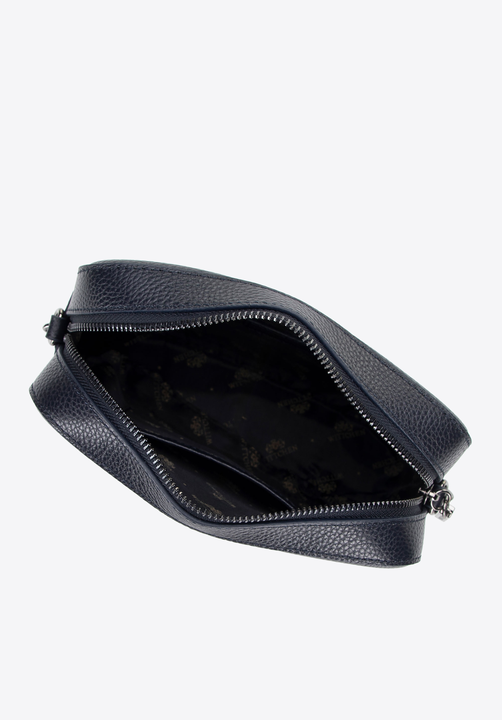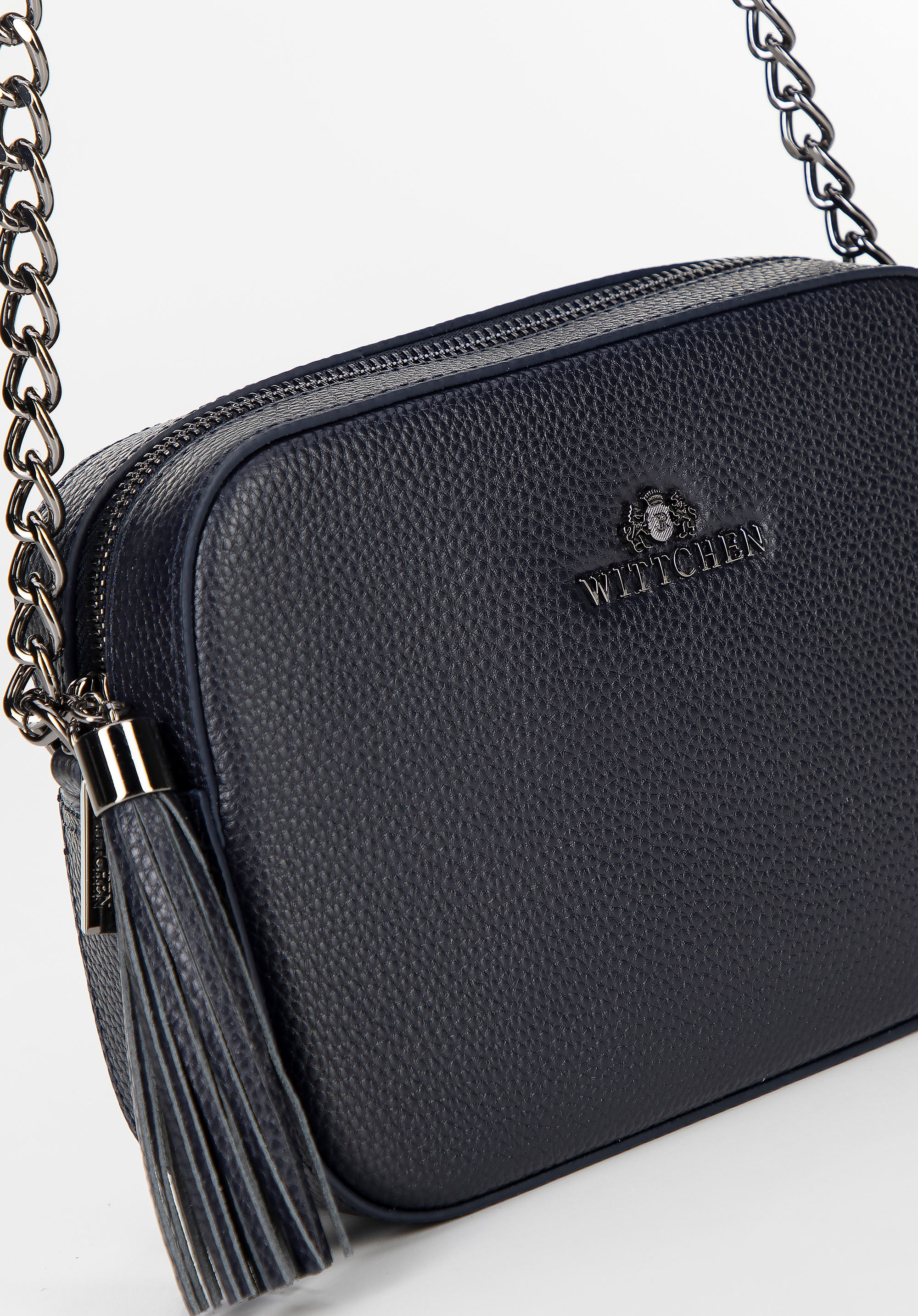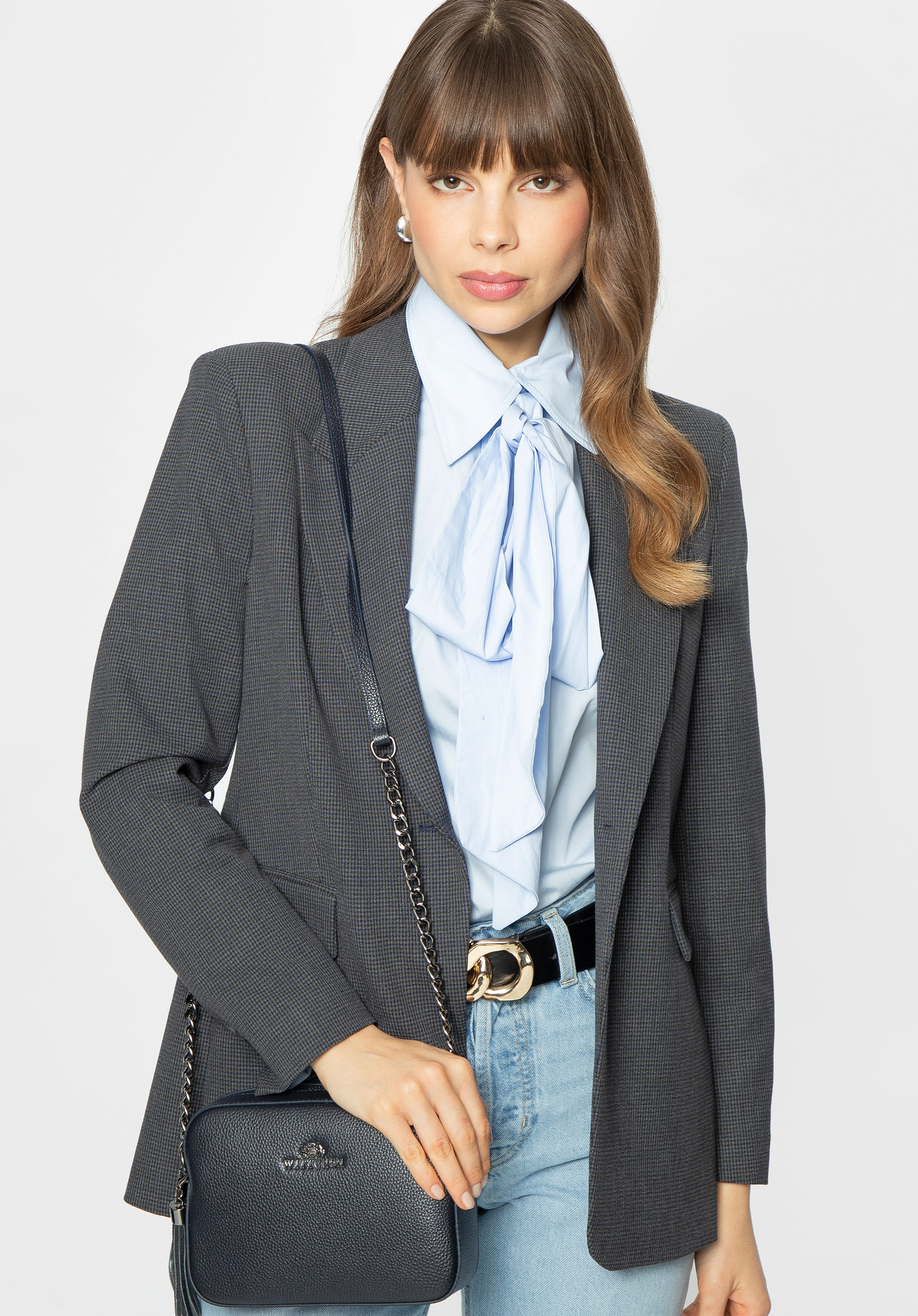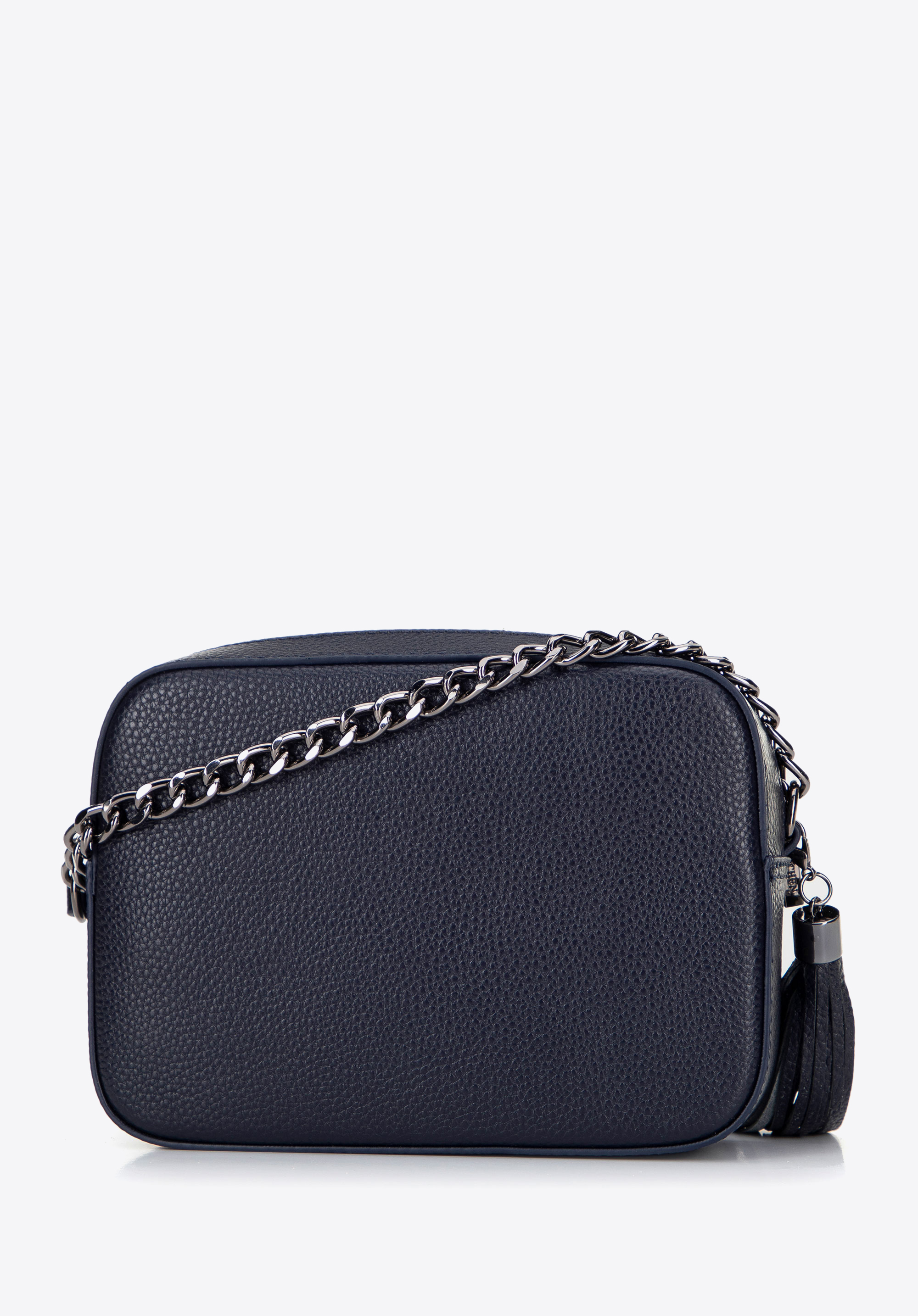 Damska listonoszka skórzana pudełkowa na łańcuszku granatowa