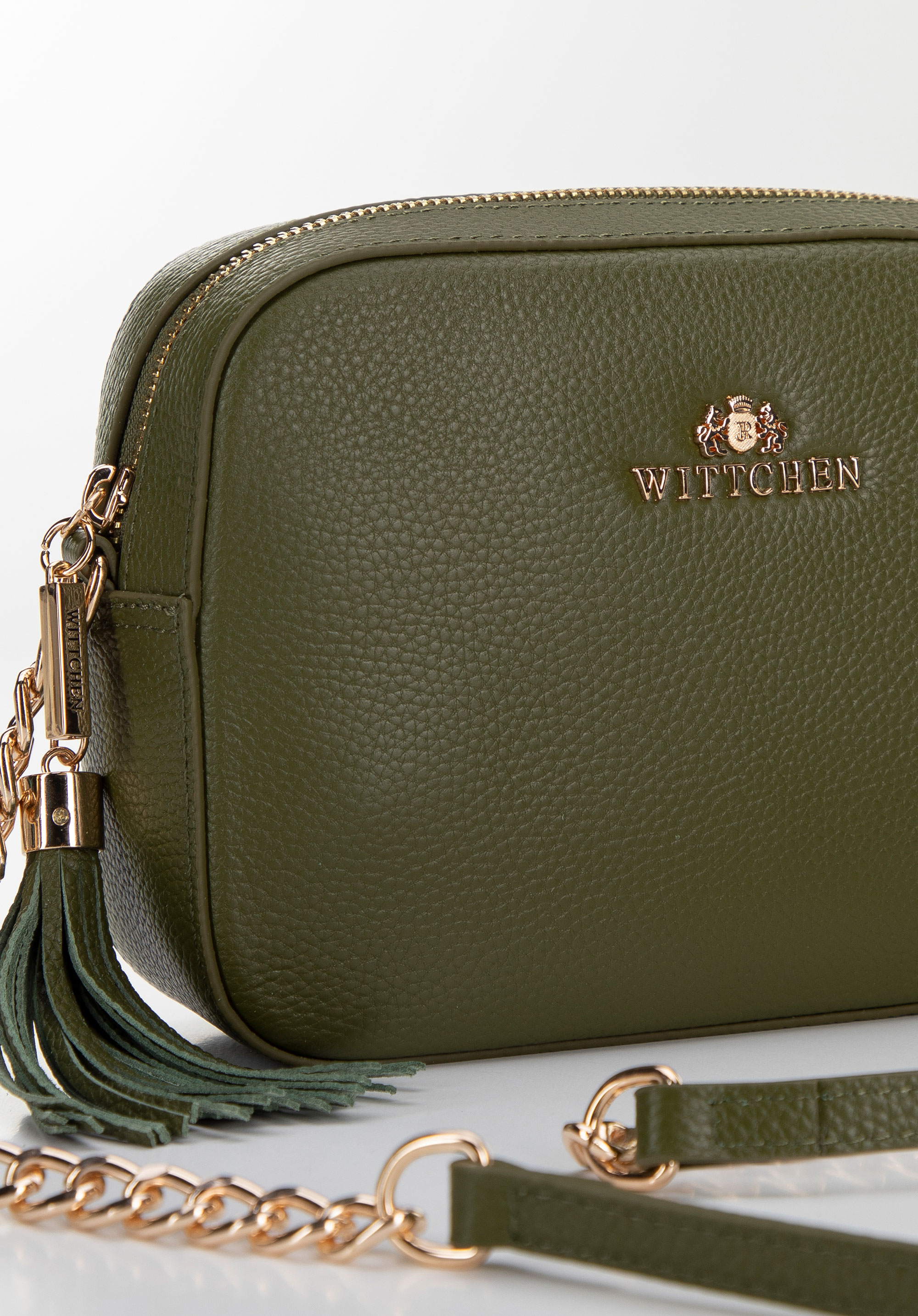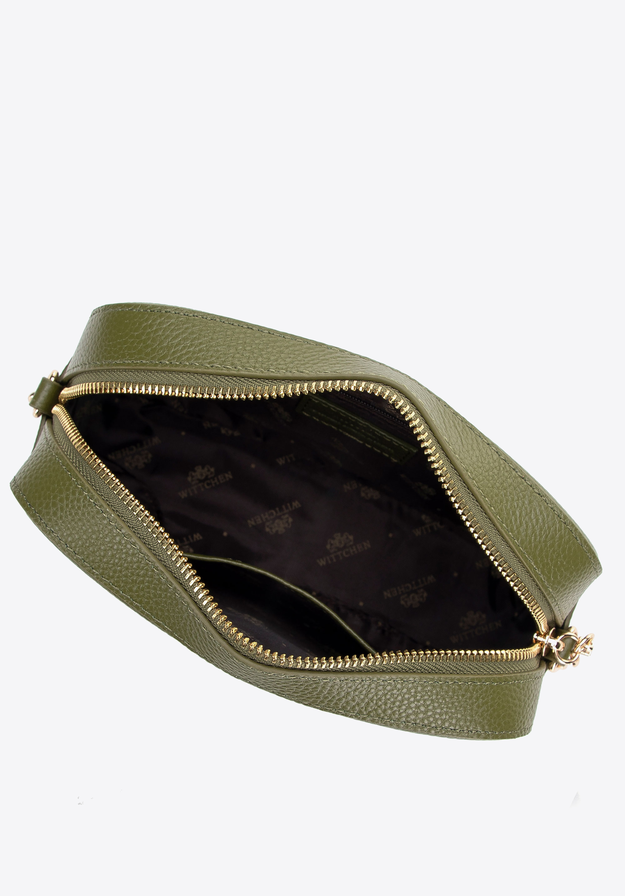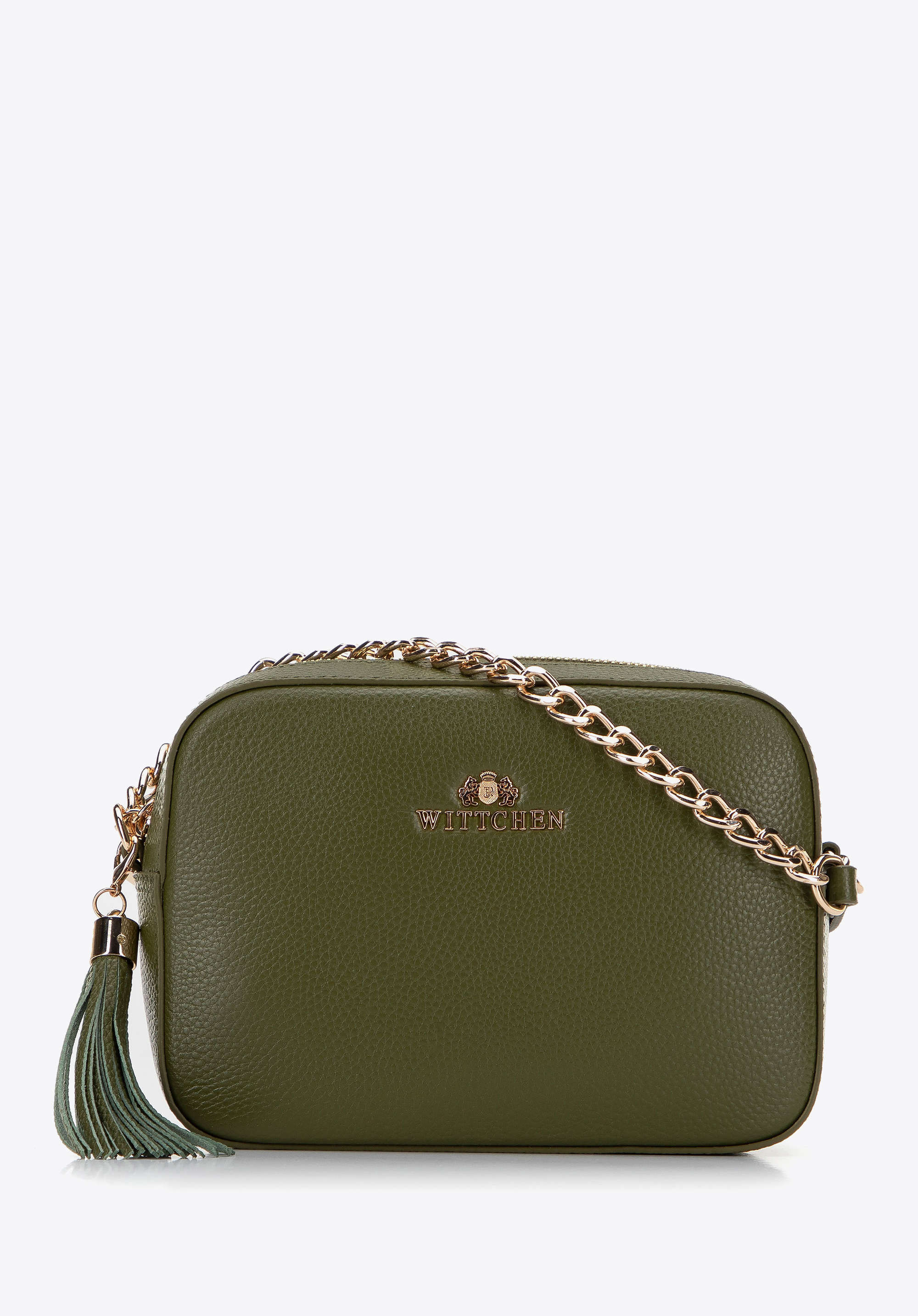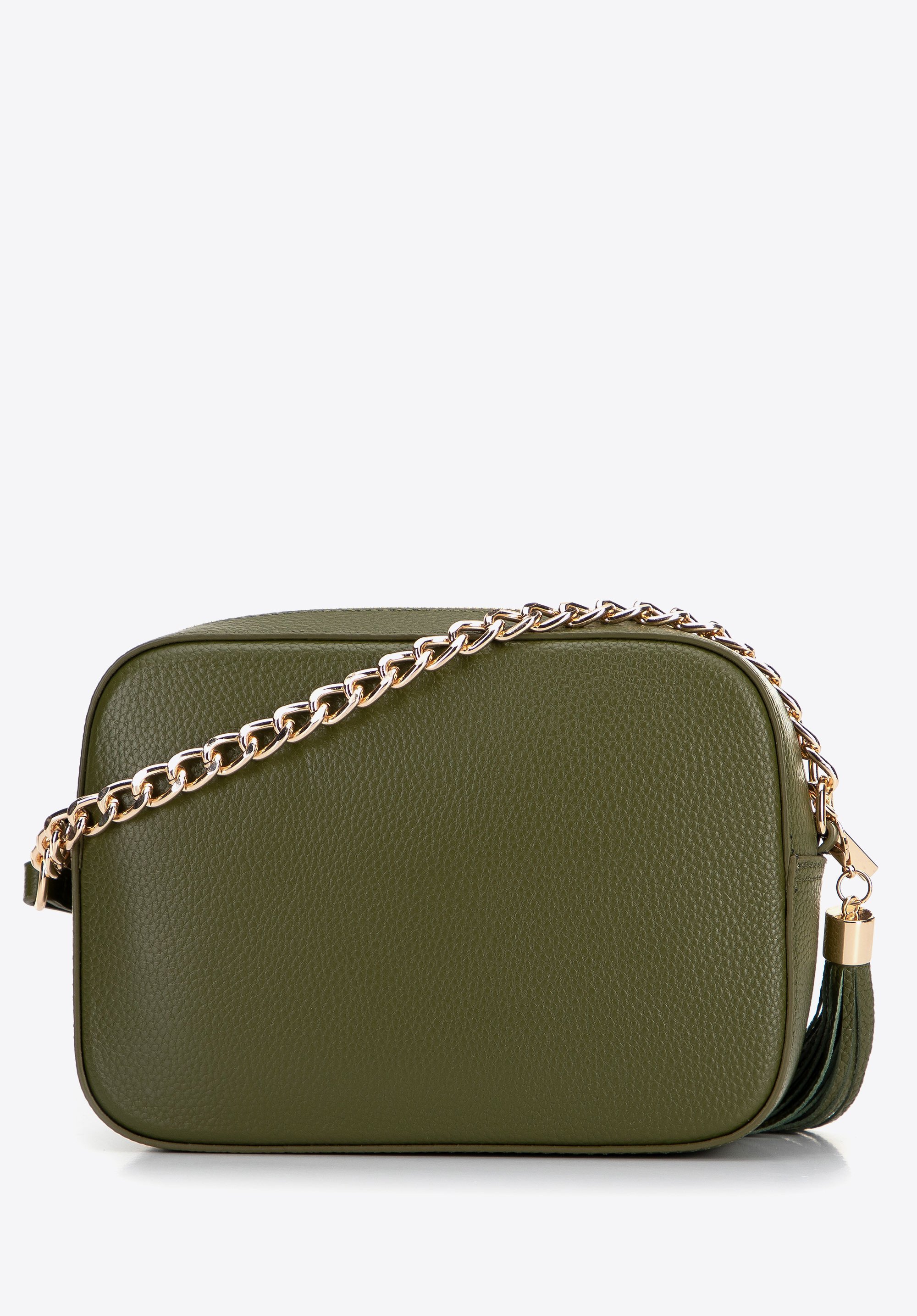 Damska listonoszka skórzana pudełkowa na łańcuszku zielona