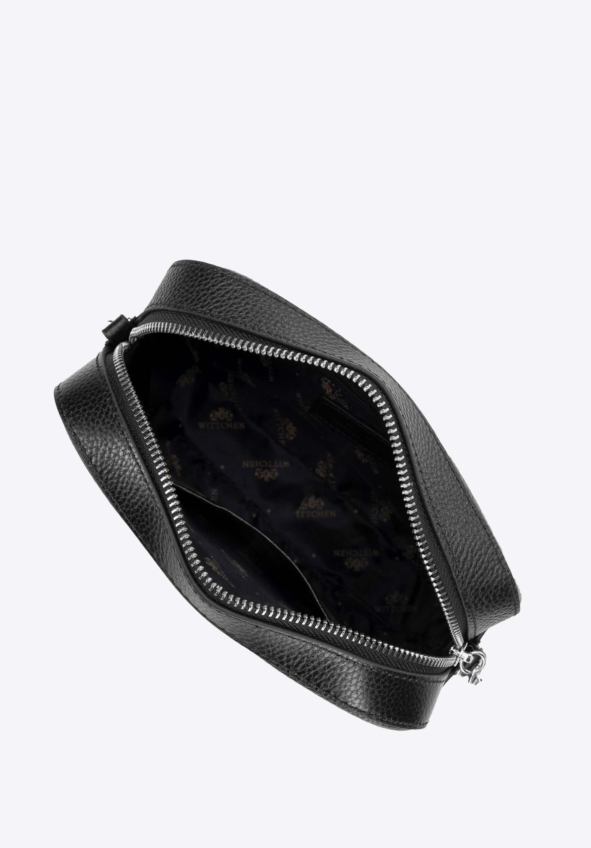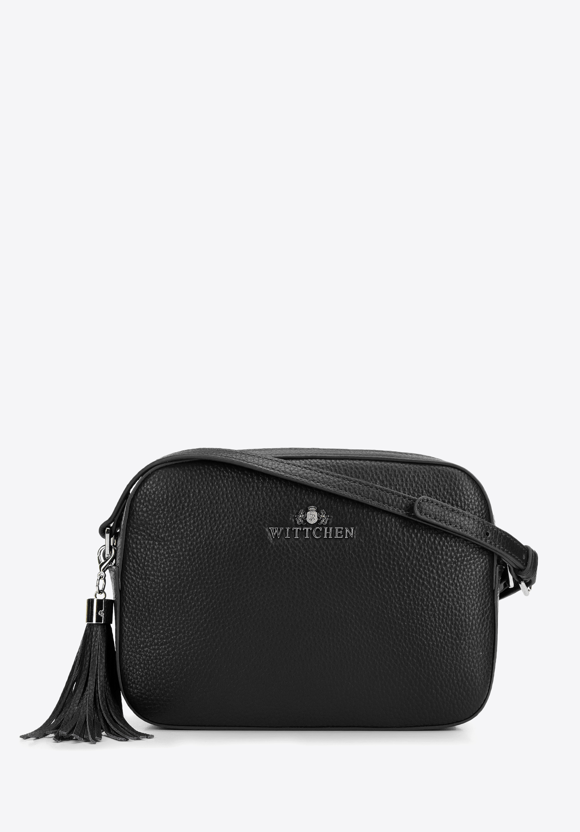 Damska listonoszka skórzana pudełkowa z chwostem czarno-srebrna