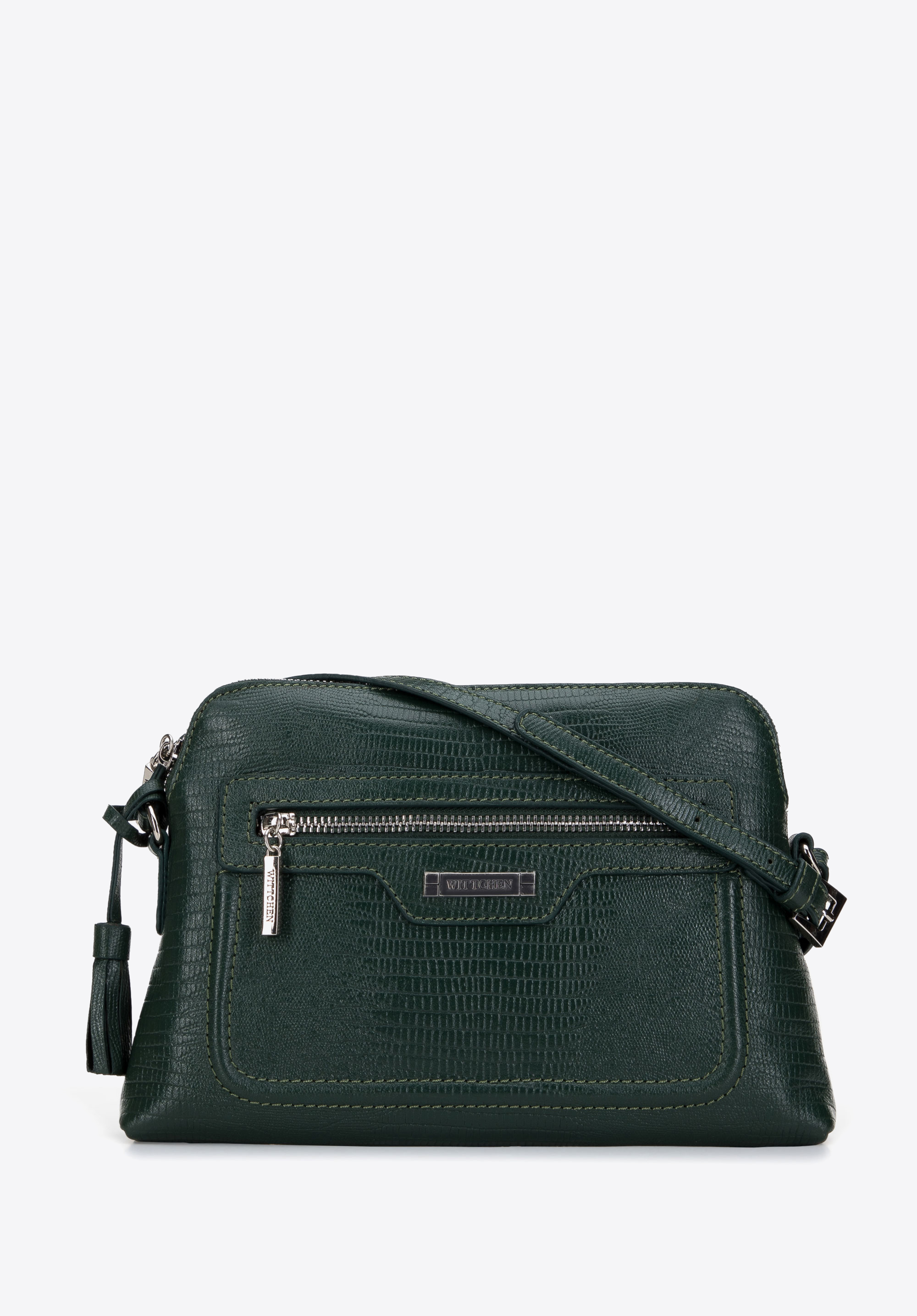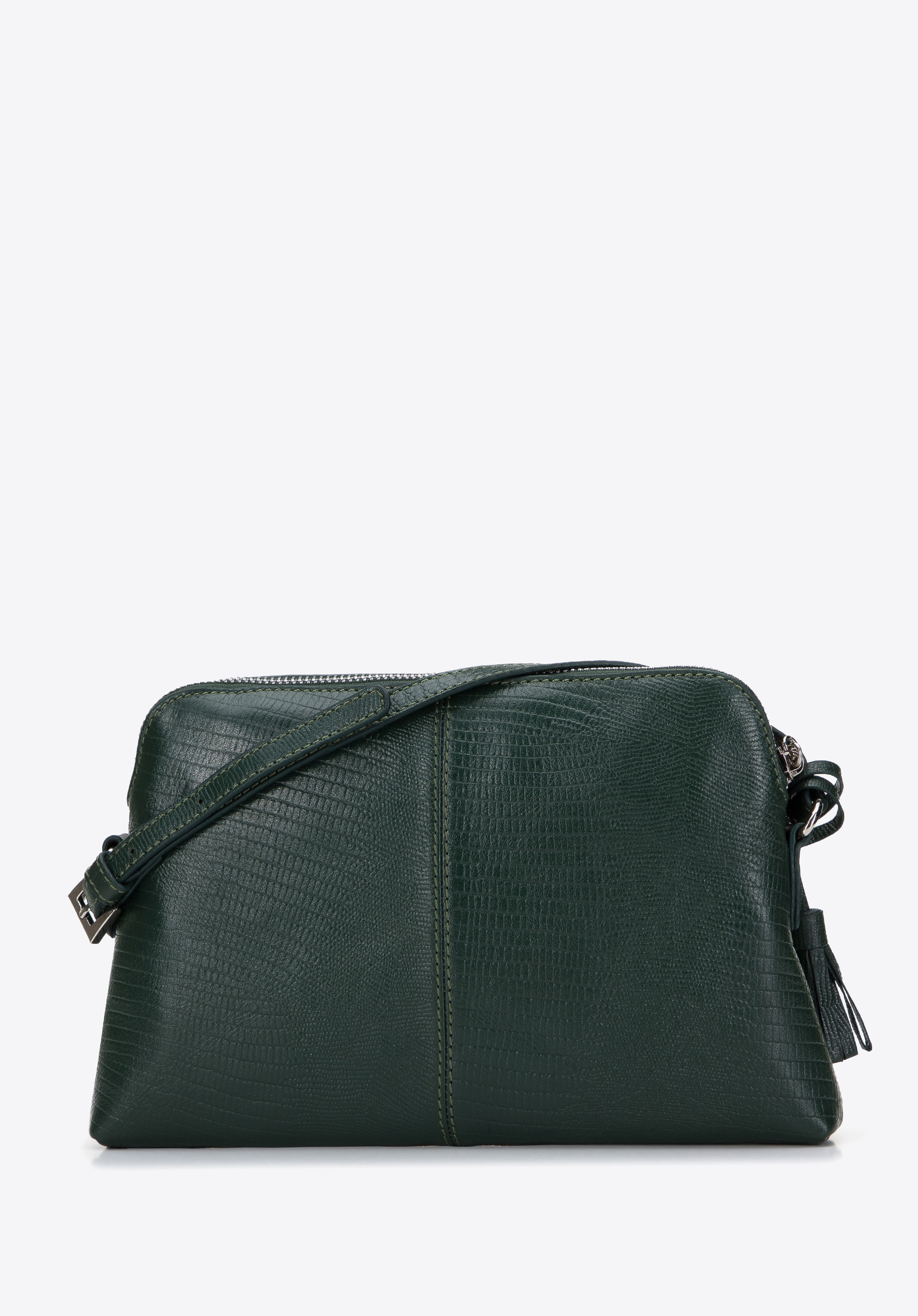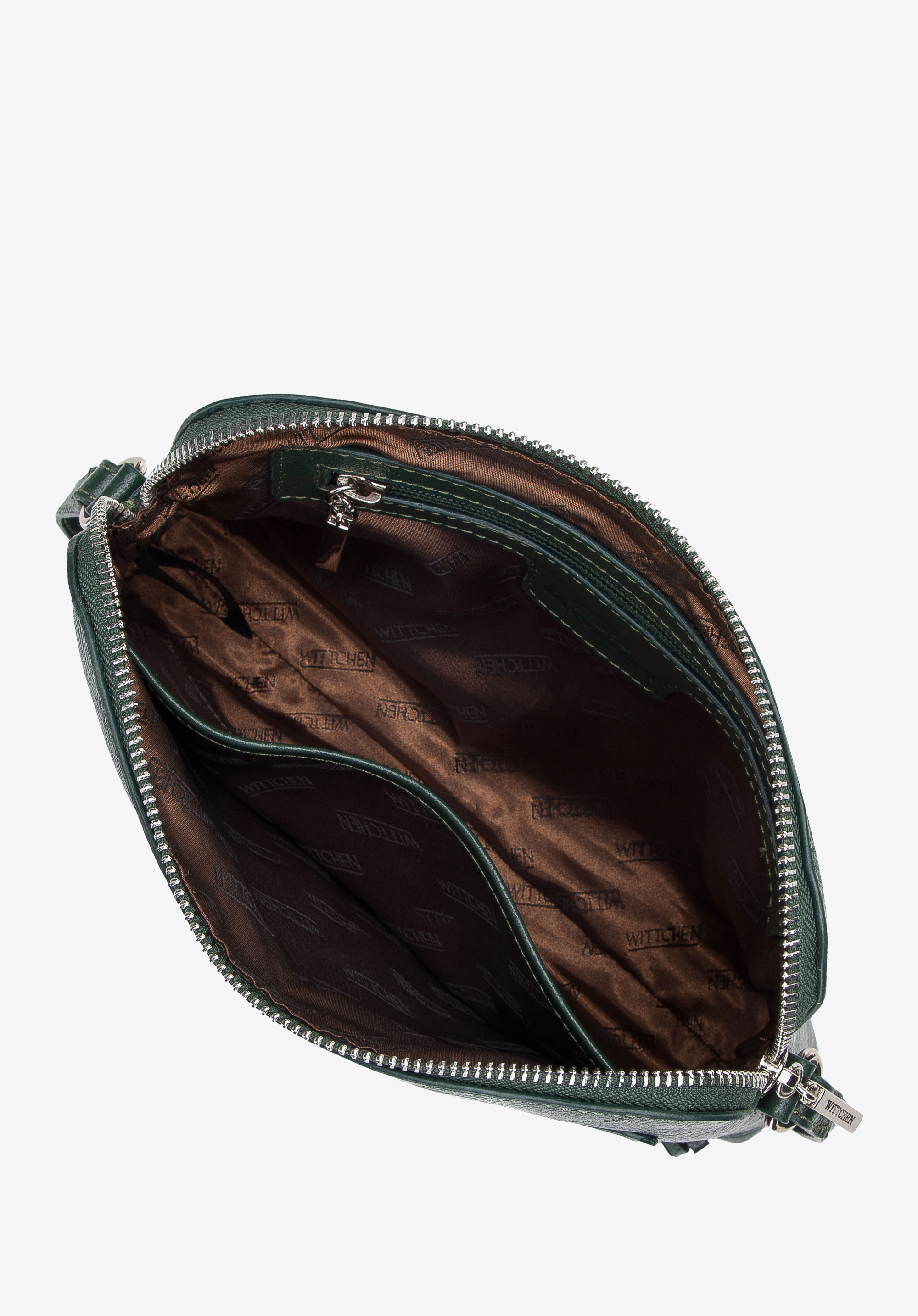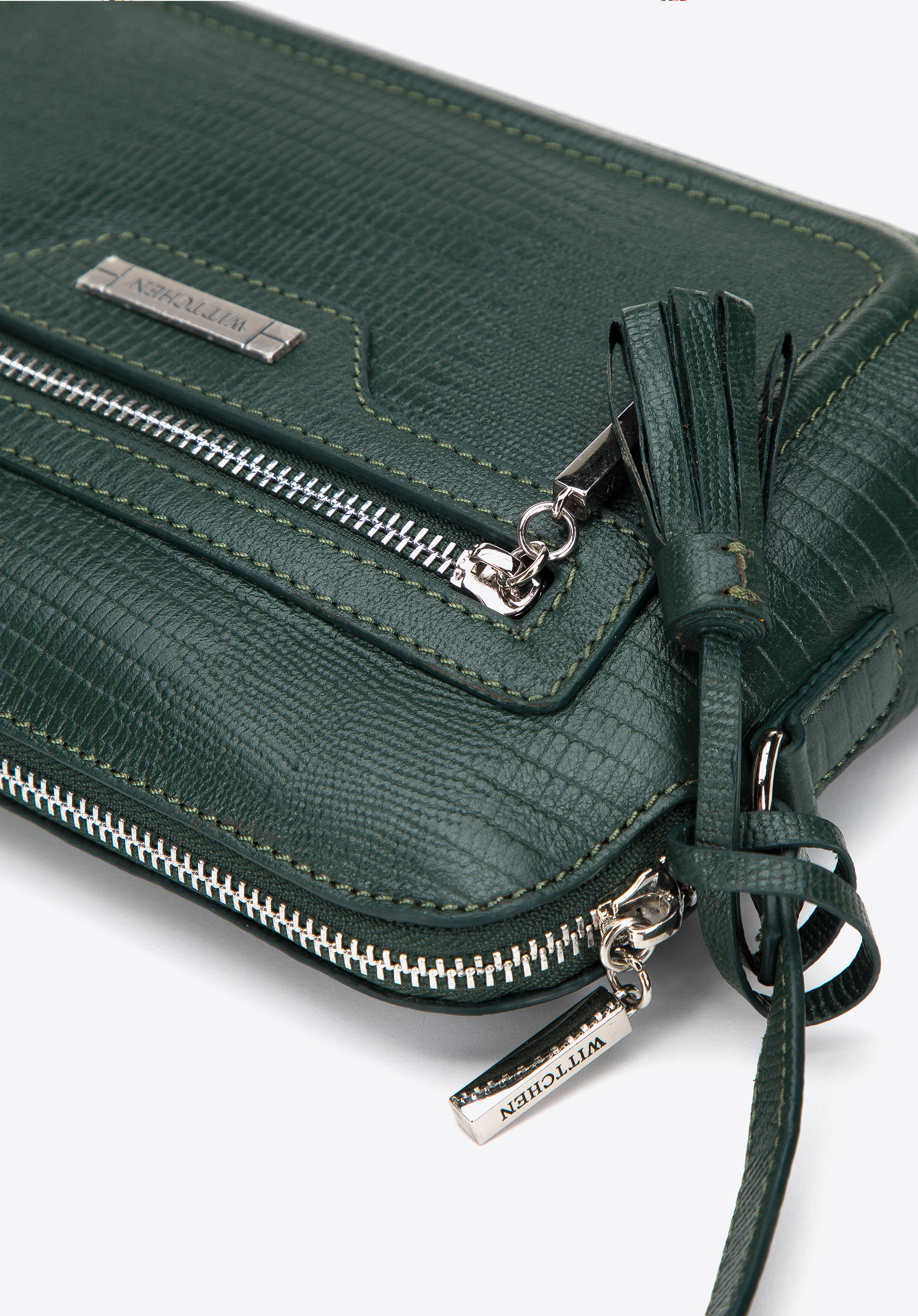 Damska listonoszka skórzana z chwostem ciemnozielona