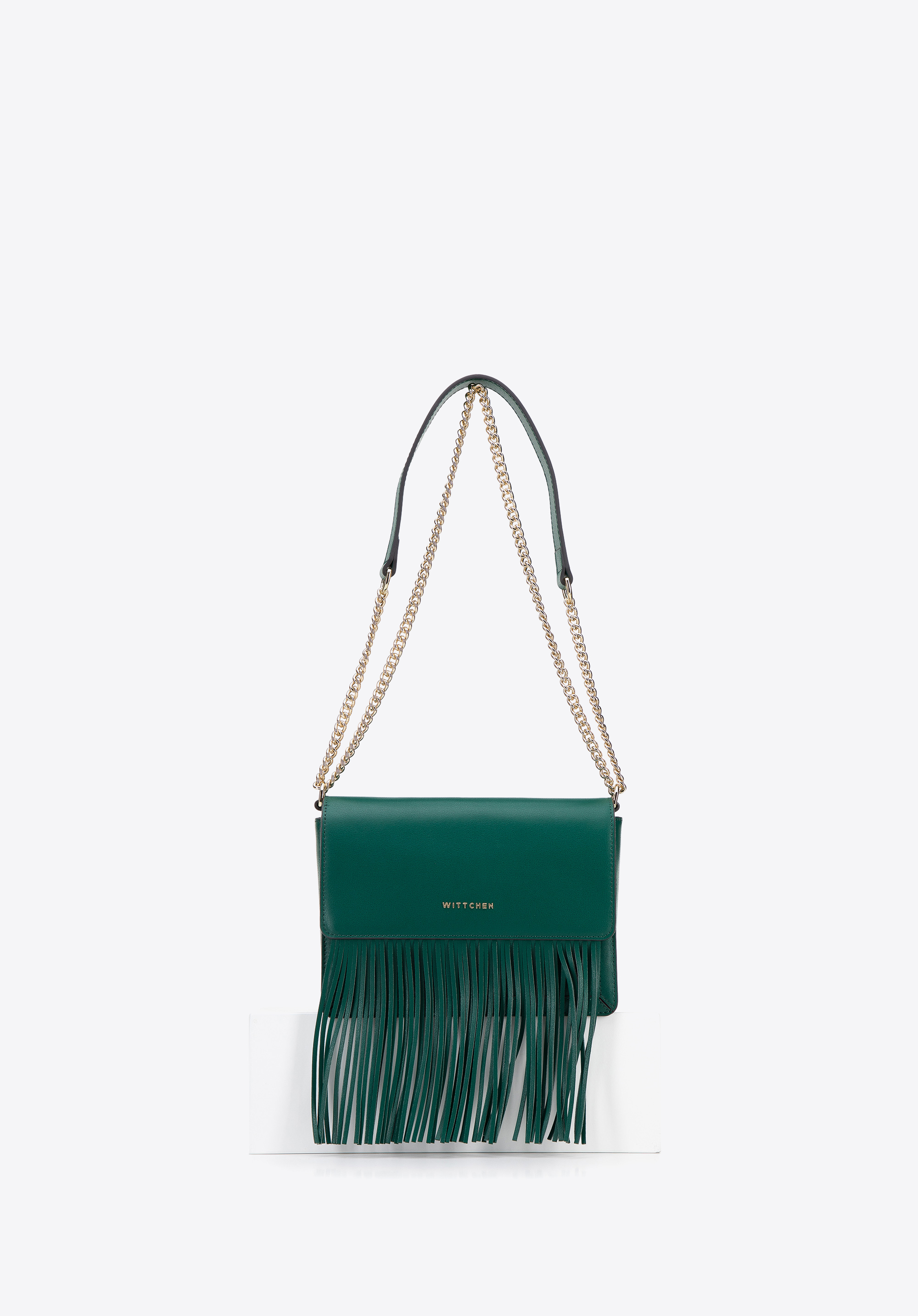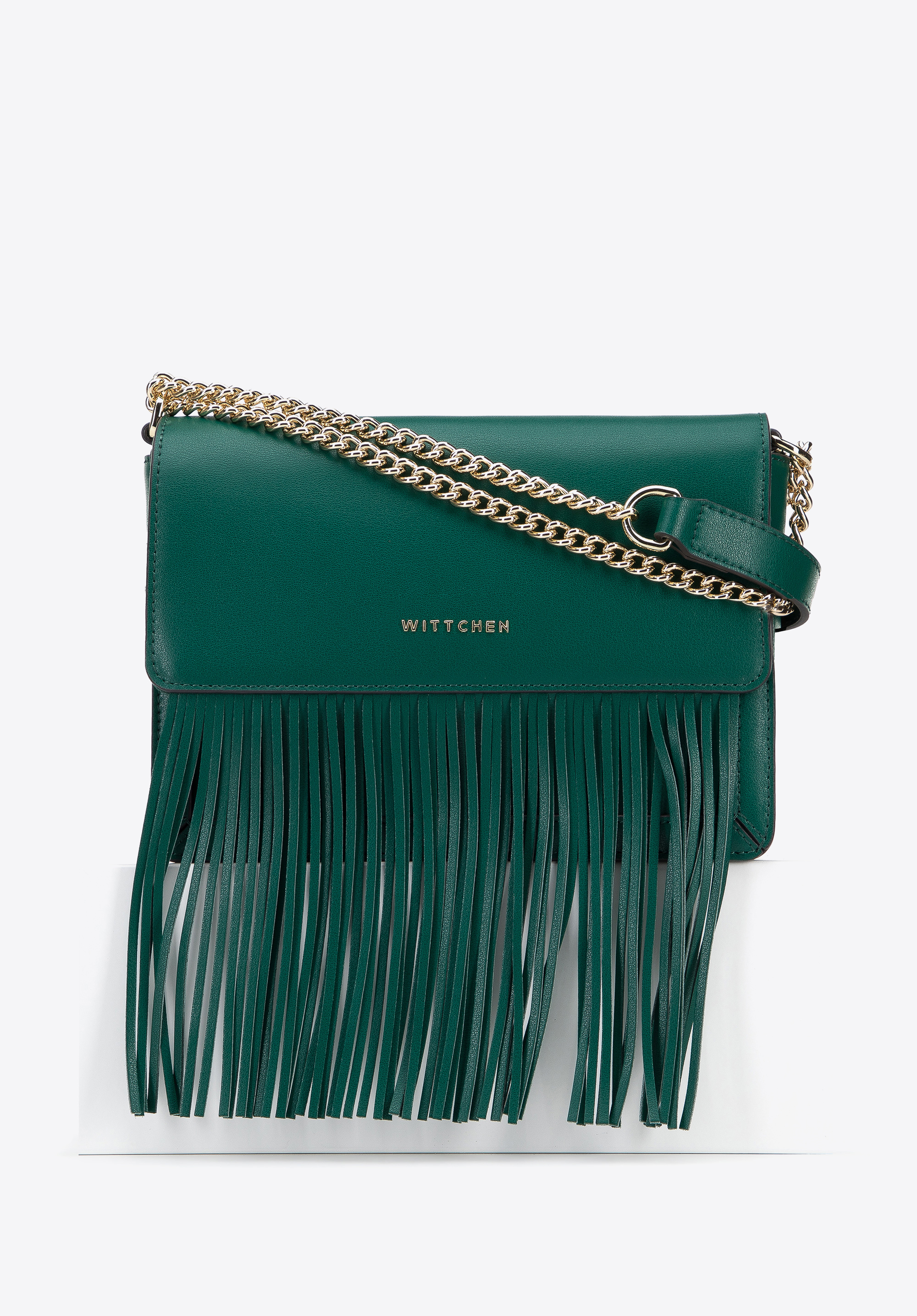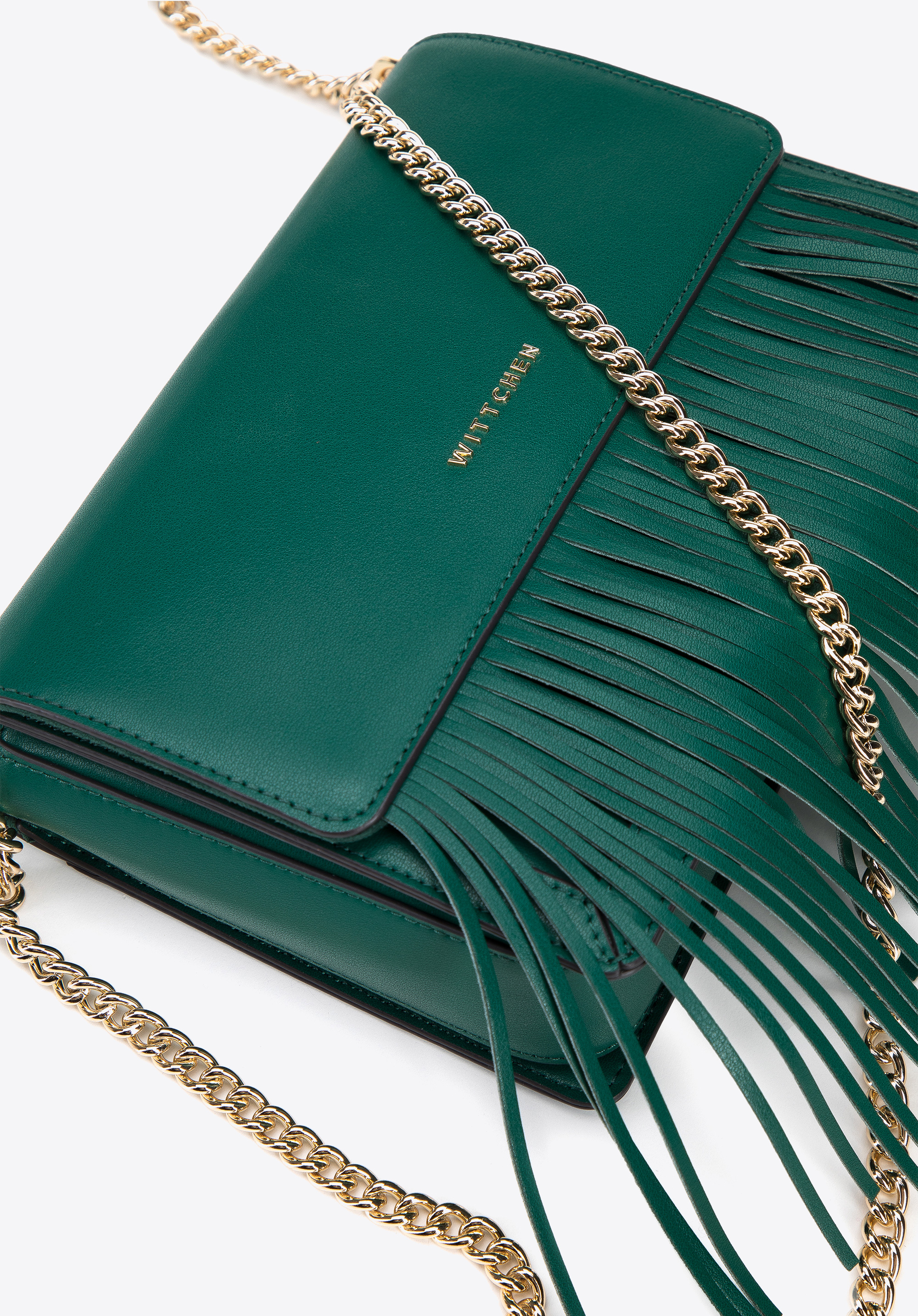 Damska listonoszka skórzana z frędzlami zielona