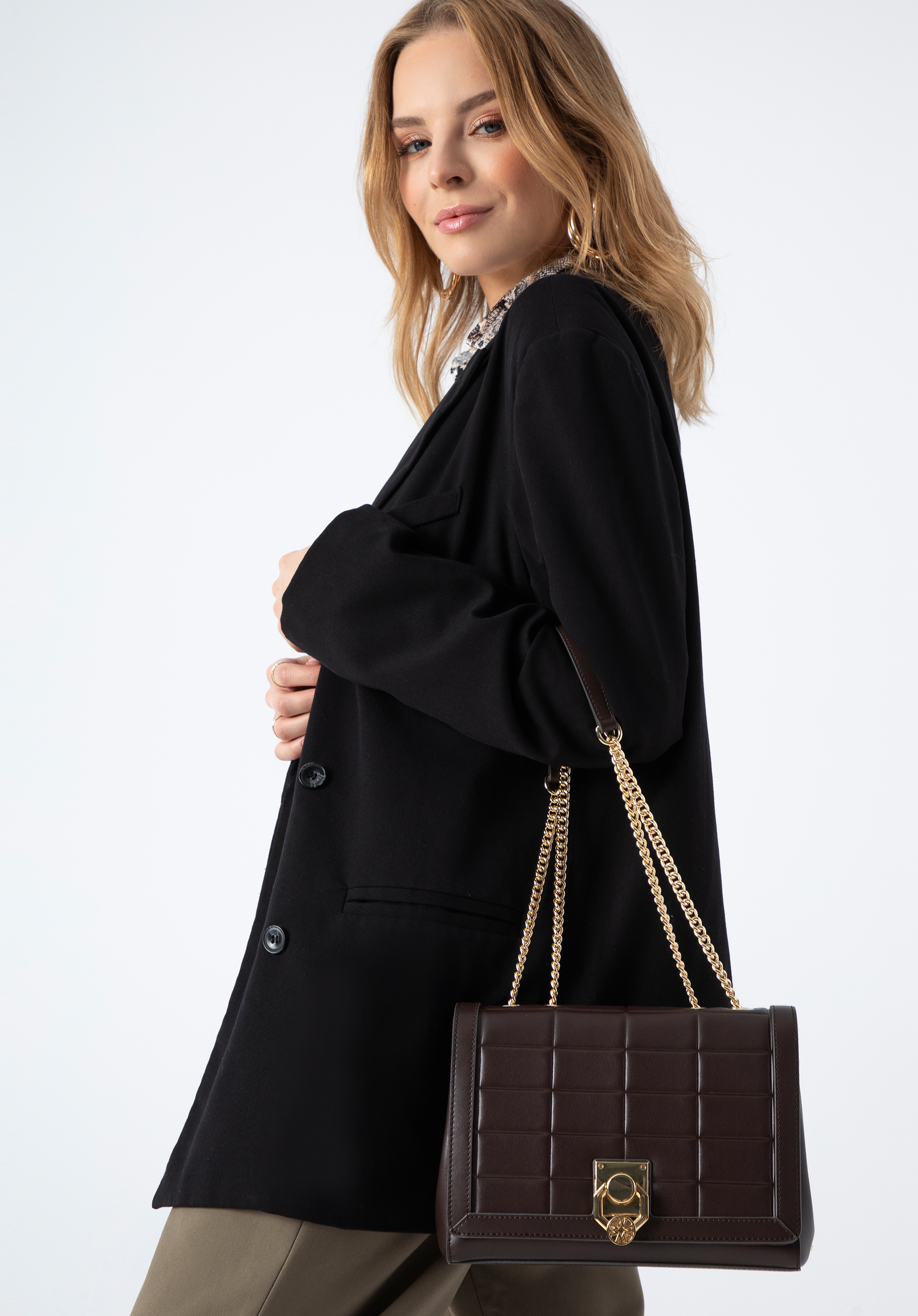 Pasek na łańcuszku możesz złożyć na pół lub wykorzystać jego pełną długość i przewiesić na skos jak