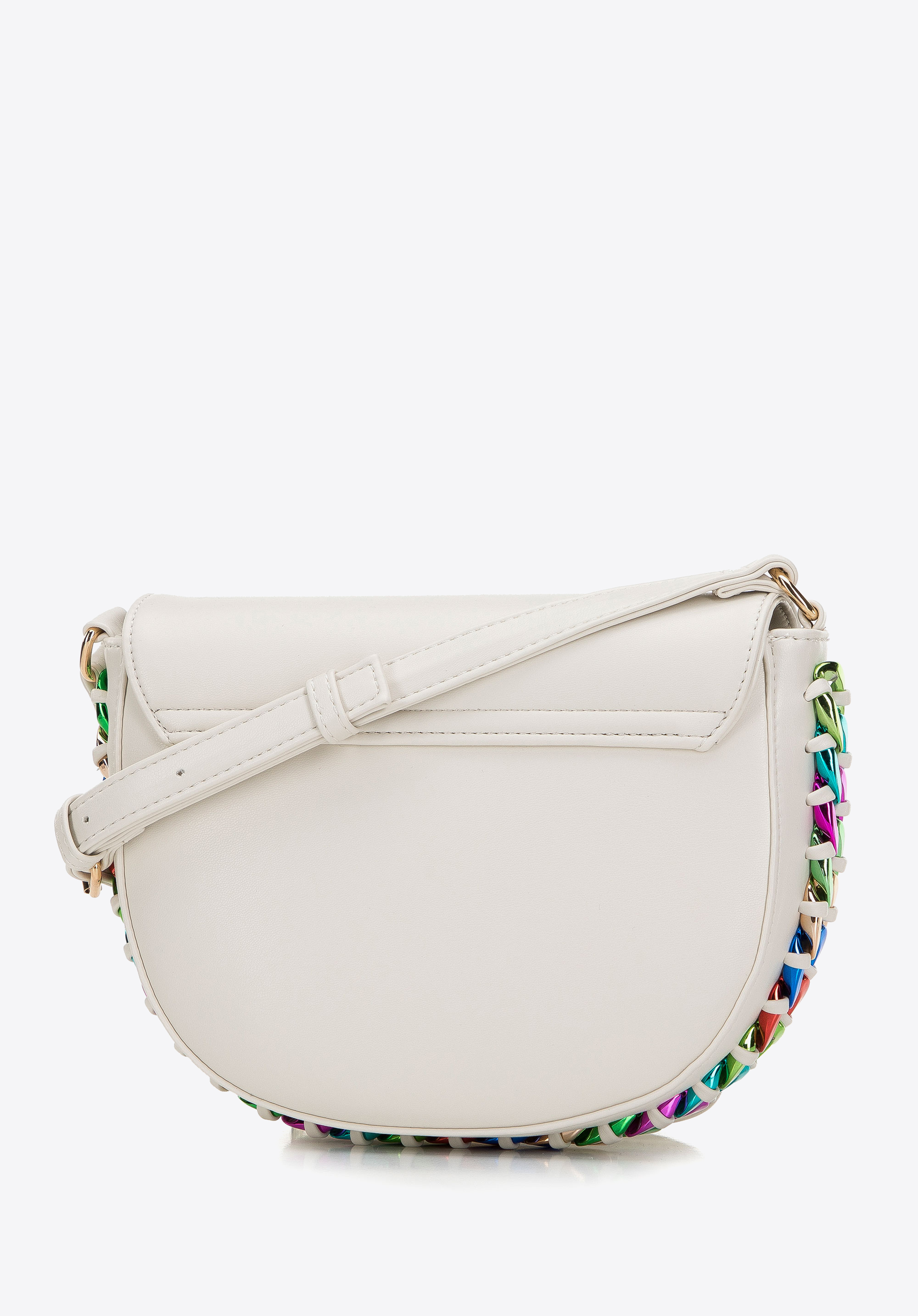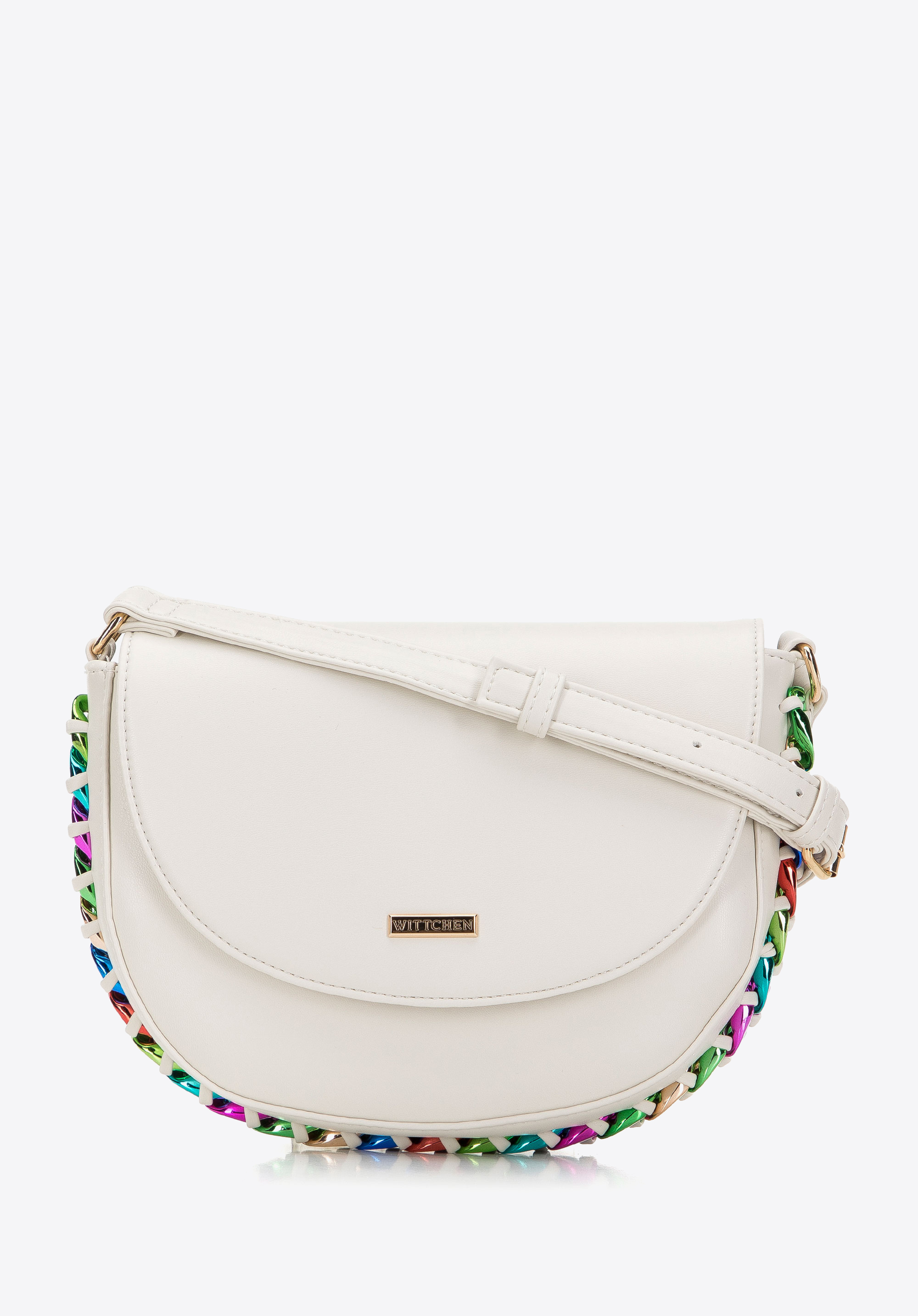 Damska listonoszka z ekoskóry obszyta łańcuszkiem to świetny wybór na co dzień, który przyciągnie niejedno spojrzenie.