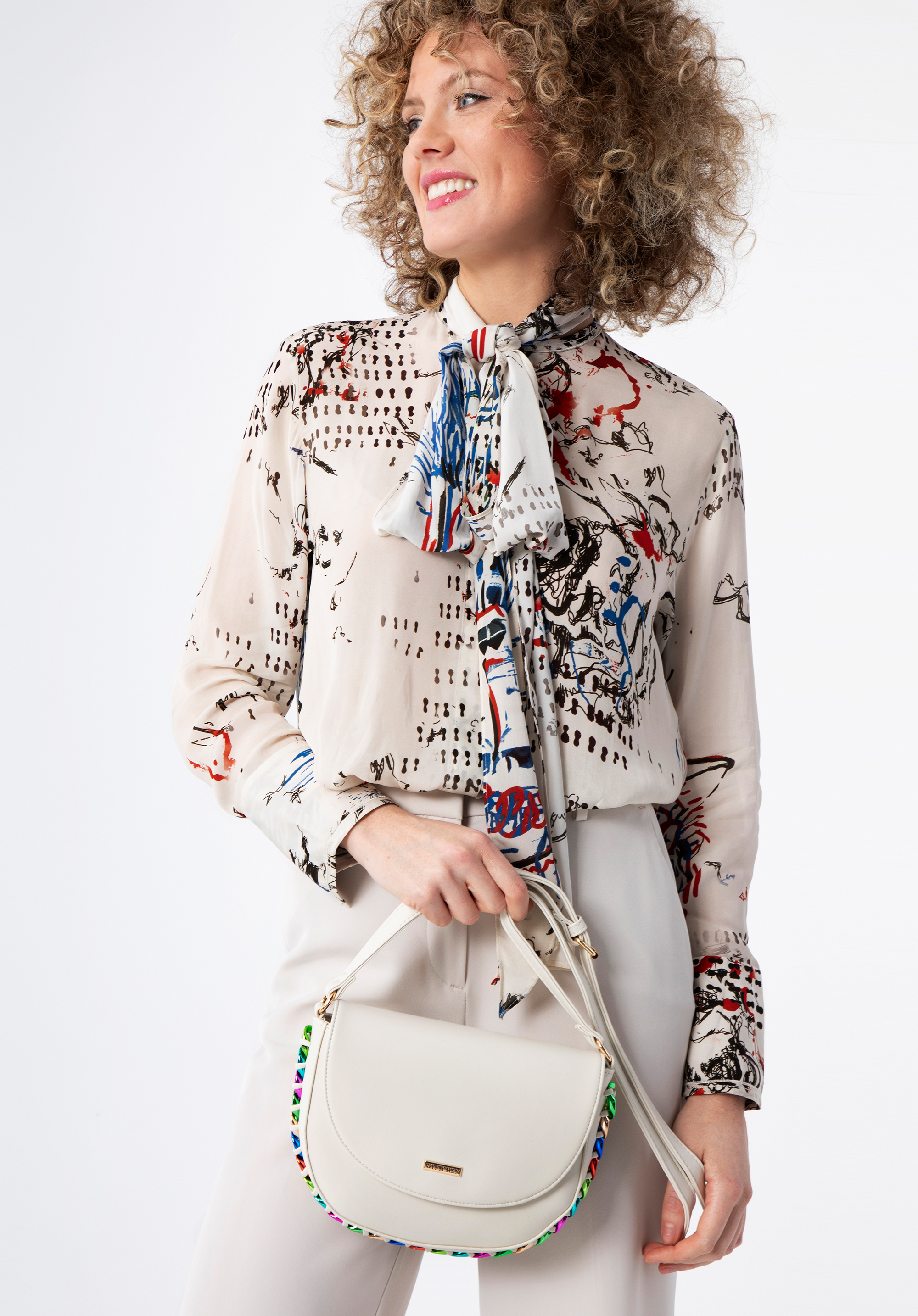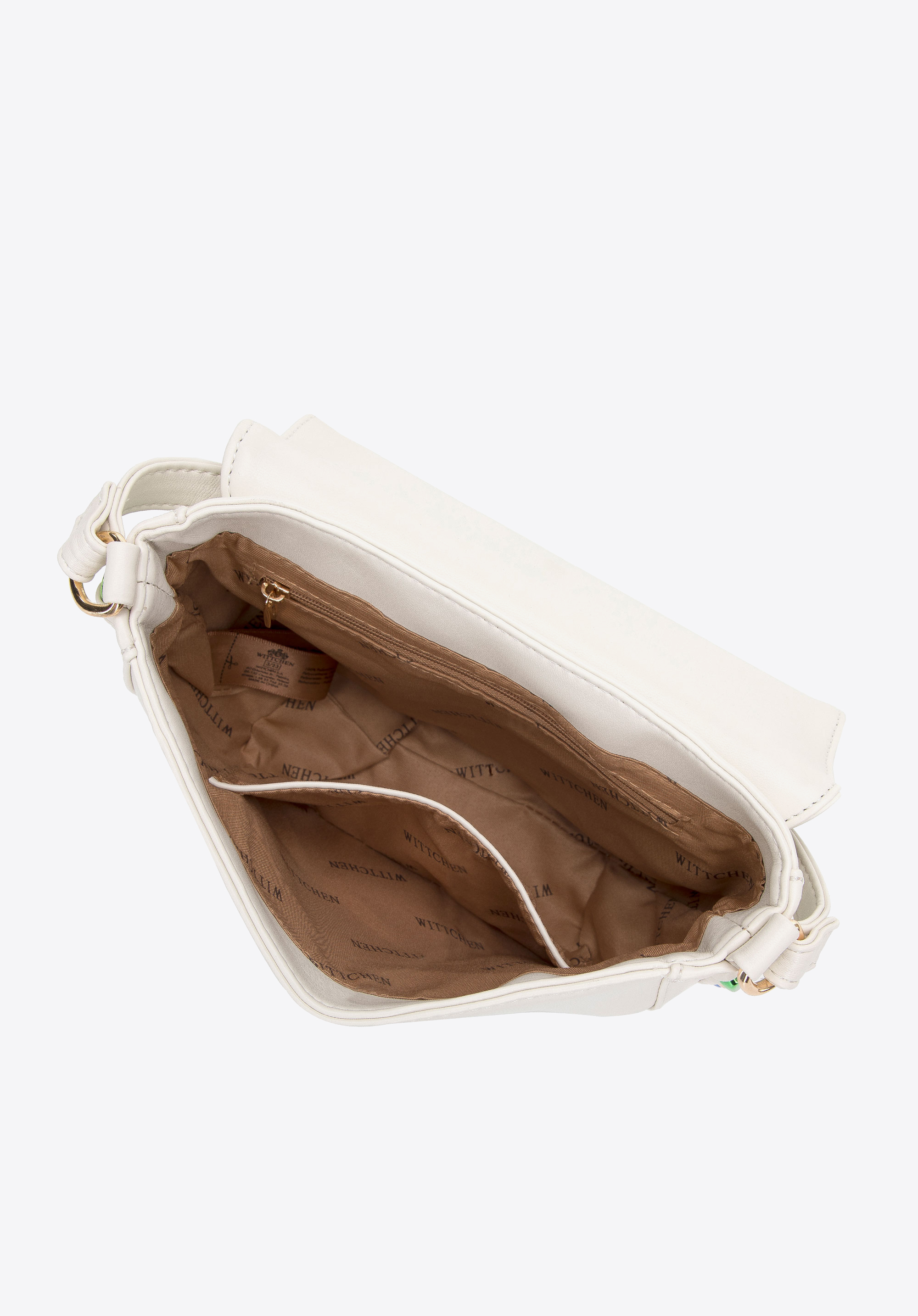 z przyjemnej w dotyku skóry ekologicznej o matowym wykończeniu. W środku zmieścisz portfel, telefon, mały kalendarz, chusteczki i kilka drobiazgów – w sam raz na spacer, do kina lub kawę z przyjaciółką. Noś ją do skórzanej ramoneski i botków lub dodaj charakteru ulubionej małej czarnej.