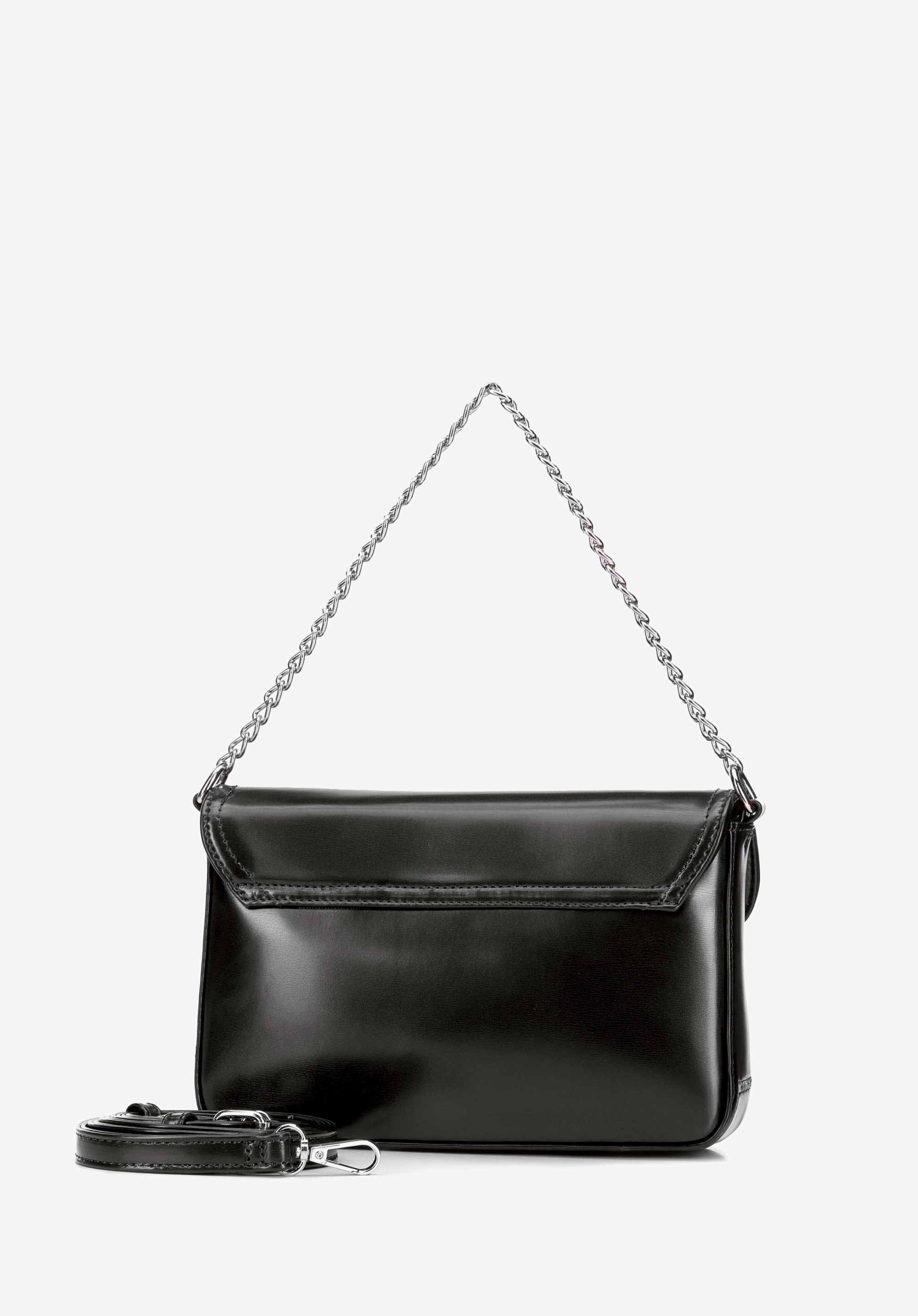 - Komfort noszenia: Odpinany i regulowany pasek pozwala dostosować sposób noszenia do Twojego stylu – na ramieniu lub przez ciało. Łańcuszek umożliwia wygodne noszenie torby w dłoni, dodając jednocześnie szyku.