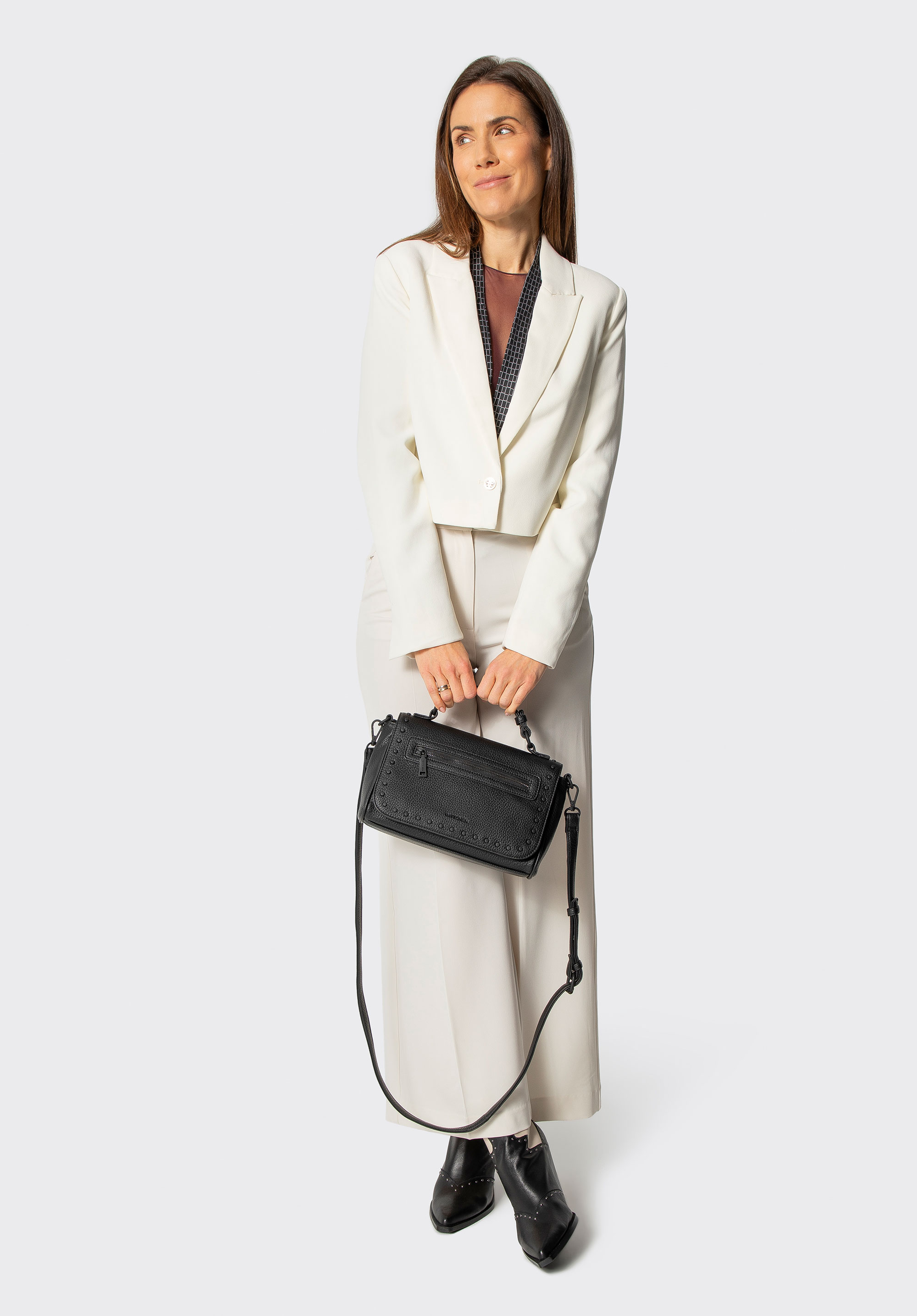 - Komfort noszenia: Krótka, wygodna rączka oraz regulowany, odpinany pasek umożliwiają noszenie torby na różne sposoby – w dłoni lub na ramieniu – dopasowując ją do okazji i indywidualnego stylu.