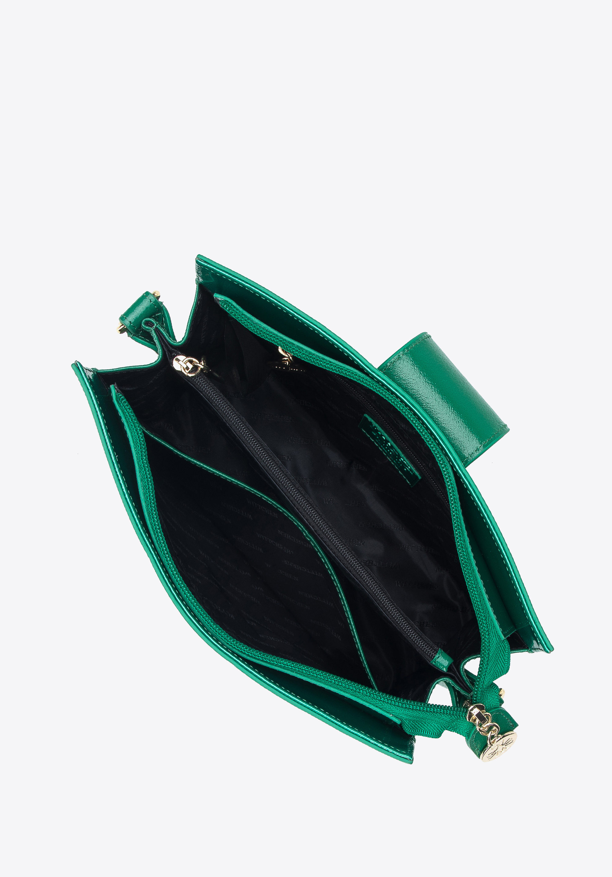 damska listonoszka z metalicznej skóry lakierowanej to świetny wybór dla miłośniczek modnych dodatków.