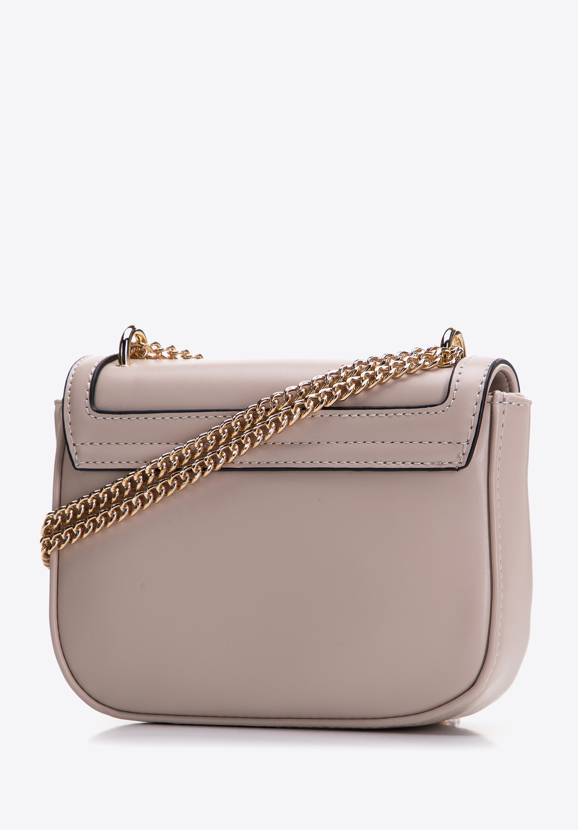 Damska listonoszka z obszytą klapą na łańcuszku mała będzie idealna na uroczystości, teatr i wieczorne wyjścia, gdy potrzebujesz niewielkiego dodatku o dopracowanym charakterze. Geometryczna klapa, przekręcana klamra i łańcuszek do noszenia na różne sposoby nadają stylizacji biżuteryjny akcent, a uporządkowane wnętrze mieści najważniejsze drobiazgi.