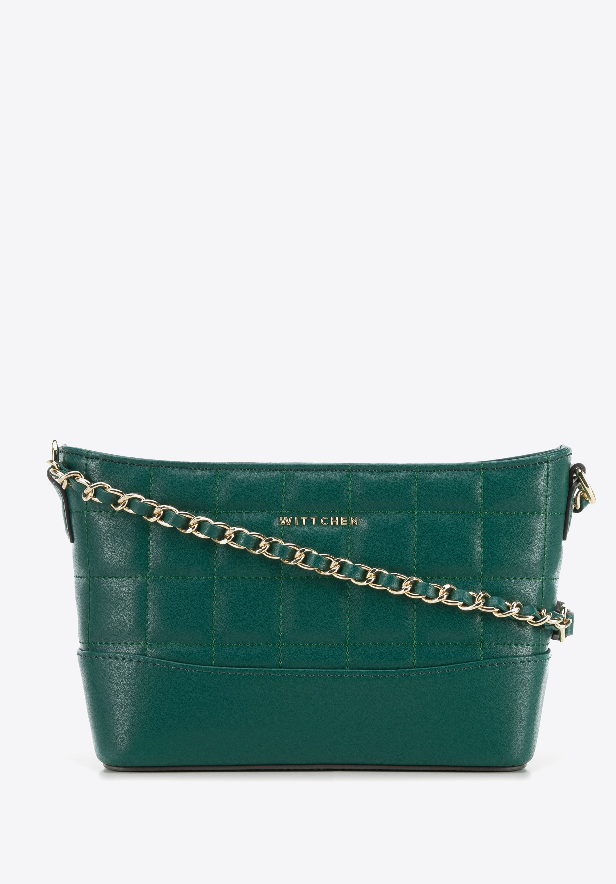 z wysokiej jakości skóry naturalnej: pikowanej u góry i gładkiej na dole. Zdobi ją nowe logo WITTCHEN złożone z samych liter i błyszczący łańcuszek. Torebka ma