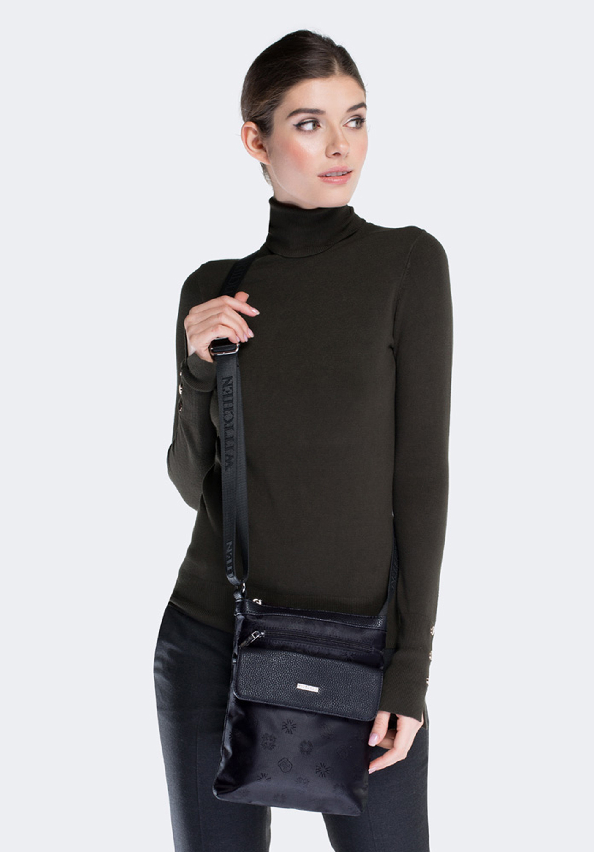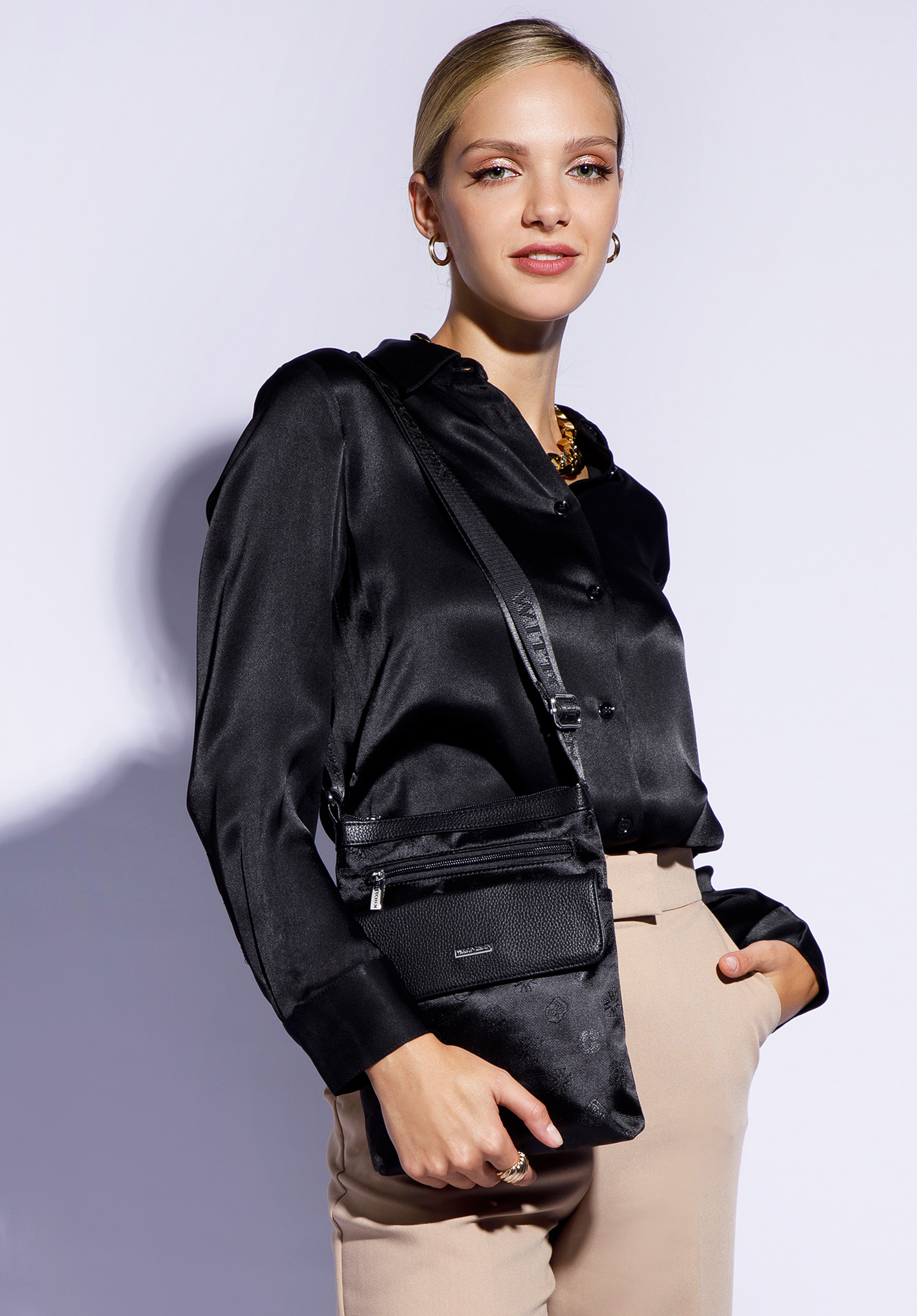 skórą ekologiczną o groszkowanej fakturze. Te materiały czynią ją idealną torbą na co dzień czy na weekend - odporną na przetarcia czy zarysowania, a także łatwą do wyczyszczenia. Tkanina o lekkim połysku jest ozdobiona gustownym wzorem znanym z