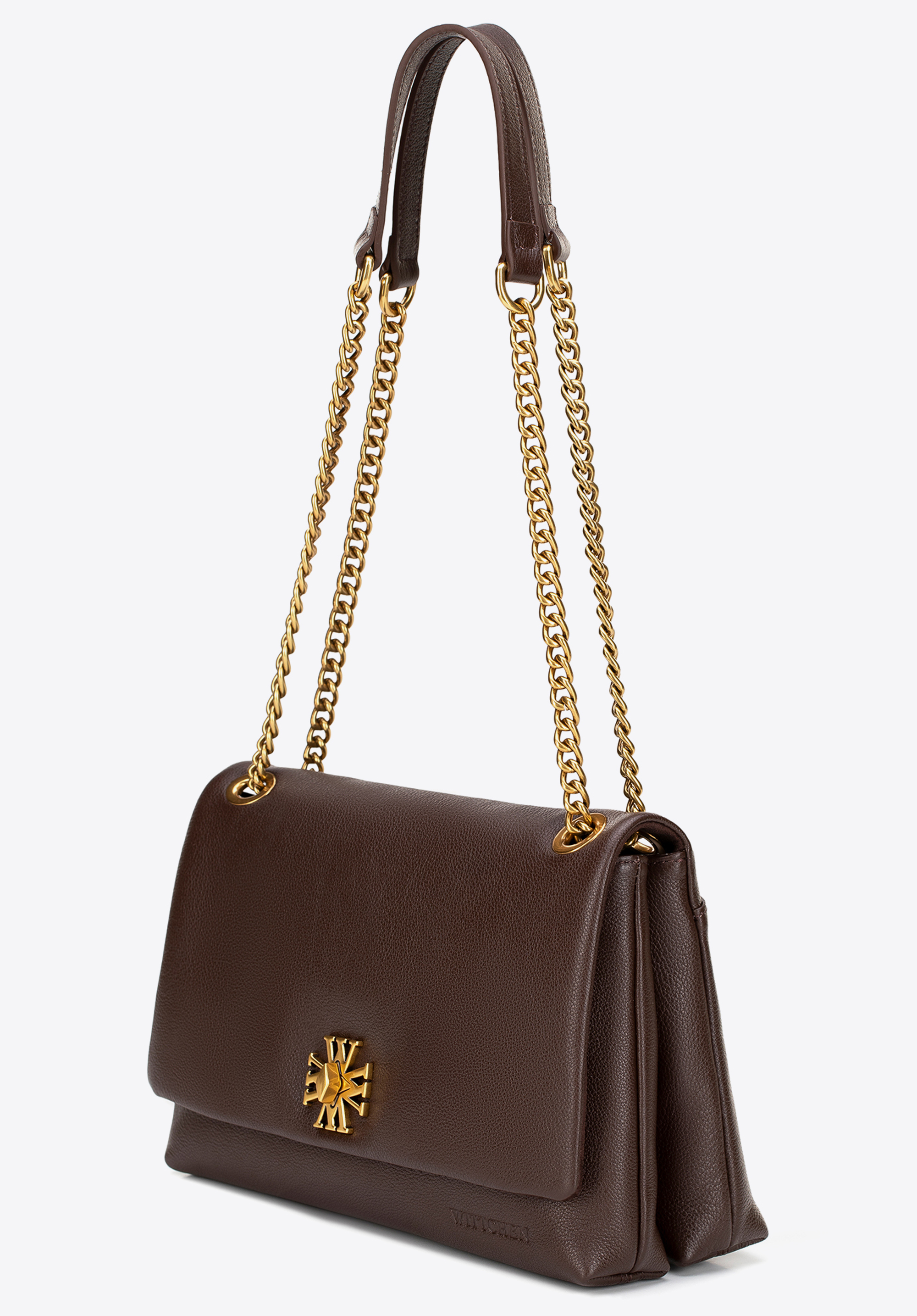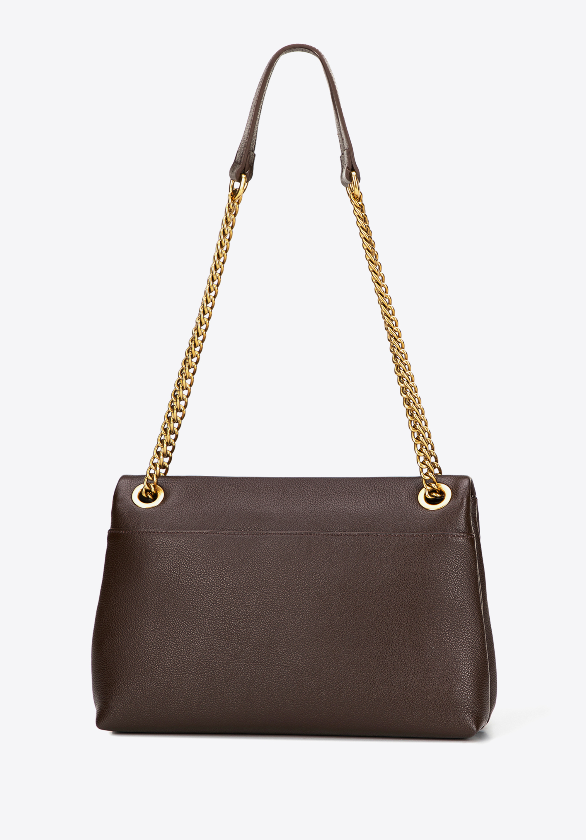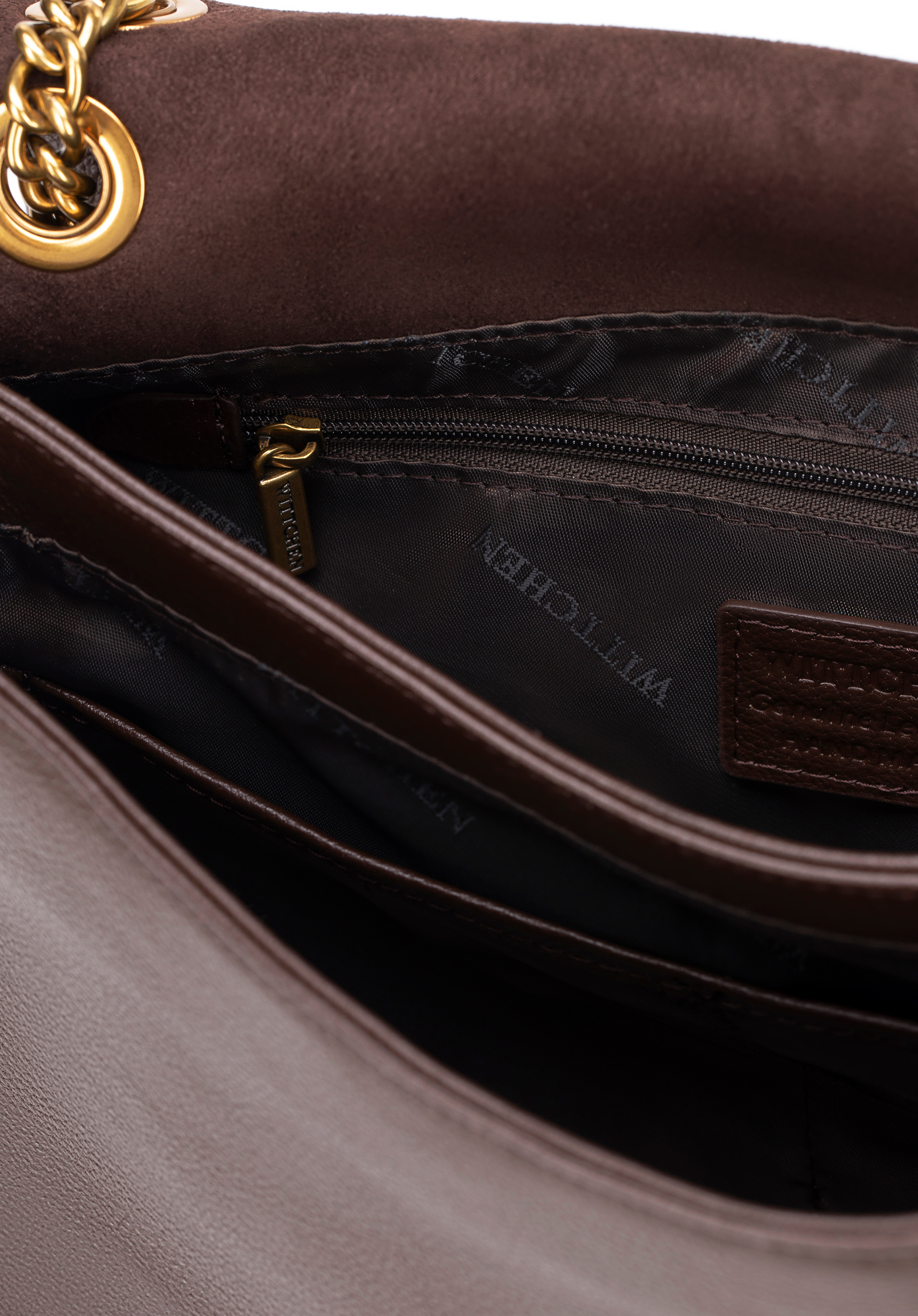 Damska listonoszka ze skóry naturalnej na łańcuszku brązowa