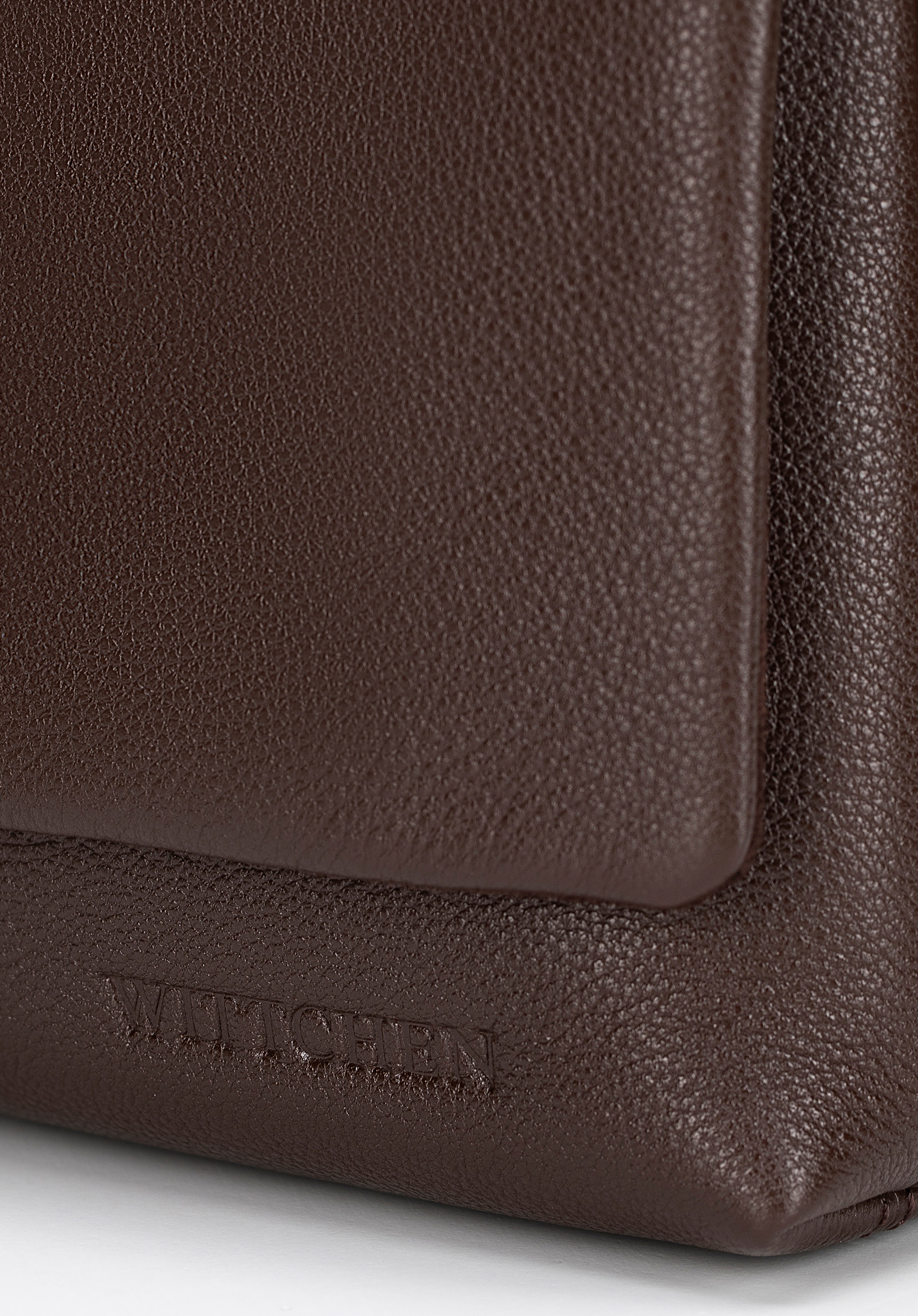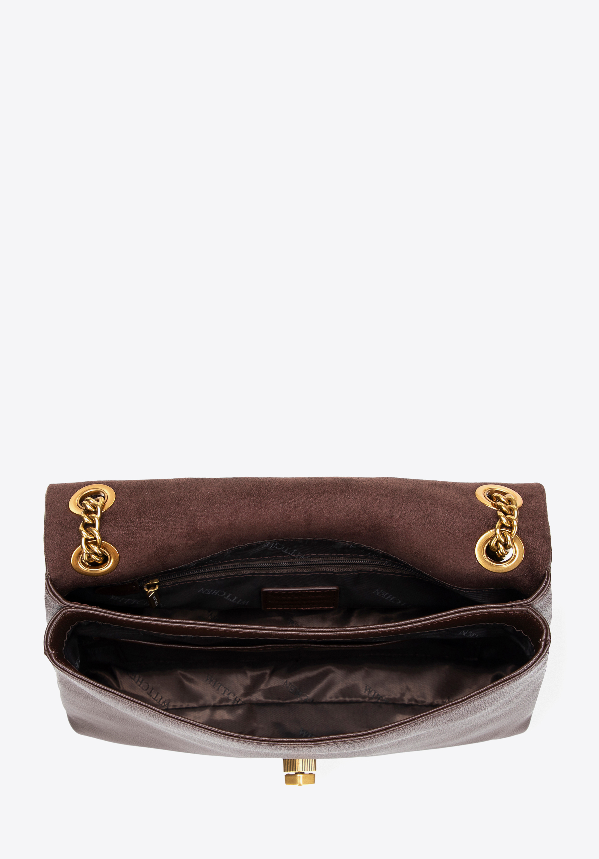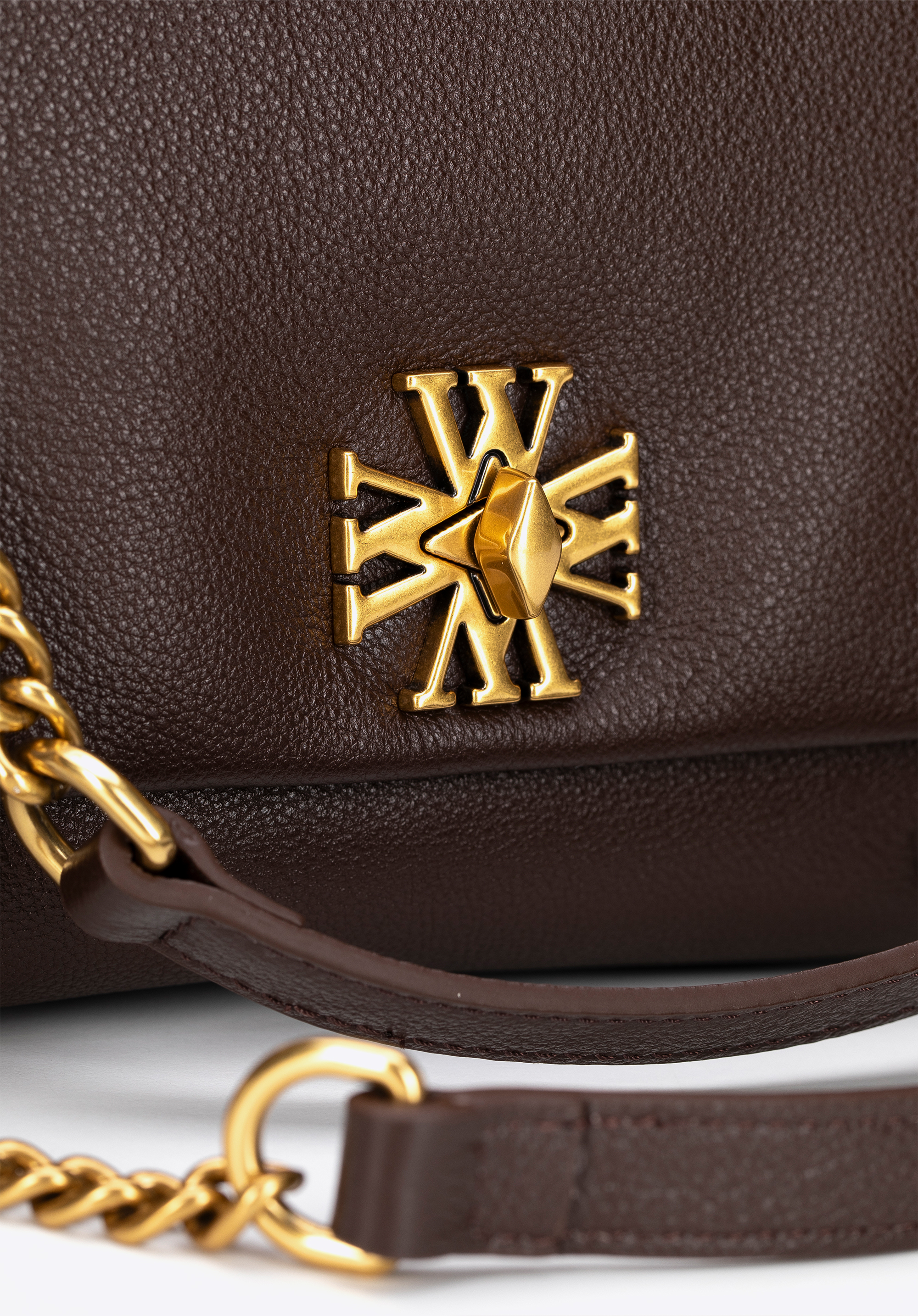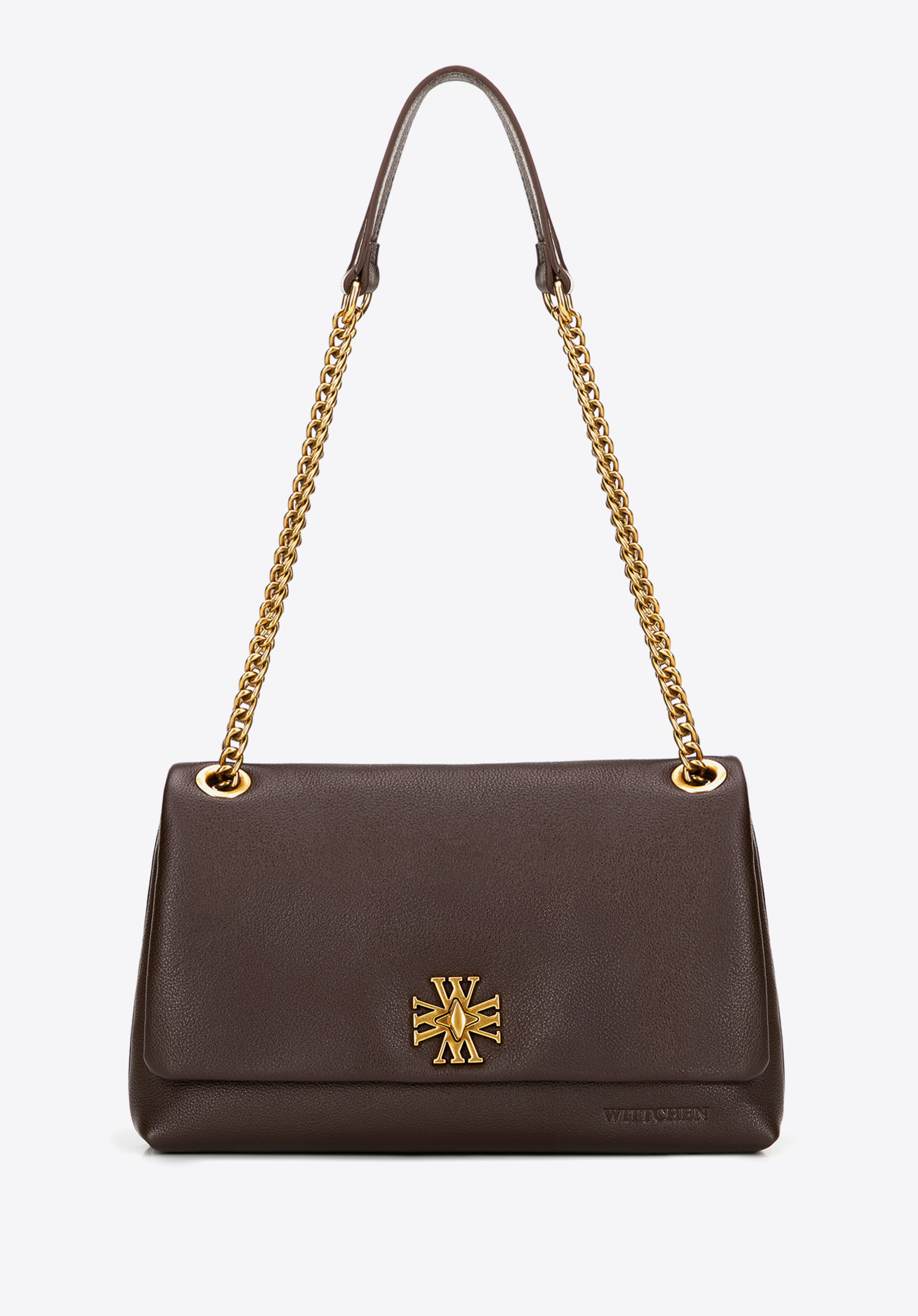 Damska listonoszka ze skóry naturalnej na łańcuszku brązowa