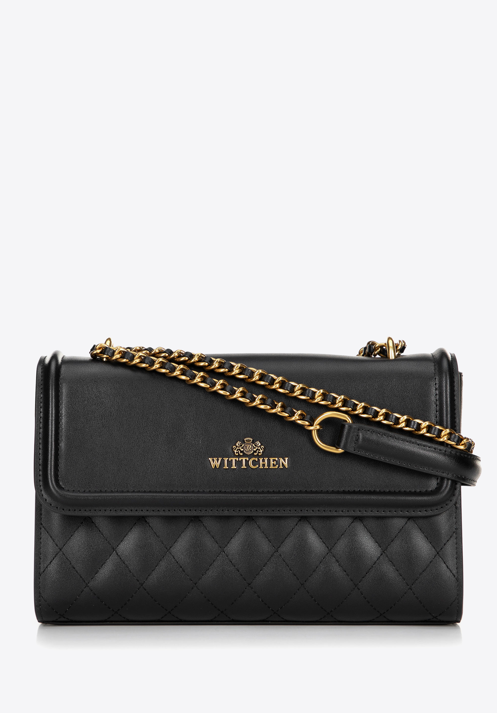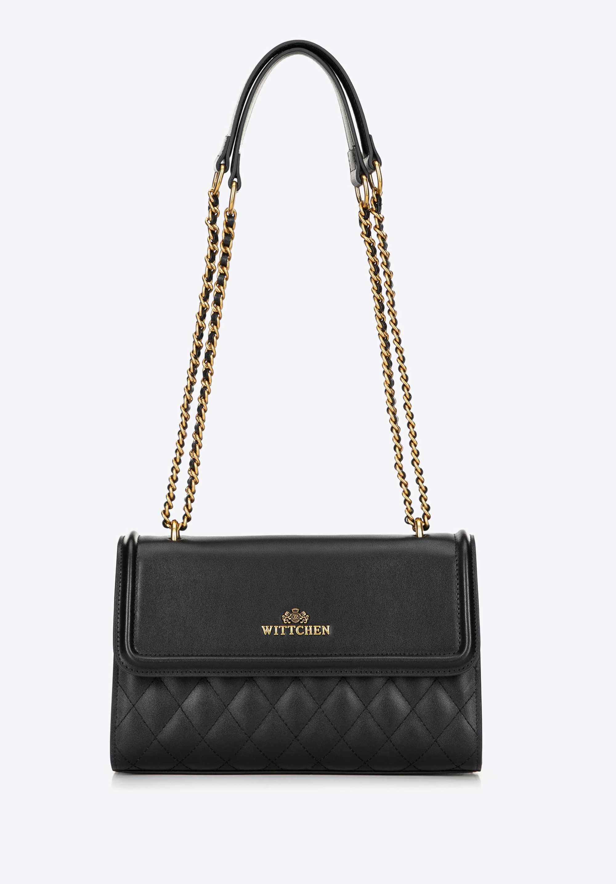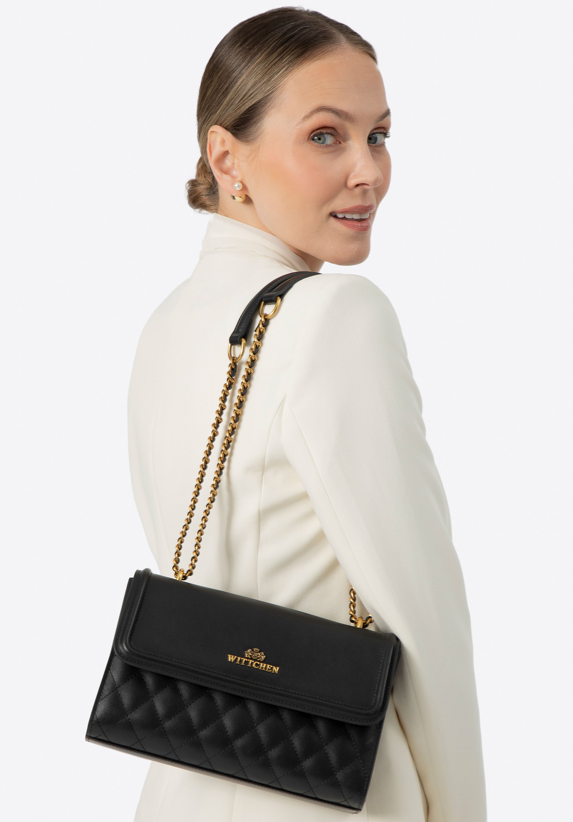 Damska listonoszka ze skóry naturalnej w pikowanie czarno - złota