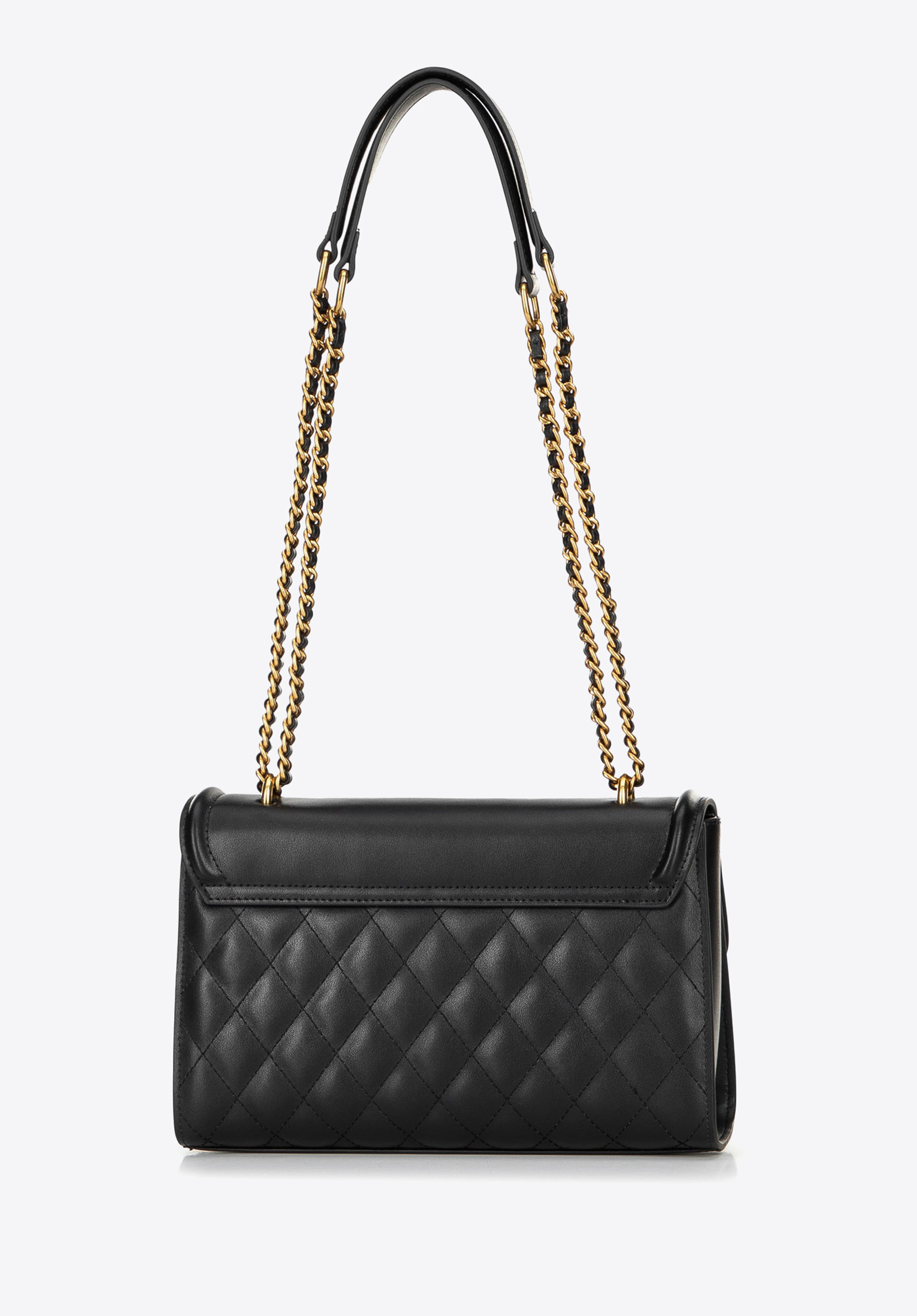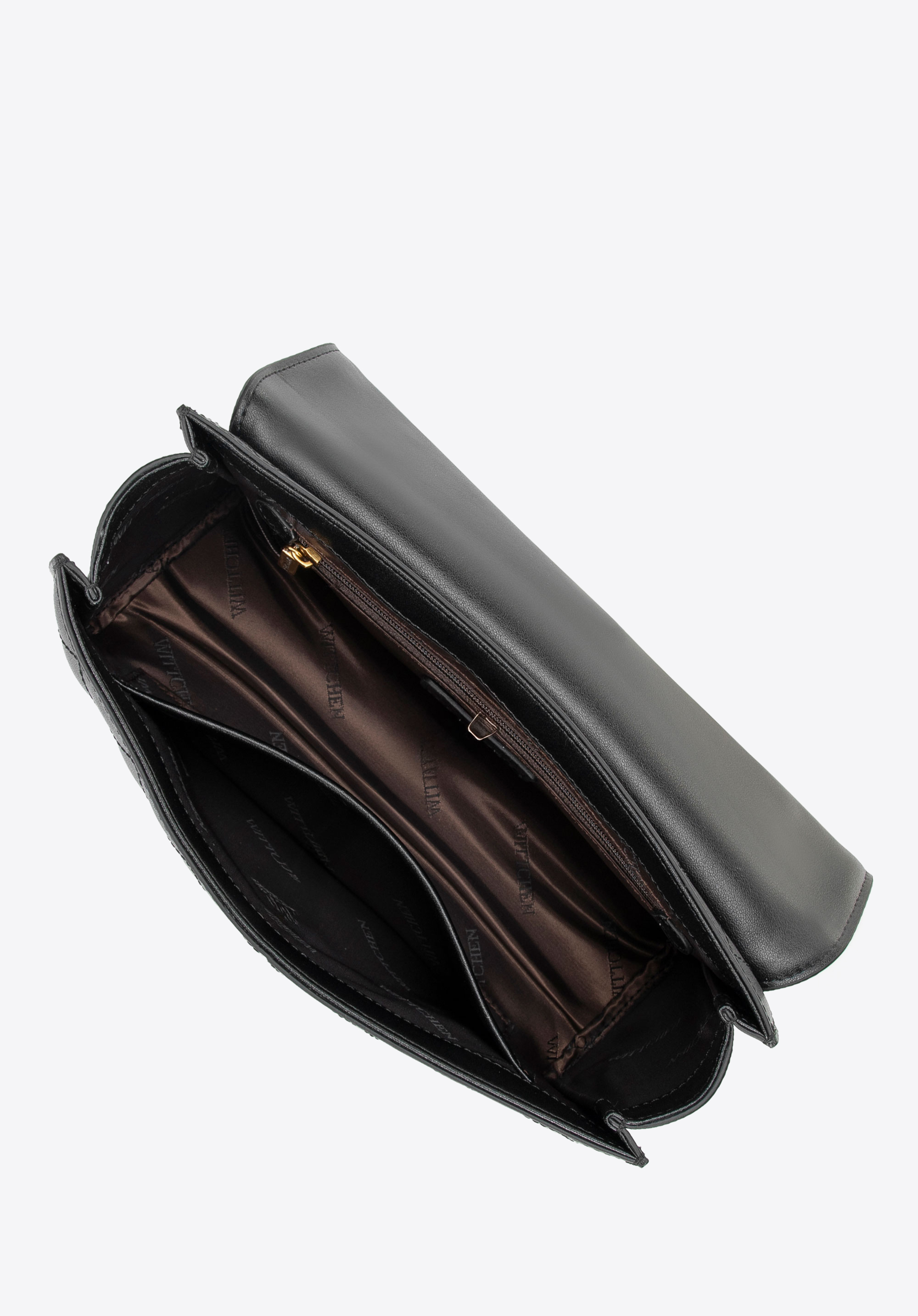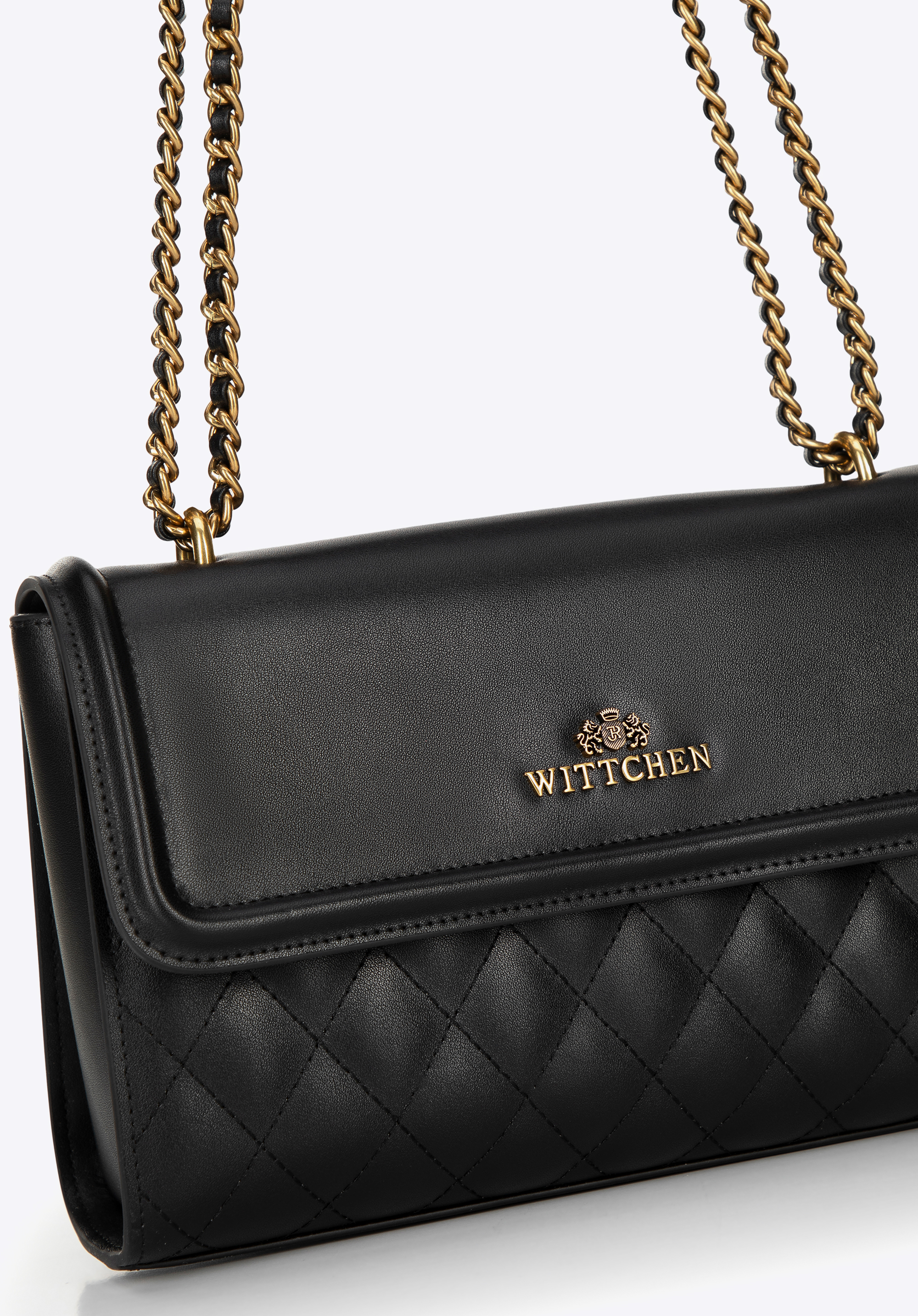 Damska listonoszka ze skóry naturalnej w pikowanie czarno - złota