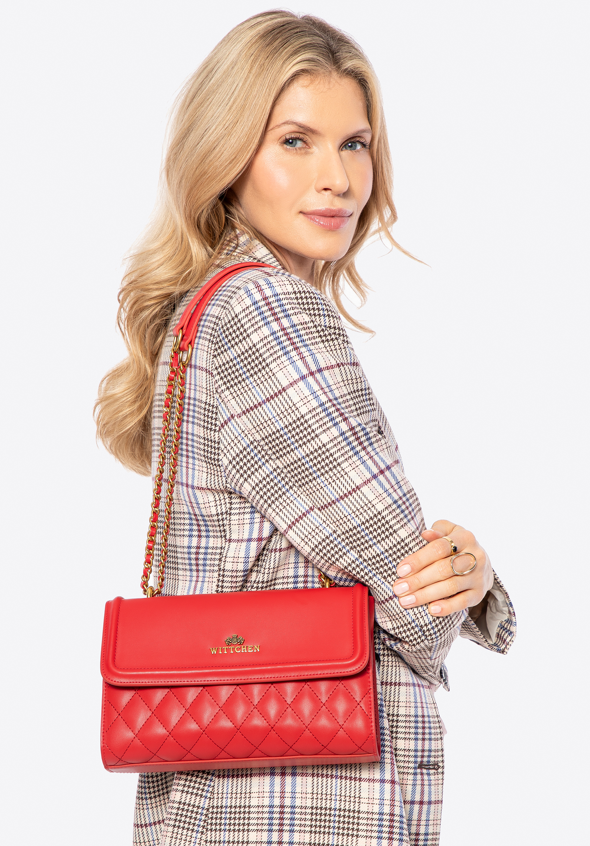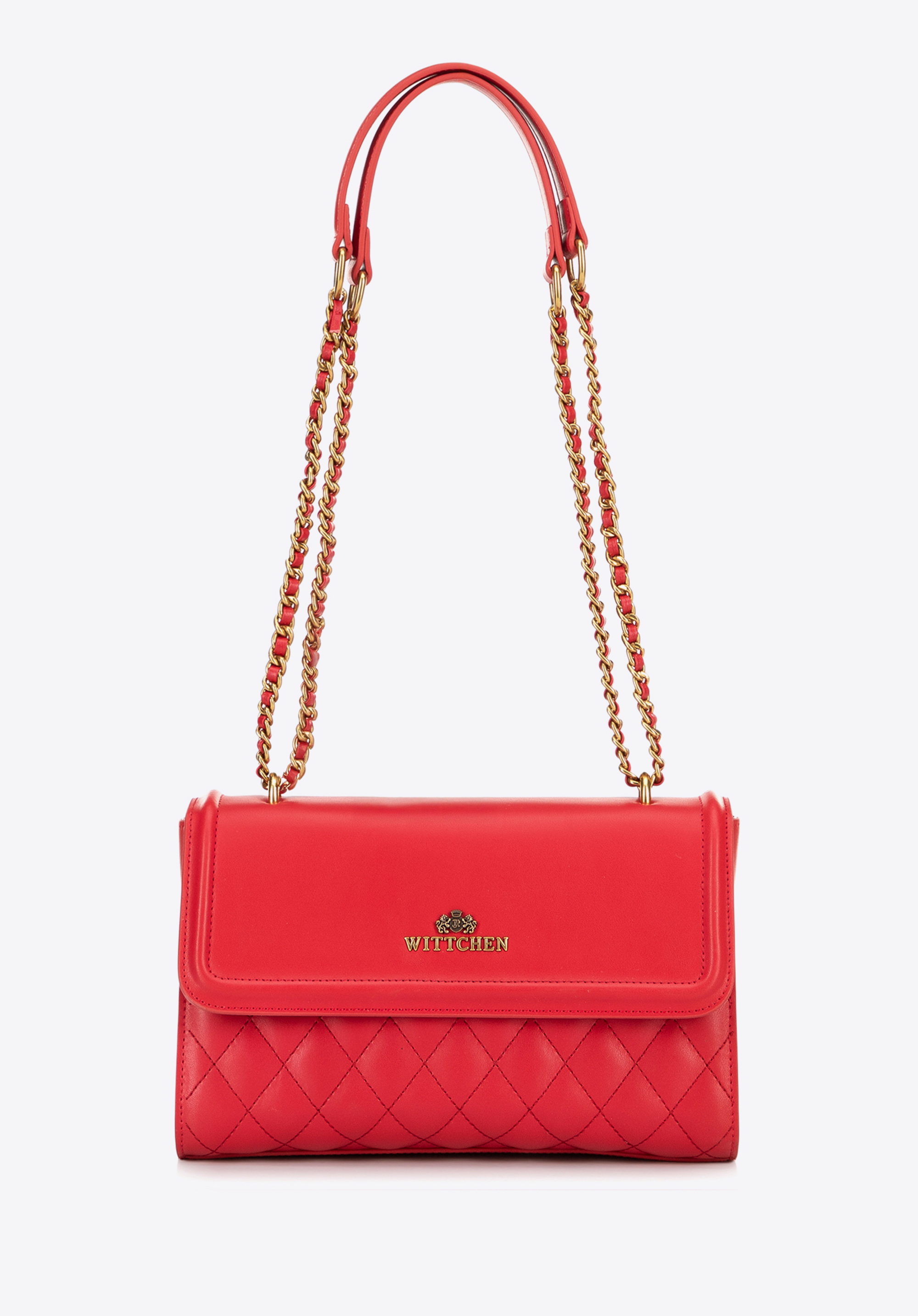 Damska listonoszka ze skóry naturalnej w pikowanie czerwona