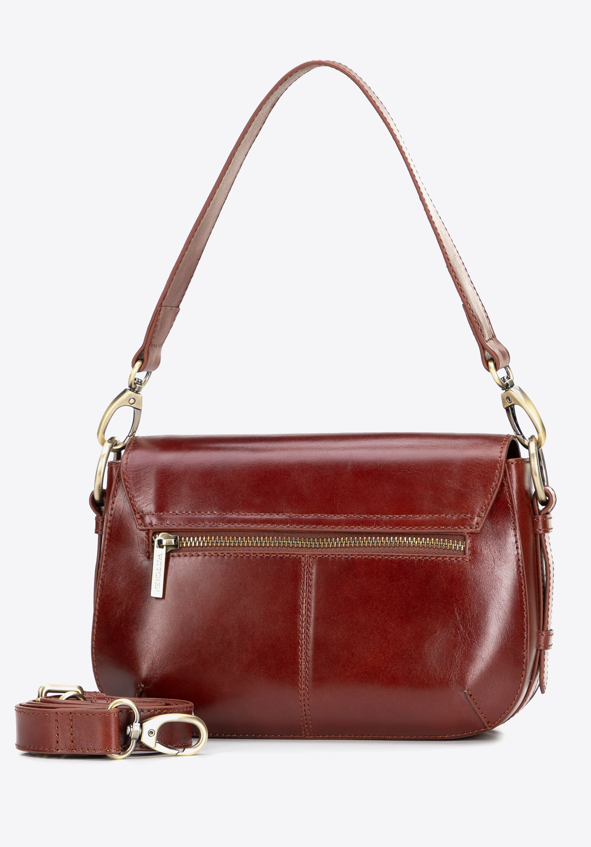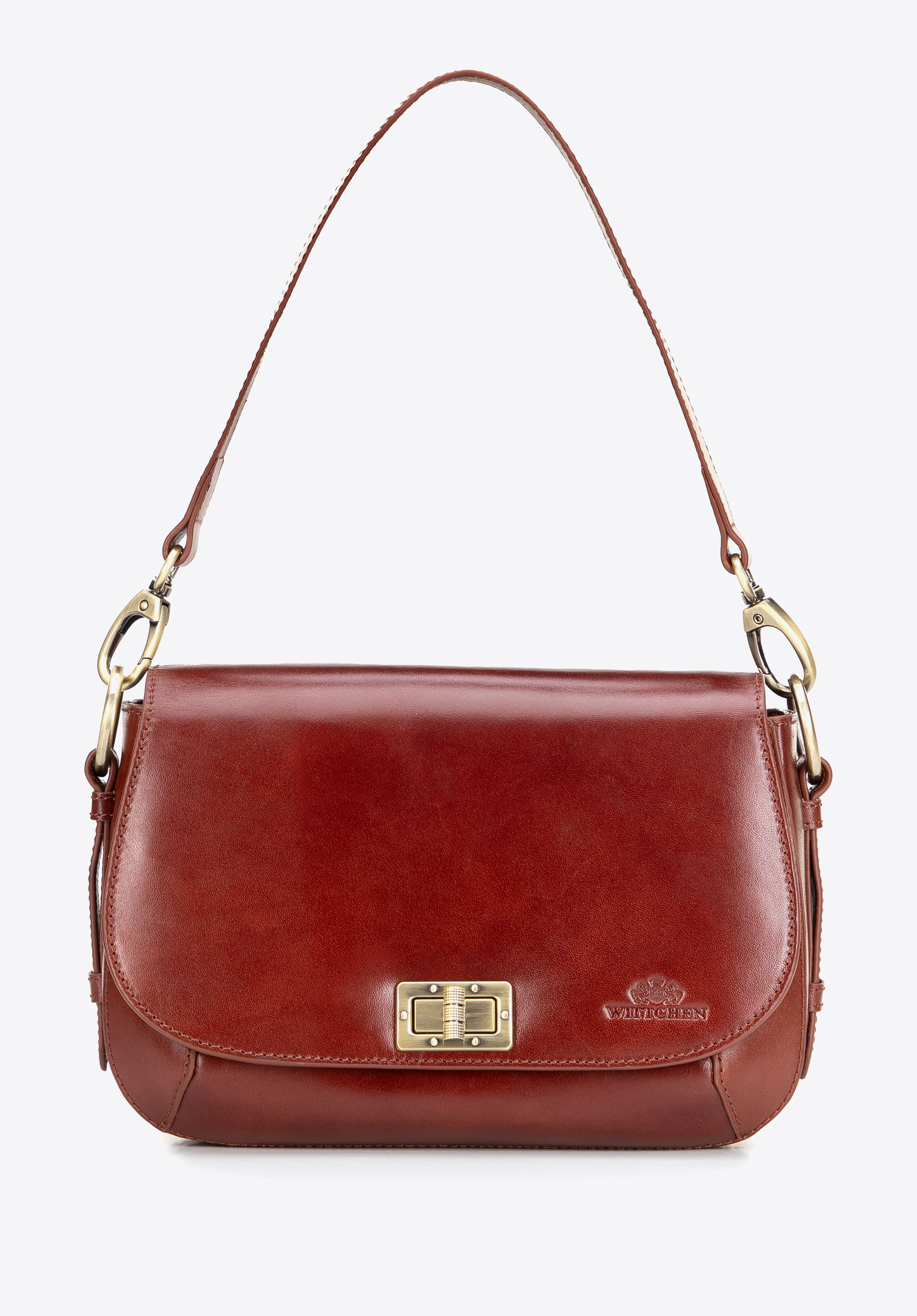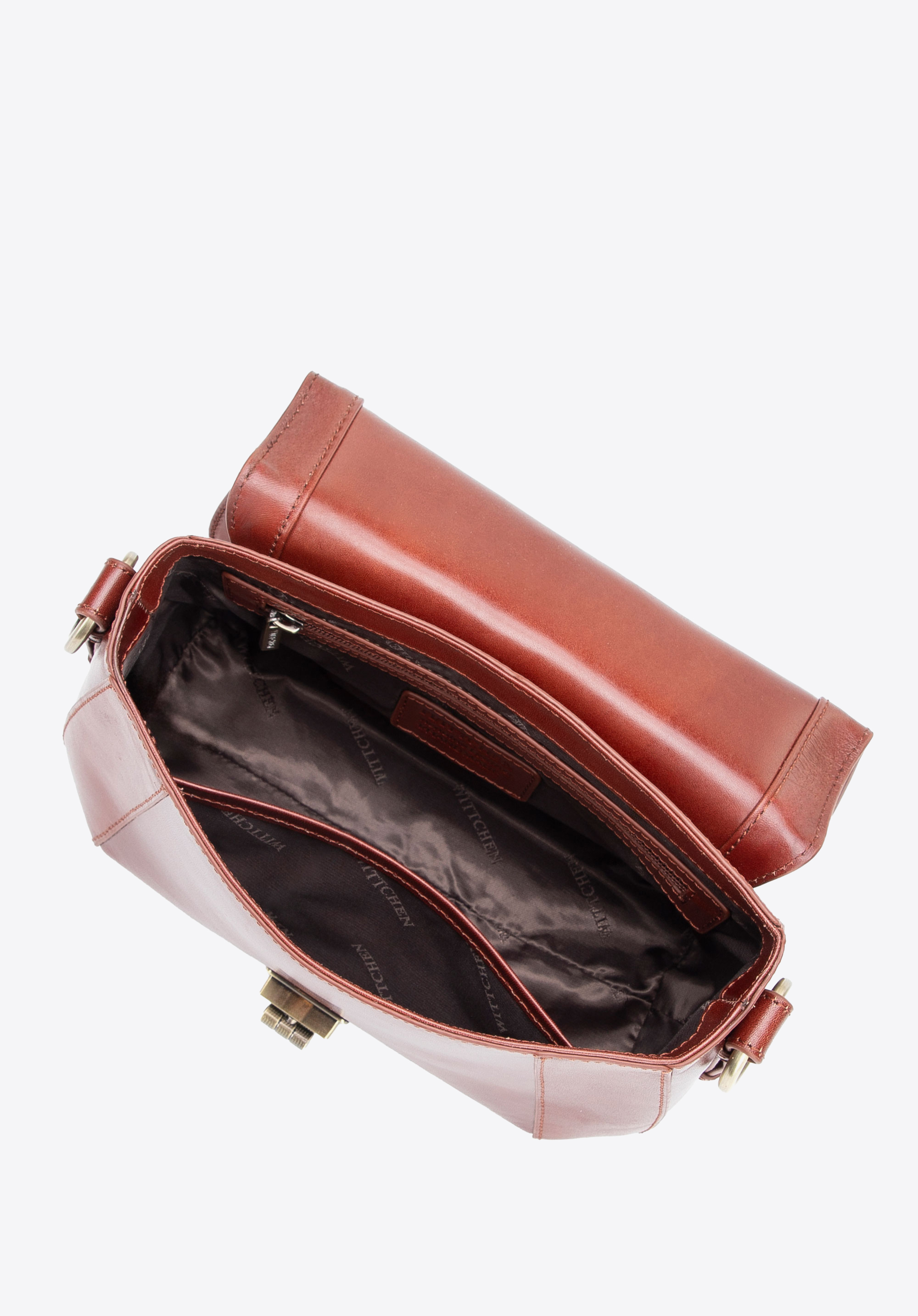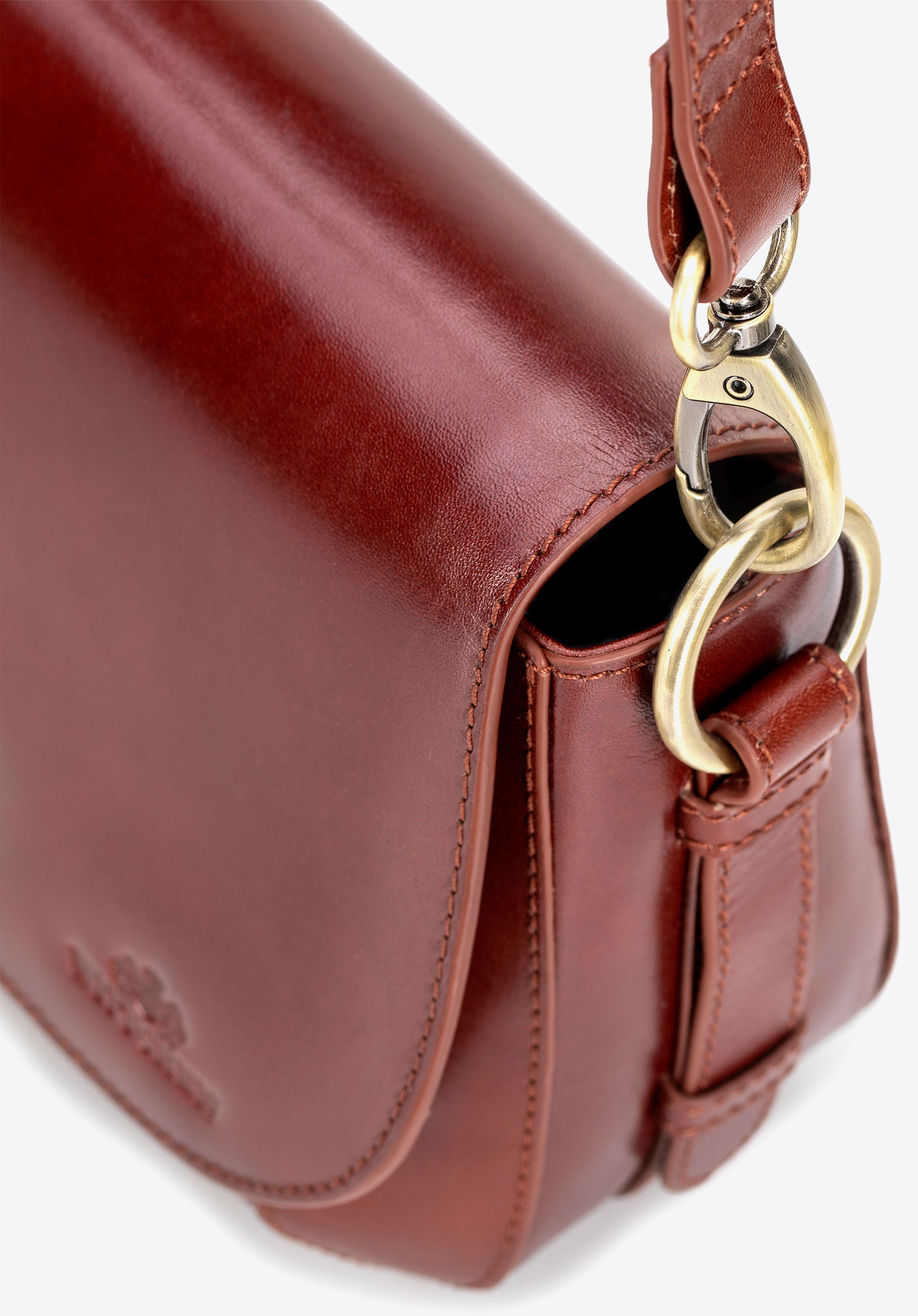 Damska listonoszka ze skóry naturalnej z klapą na klamrę koniakowa