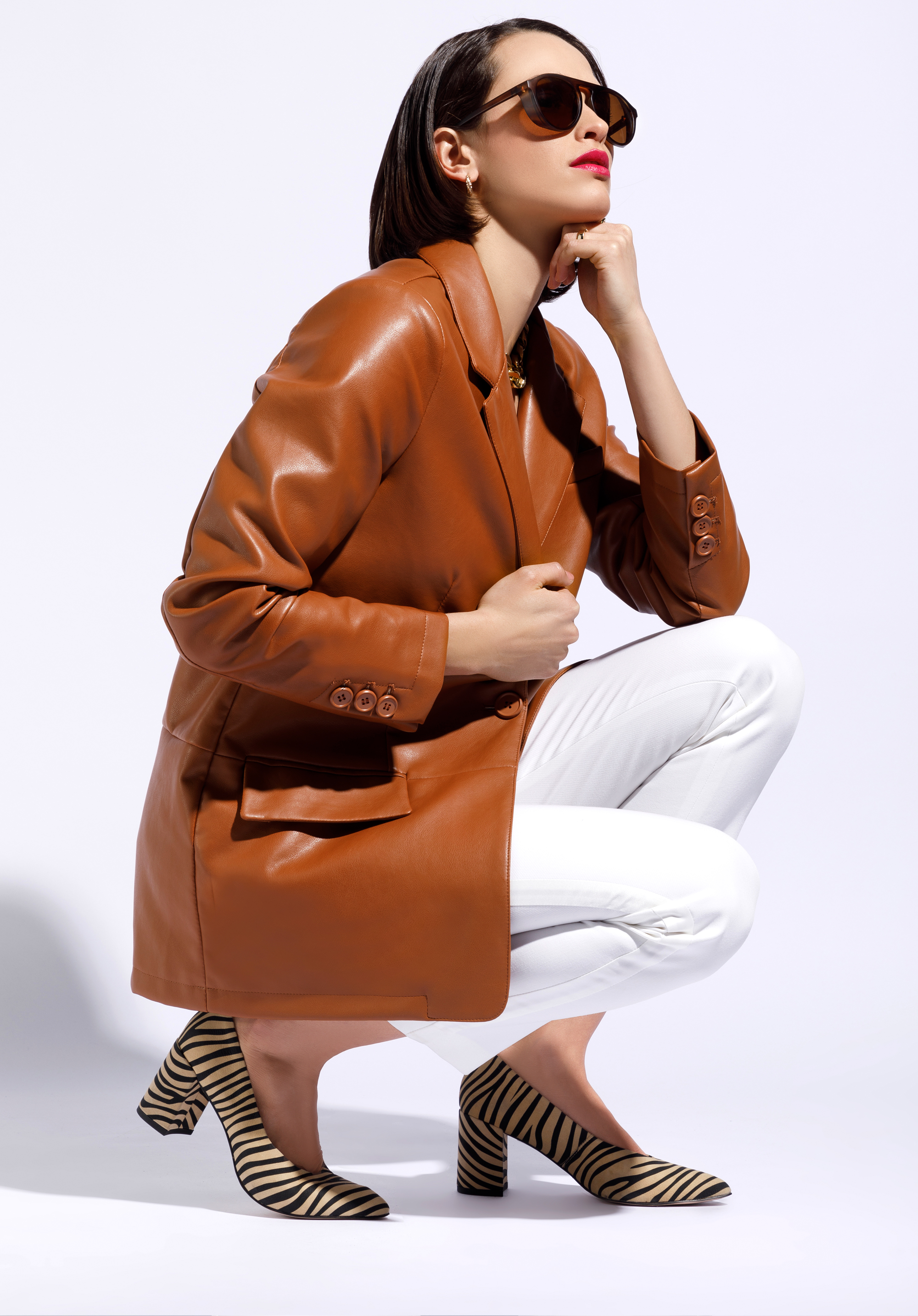 Prosty fason z ozdobnie rozciętym tyłem urozmaici każdą Twoją stylizację, zarówno ulubione dżinsy, jak i skórzaną mini. Prosta damska marynarka z ekoskóry to ponadczasowy dodatek, który możesz nosić przez wiele sezonów.