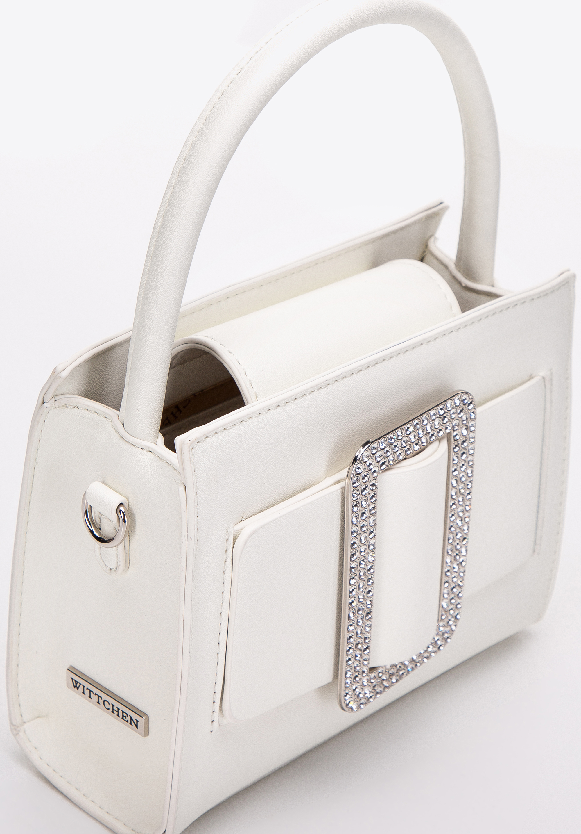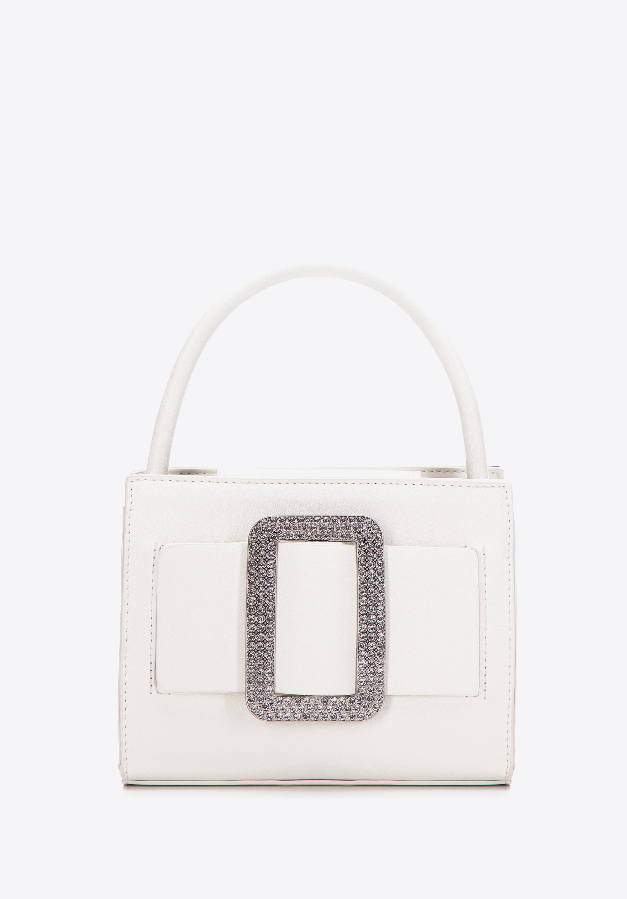 duża, błyszcząca klamra z kryształkami. W środku zmieścisz telefon, etui na karty, ulubioną pomadkę i kilka drobiazgów.