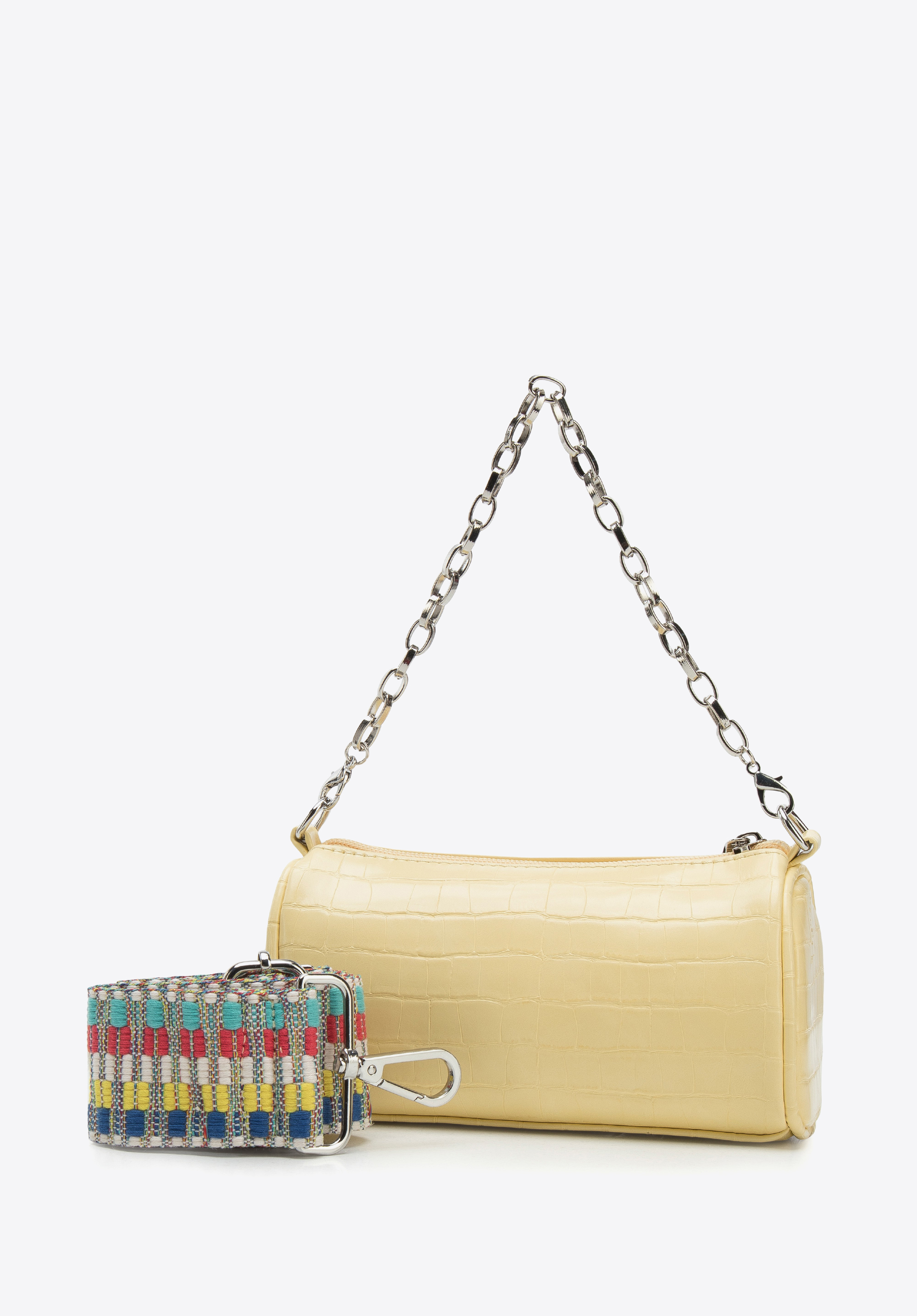 Możesz nosić ją na łańcuszku lub doczepić szeroki, wyszywany pasek – w zależności od tego, na co masz ochotę. Torebka została