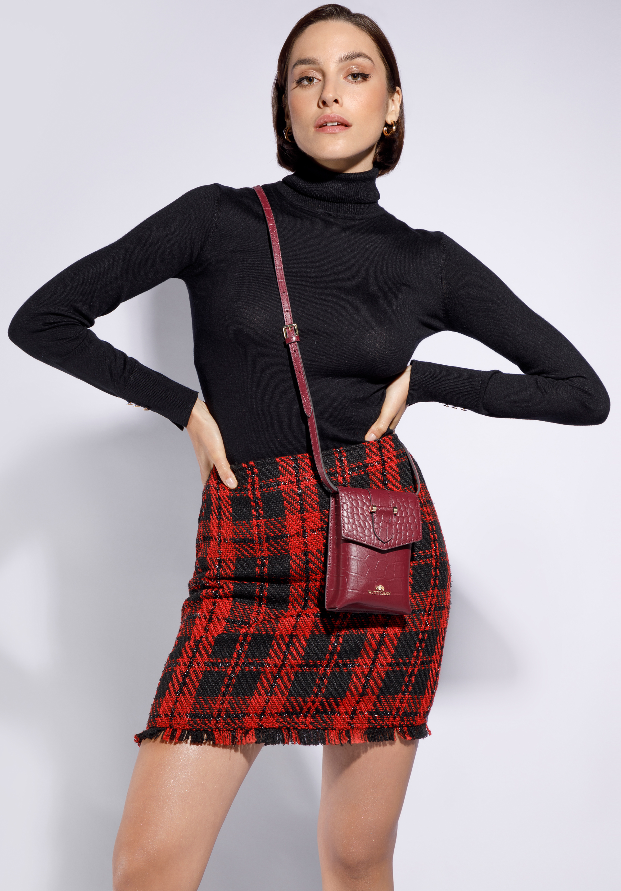 torebkę crossbody. Ten uniwersalny model będzie świetnie wyglądał i do dżinsów z t-shirtem i do sukienki z falbankami. Ta damska minitorebka ze skóry croco to świetny wybór dla każdej dobrze zorganizowanej kobiety.