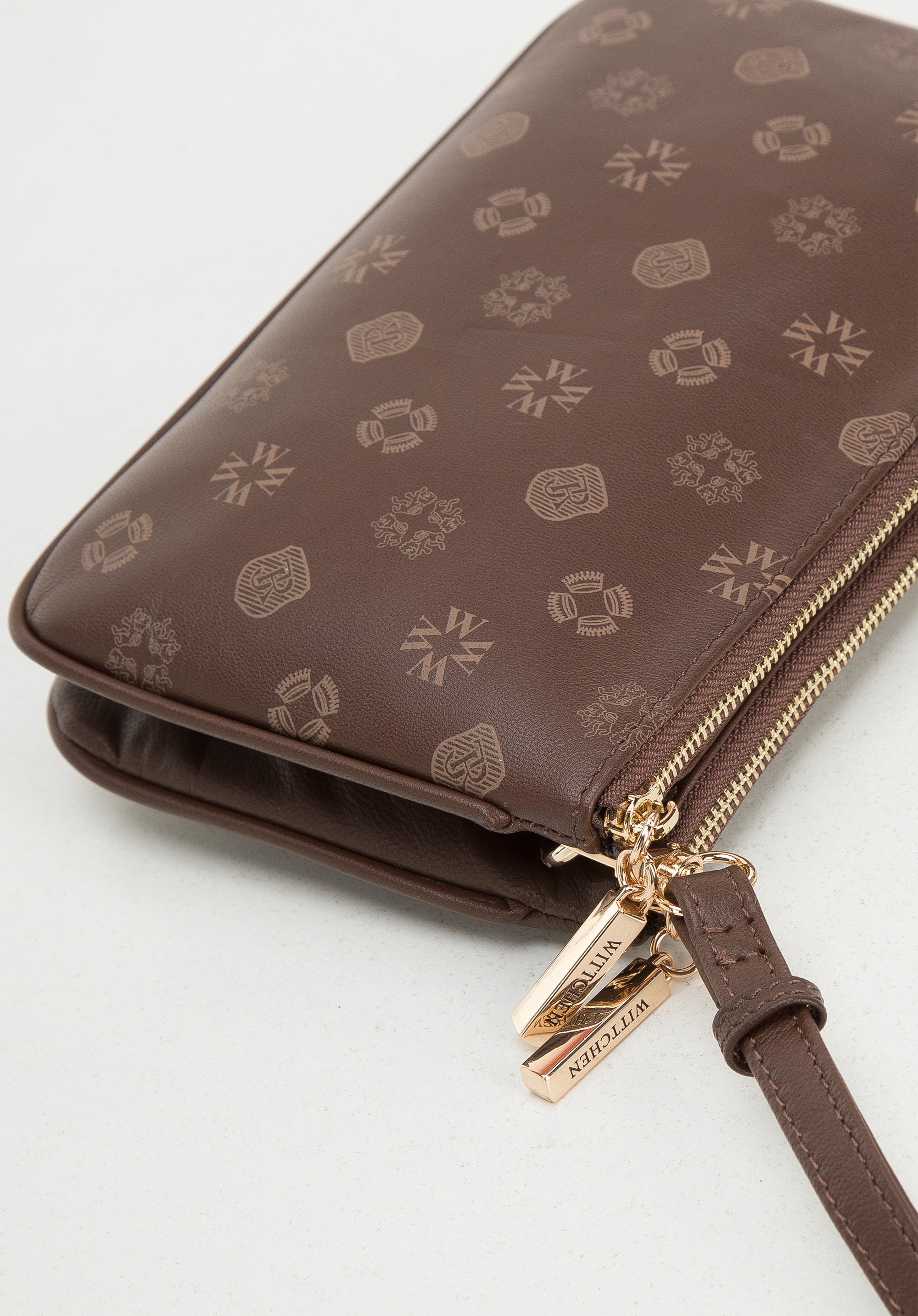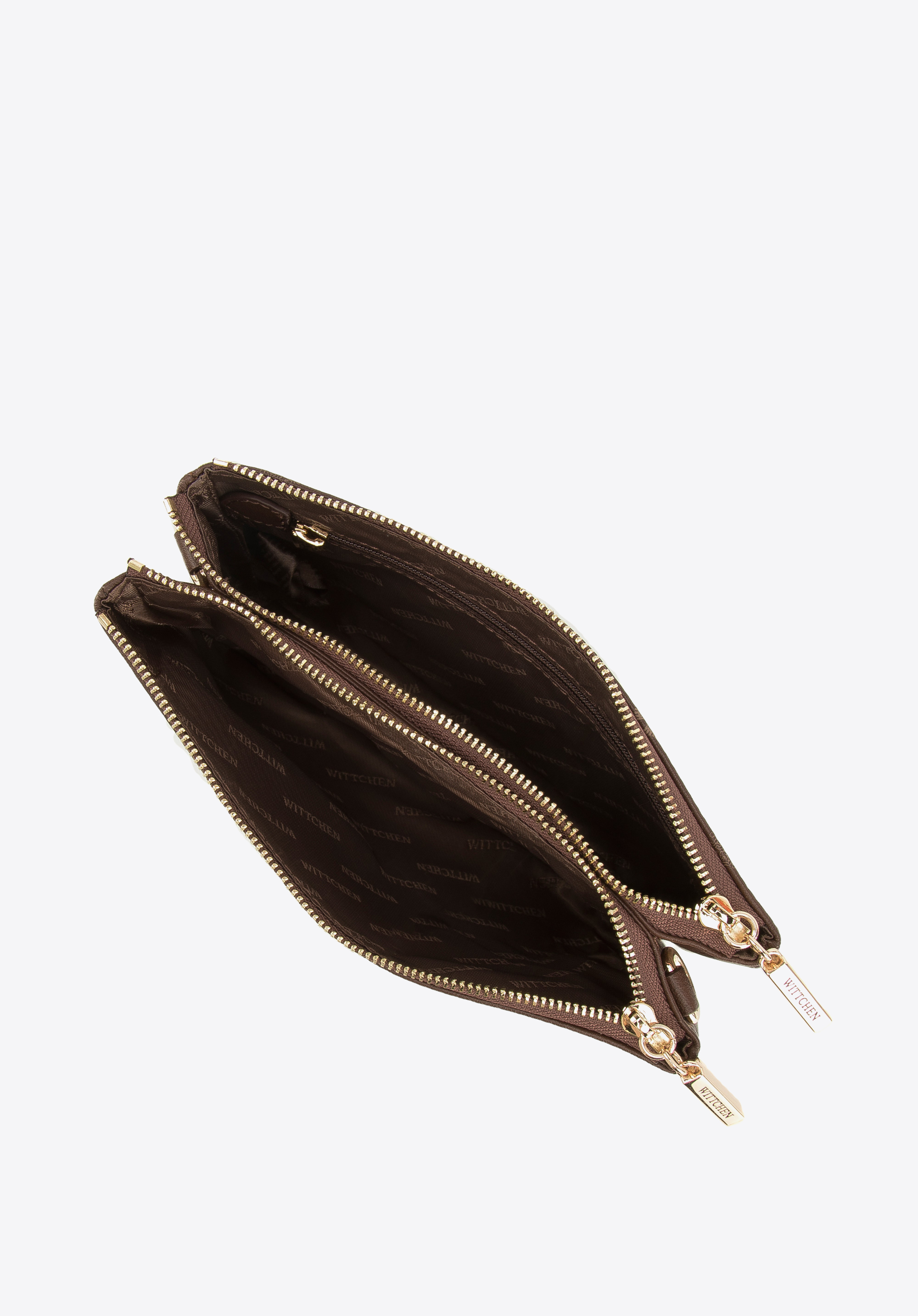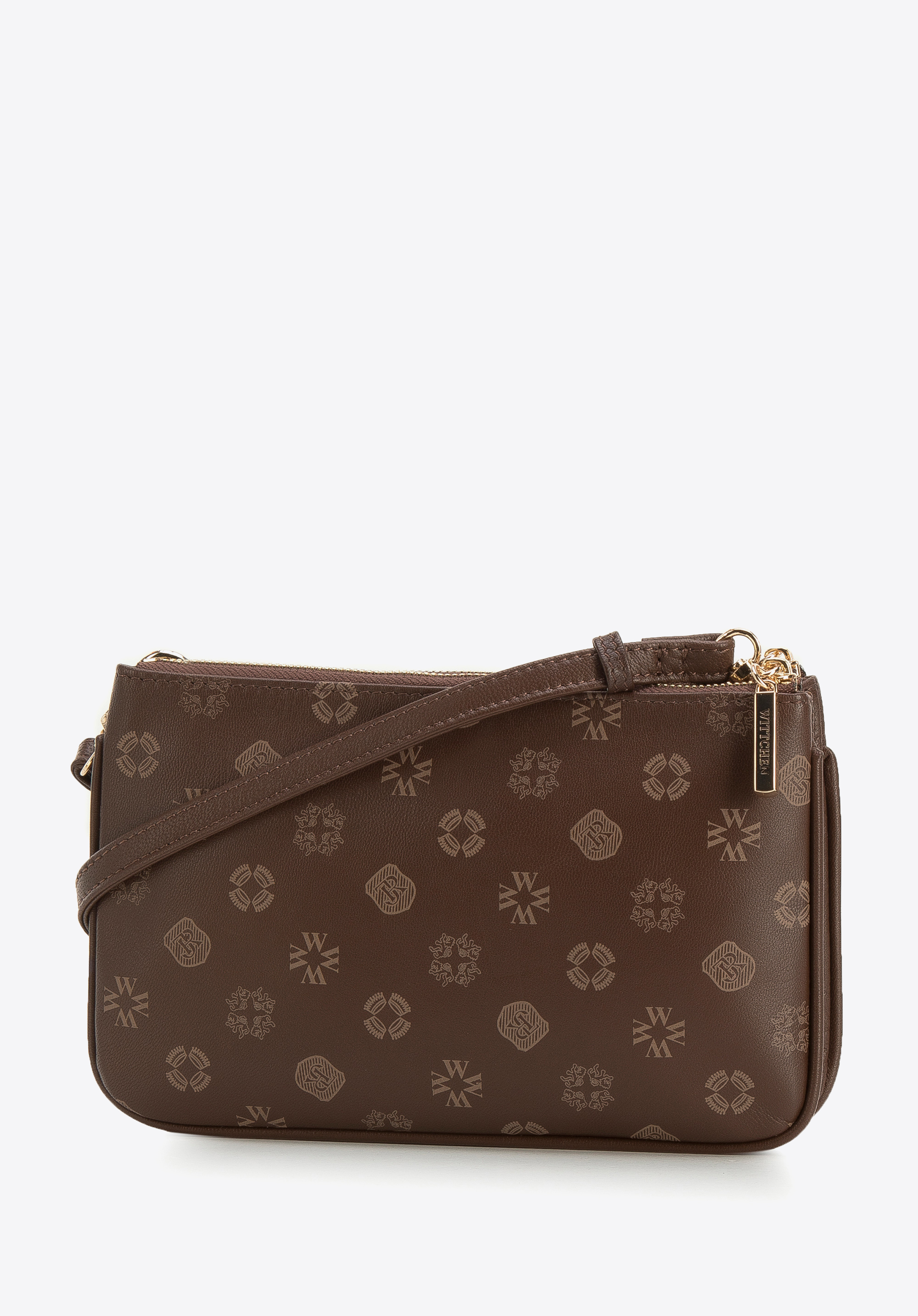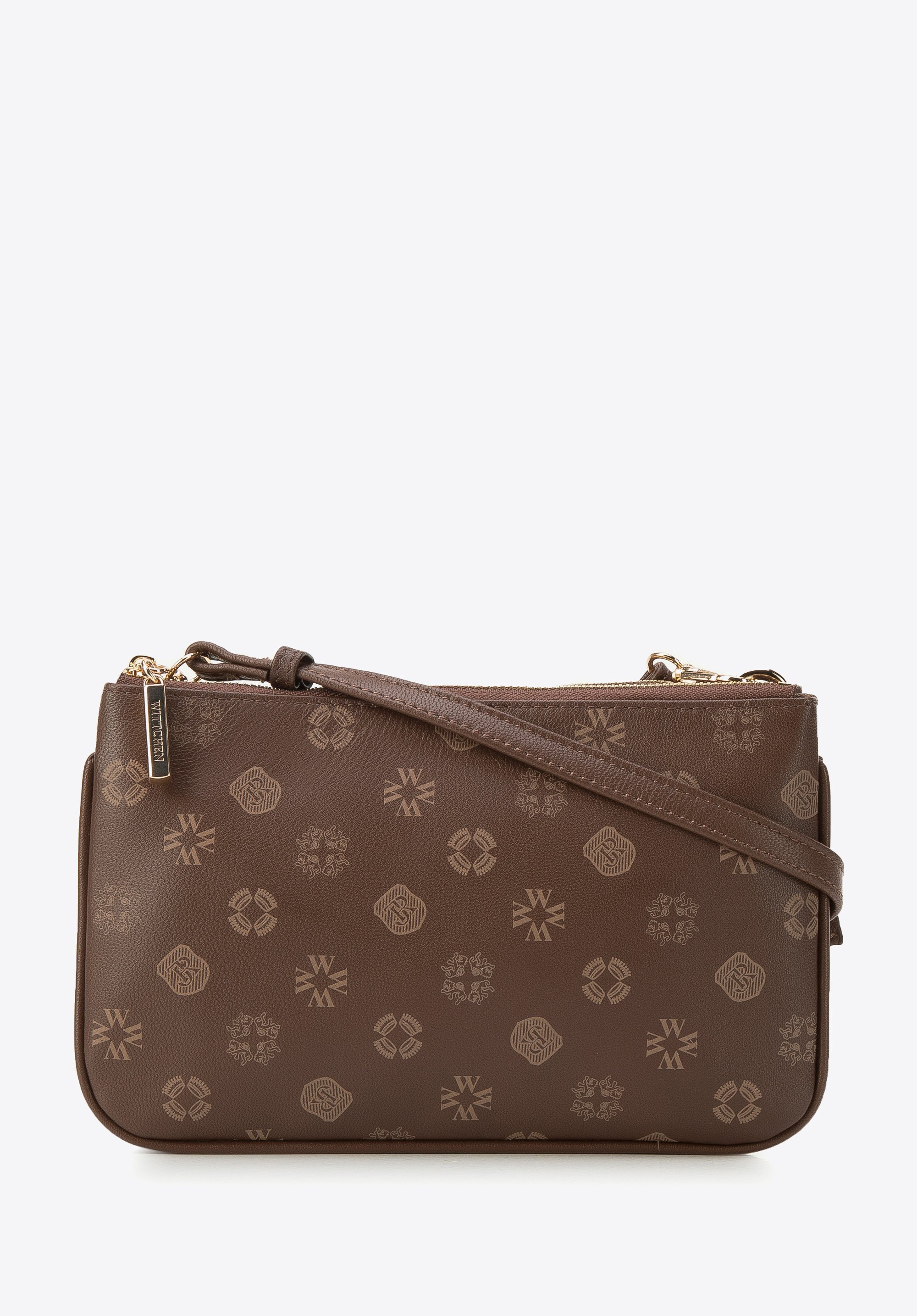 Damska minitorebka ze skóry w monogram dwukomorowa brązowa