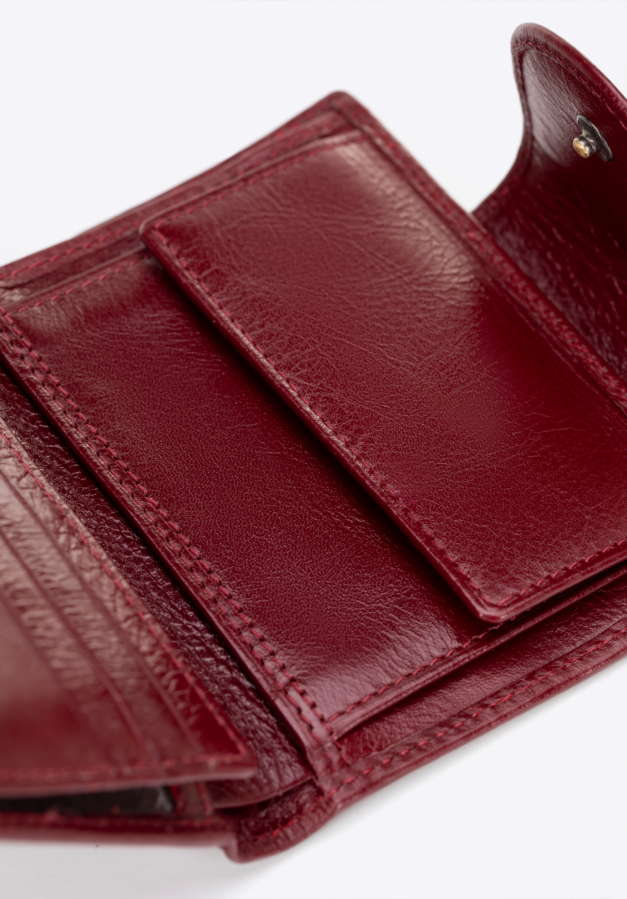 - Przemyślany układ: Wnętrze obejmuje miejsce na bilon, umożliwiające szybki dostęp do drobnych oraz 3 przegródki na karty, idealne do przechowywania kart płatniczych i lojalnościowych.