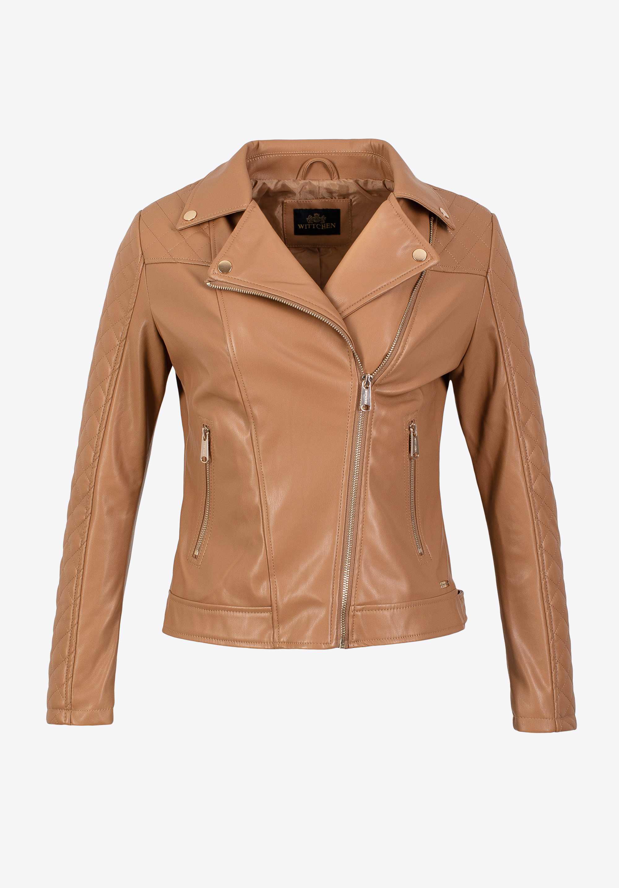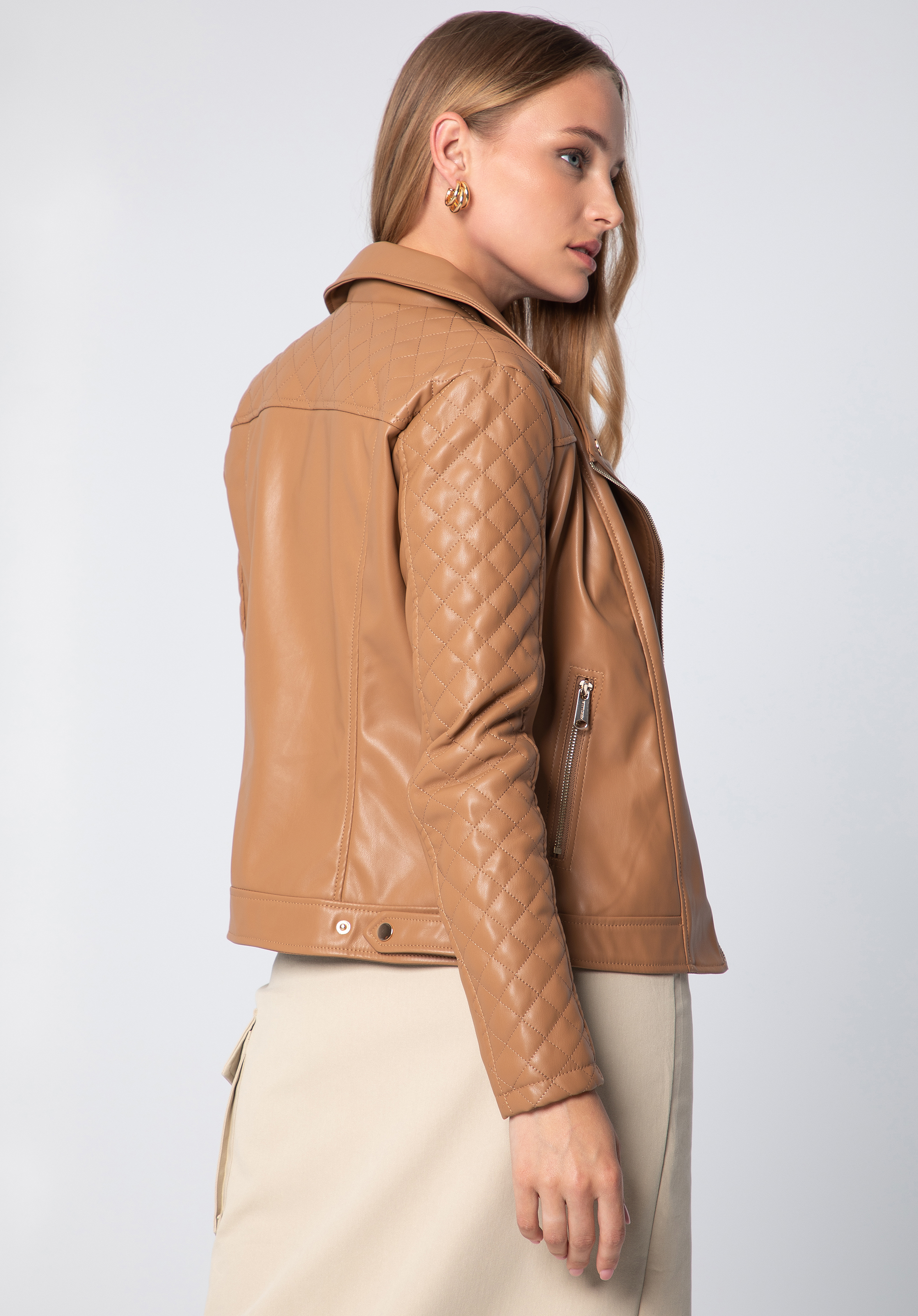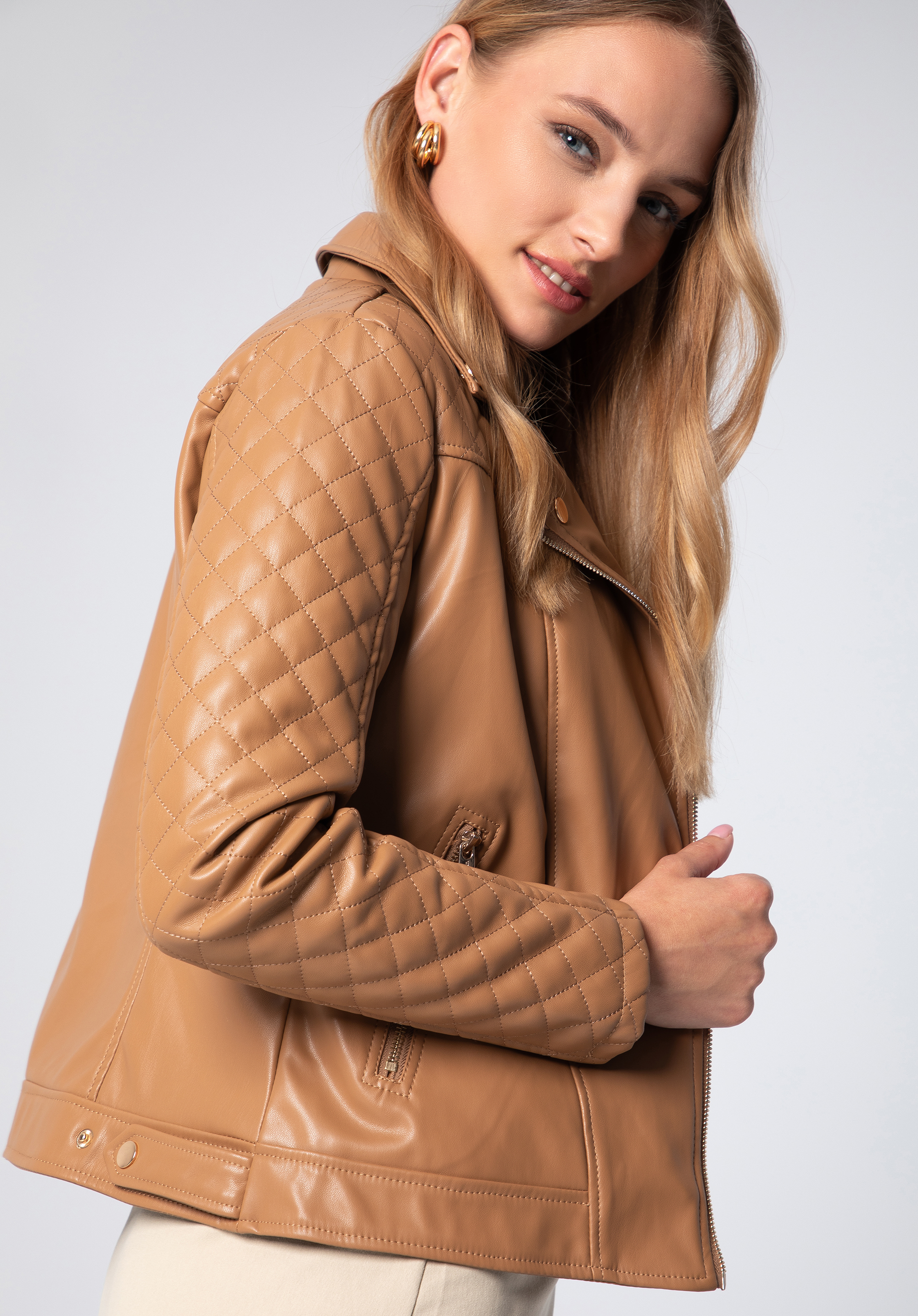 Damska ramoneska z ekoskóry z pikowaną wstawką to must have w szafie każdej eleganckiej kobiety.