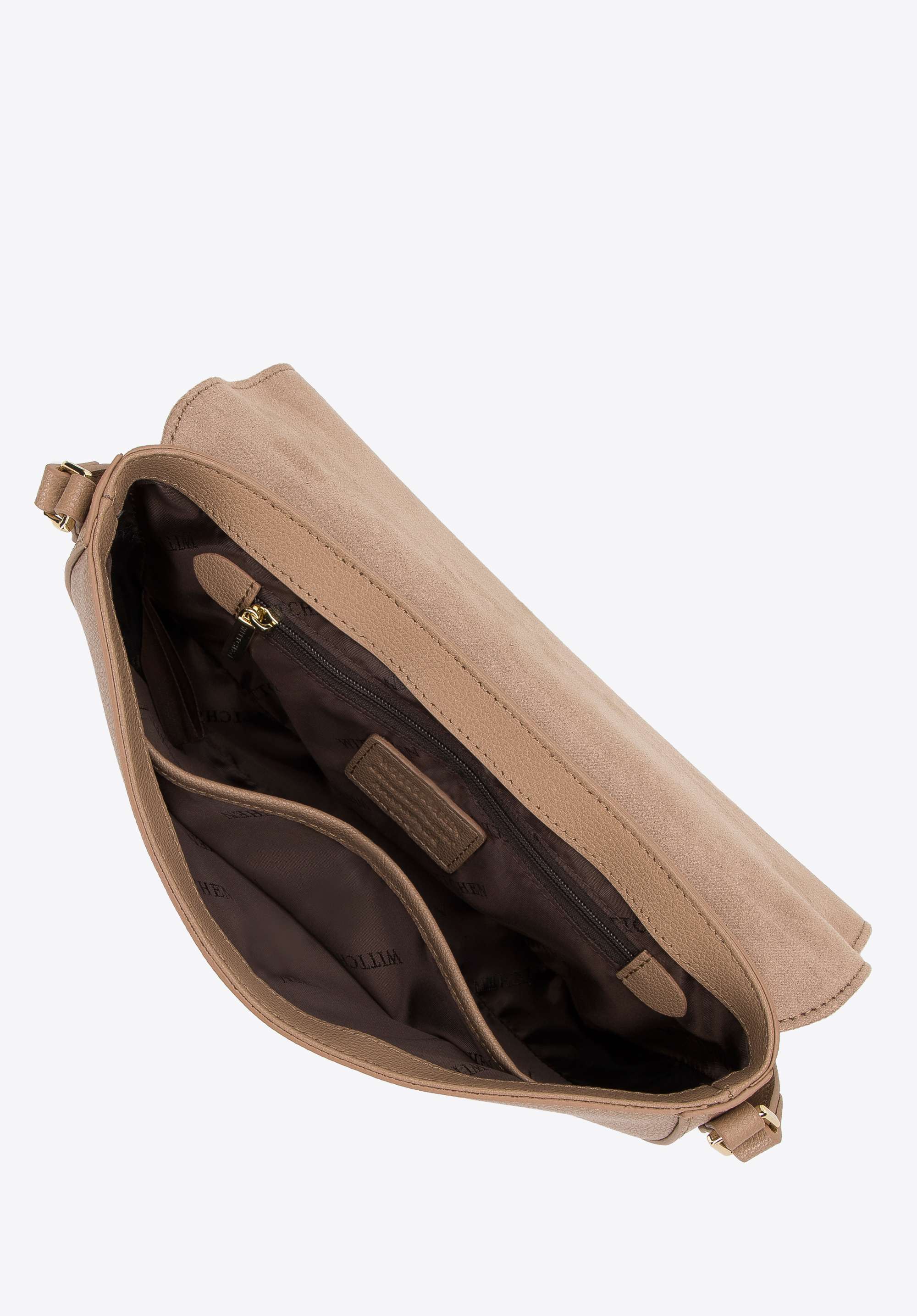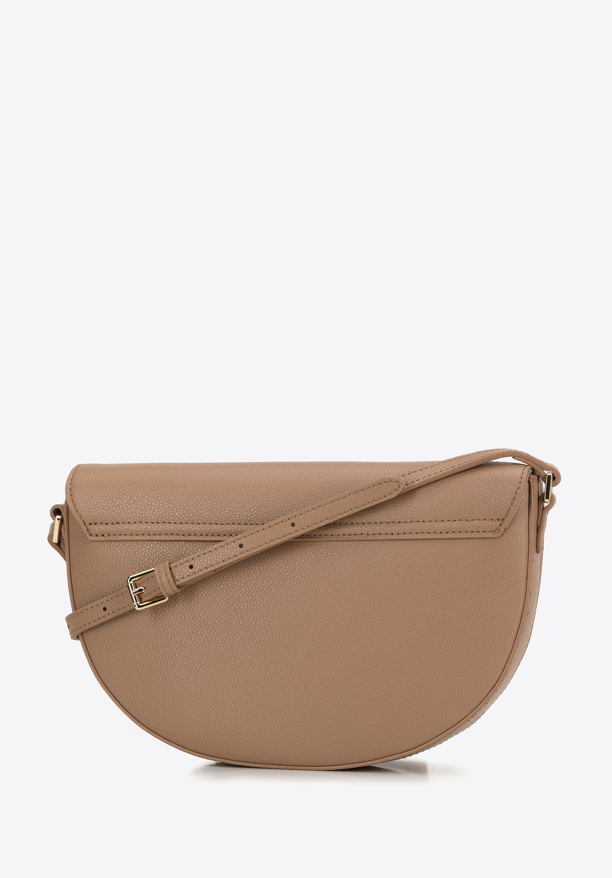 fason saddle bag będzie świetnie wyglądał i do puchowego płaszcza zimą, i do skórzanej ramoneski wiosną. Zabierz go do kina, na wesele lub na kawę z przyjaciółką – w każdej sytuacji elegancko dopełni Twój strój. Prosta damska saddle bag z groszkowanej skóry to ponadczasowy dodatek dla każdej eleganckiej kobiety.