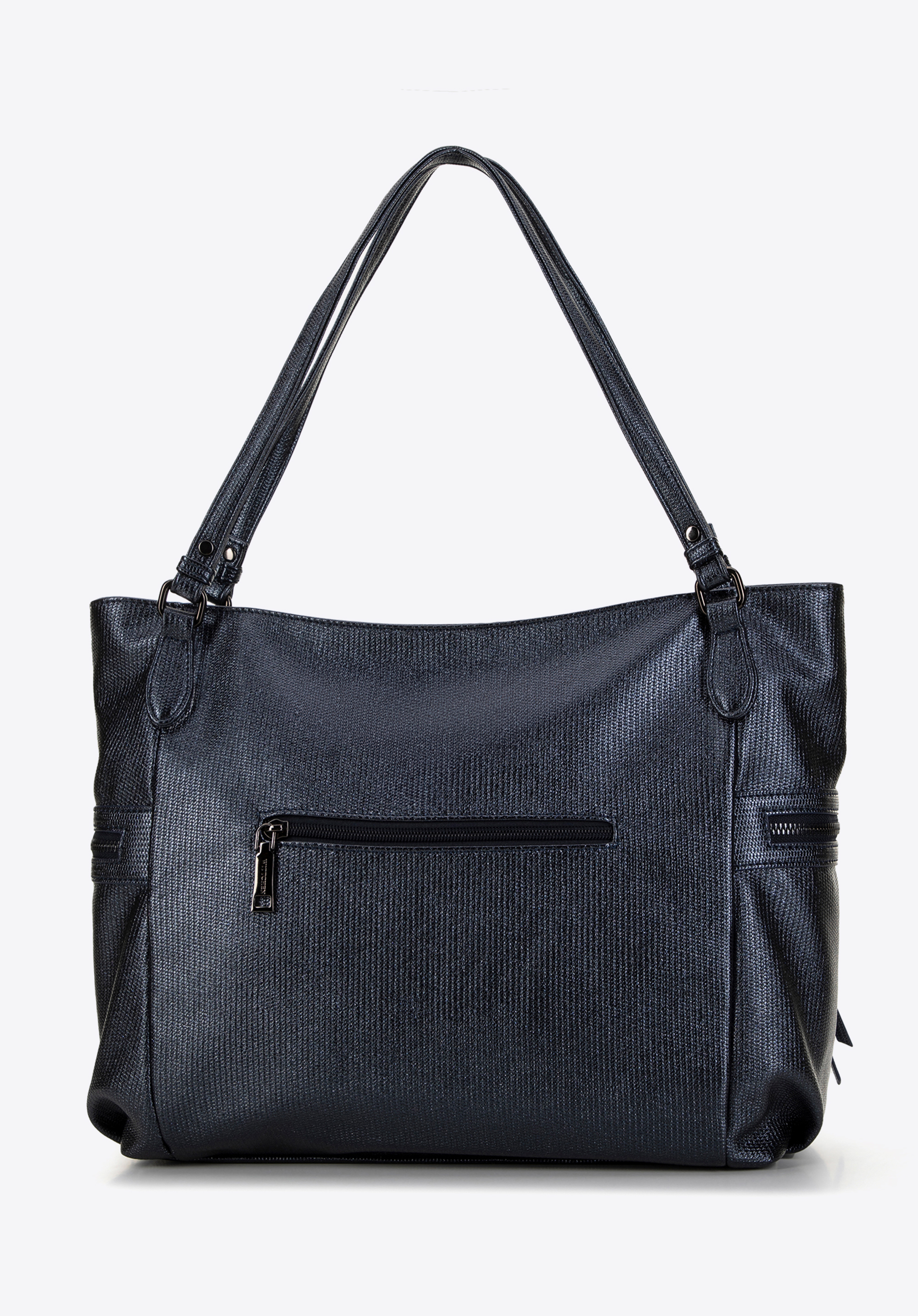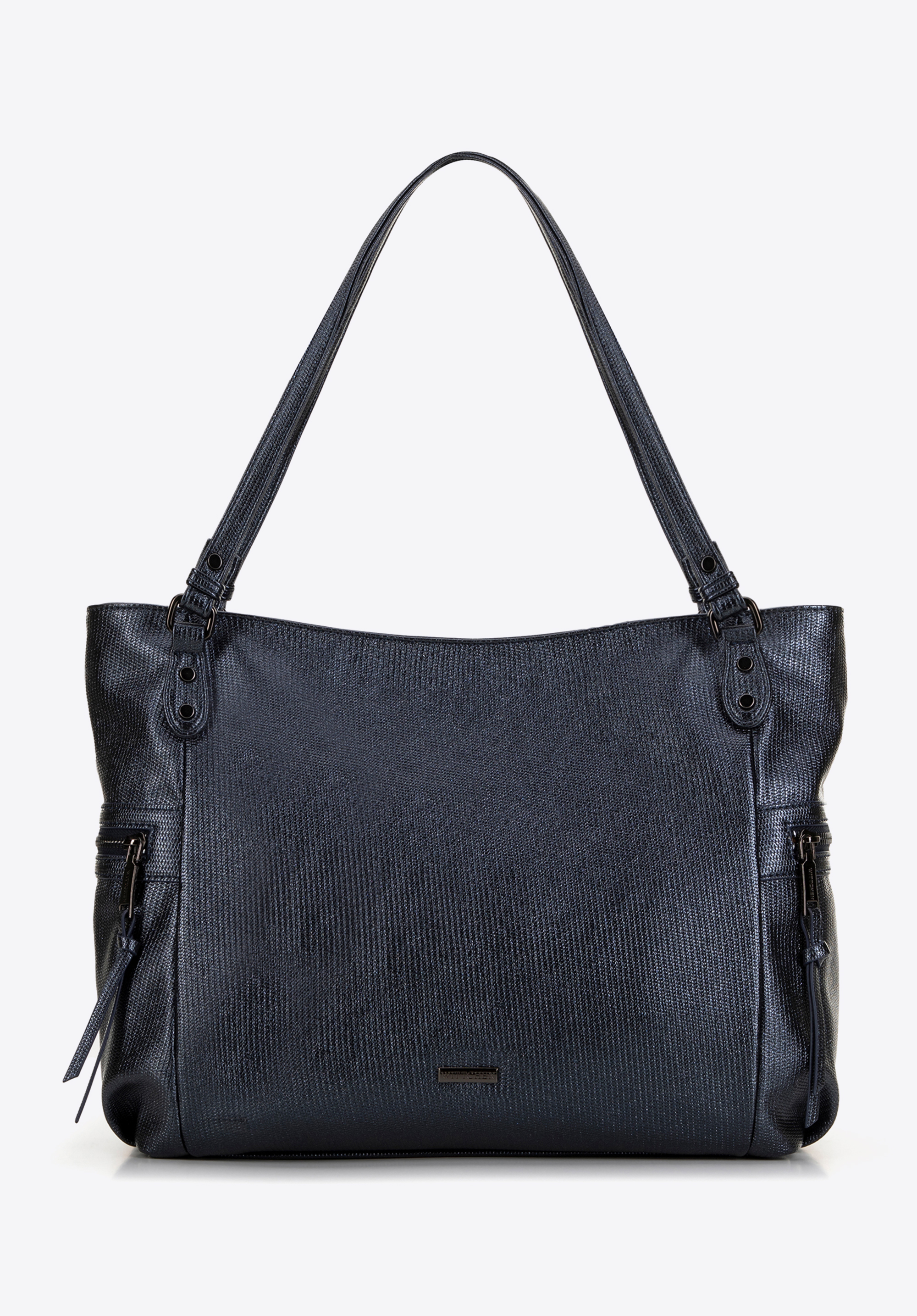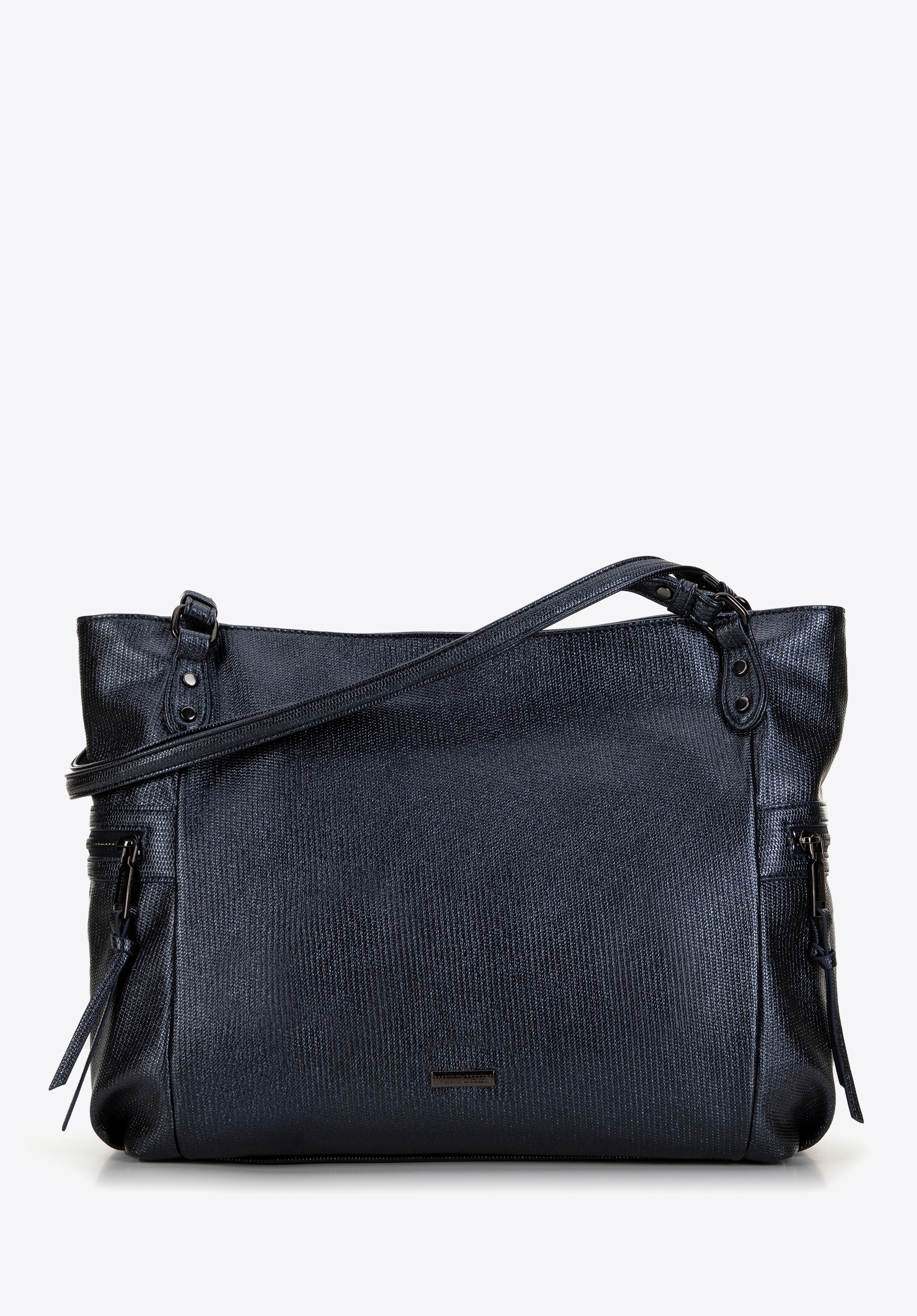 Odkryj shopperkę, która odmieni Twoje codzienne stylizacje. Dzięki jednokomorowemu wnętrzu oferuje niebywałą przestronność, pomagając w utrzymaniu porządku i łatwym dostępie do wszystkich niezbędnych przedmiotów. Ten model wyposażony jest w poziome boczne kieszenie, doskonałe na drobne rzeczy, które chcesz mieć pod ręką, a połyskująca ekoskóra nadaje jej elegancki i nowoczesny wygląd. Usztywniane dno gwarantuje torebce stabilność i nienaganny wygląd, bez względu na to, ile w niej zmieścisz. Subtelne, eleganckie logo producenta dodaje jej prestiżu. Komfort użytkowania zapewnia wygodna rączka, pozwalająca na noszenie shopperki zarówno na ramieniu, jak i w dłoni.