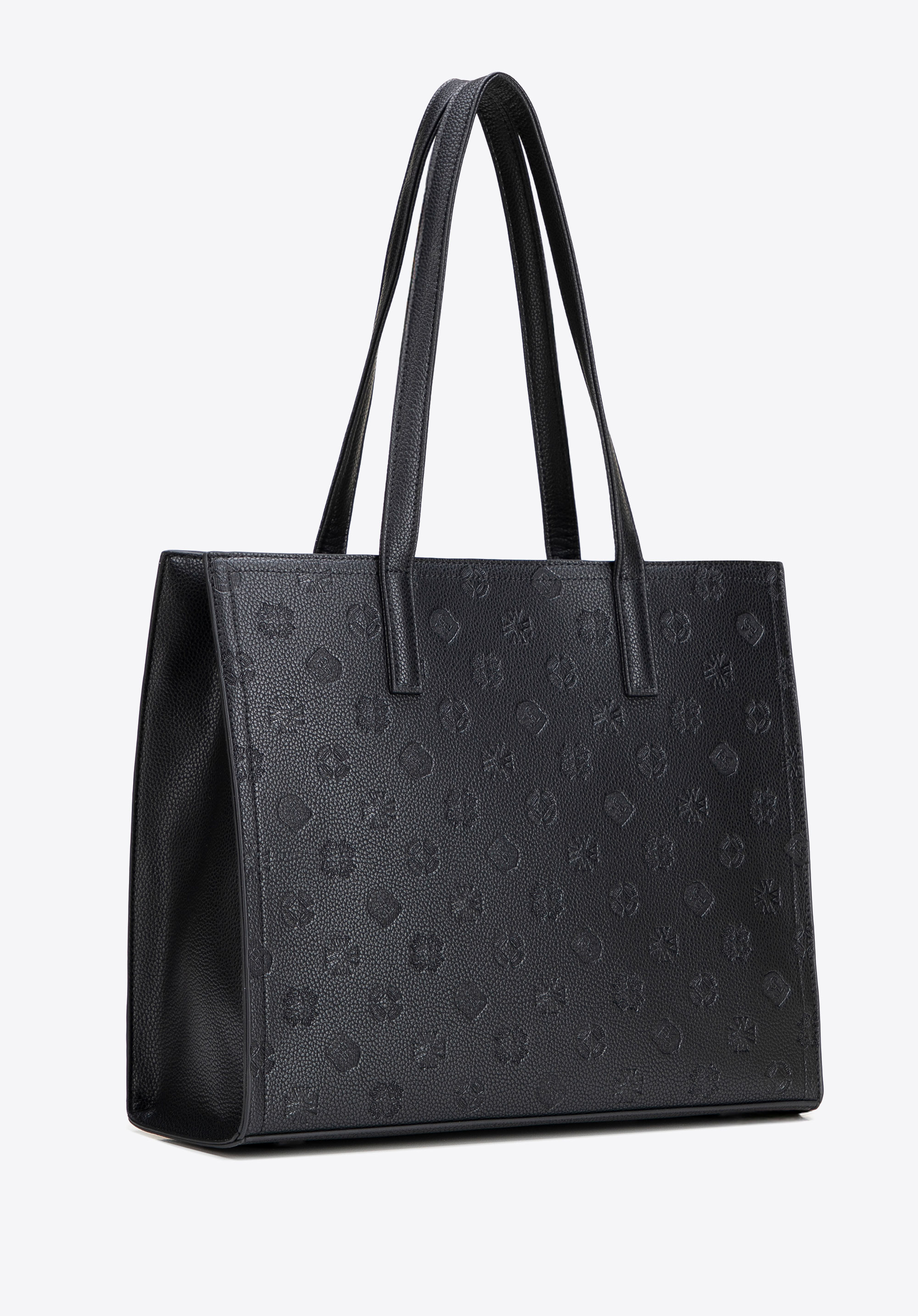 Damska shopperka z ekoskóry z tłoczoną sygnaturą sprawdzi się u kobiet, które potrzebują pojemnej torebki do pracy i codziennych zadań, ale chcą zachować elegancki styl. Trzy komory ułatwiają organizację, a tłoczona sygnatura i usztywnione dno pomagają utrzymać dopracowany wygląd przez cały dzień.