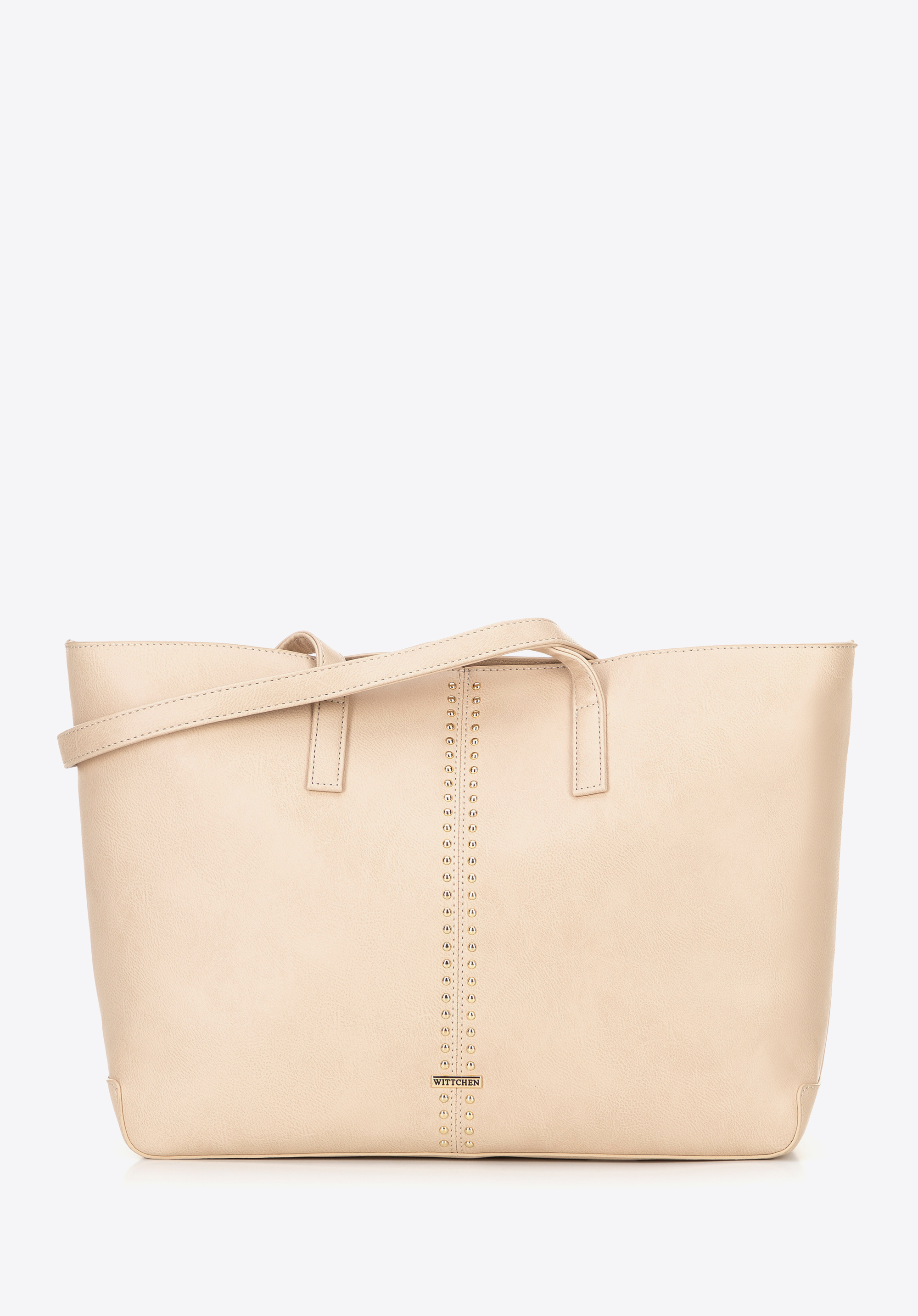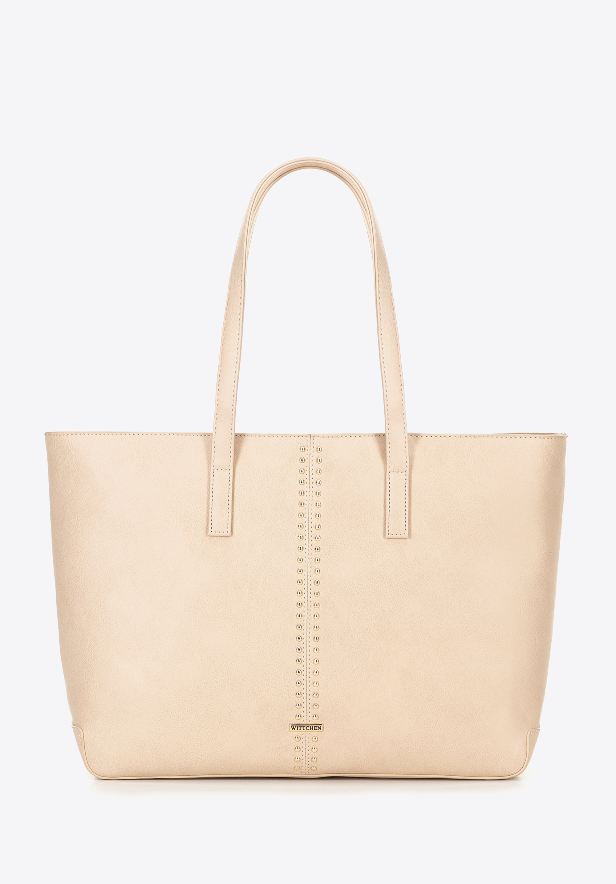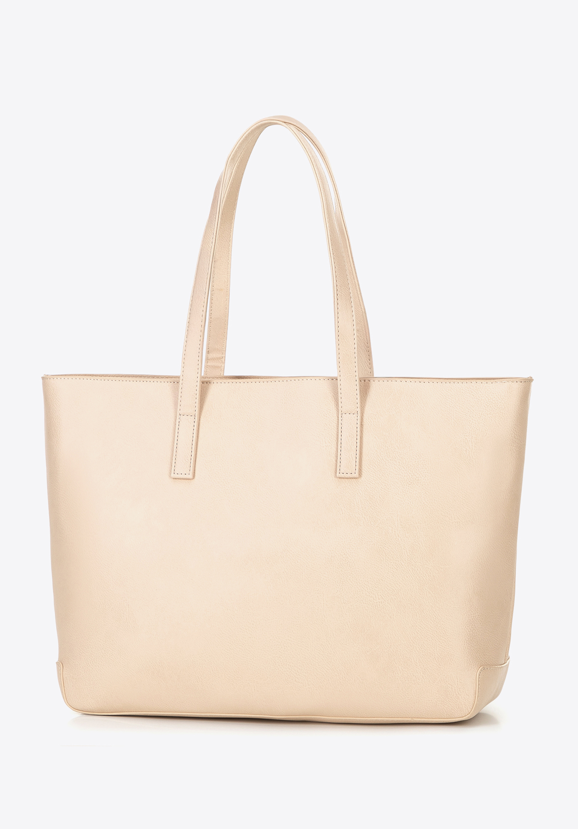 Elegancka shopperka wykonana ze skóry ekologicznej to idealne połączenie stylu i praktyczności. Zapinana na zamek, zapewnia bezpieczeństwo Twoich rzeczy, a pojemne wnętrze bez trudu pomieści format A4, dzięki czemu świetnie sprawdzi się zarówno na co dzień, jak i do pracy. W środku znajdziesz trzy kieszenie, w tym jedną na zamek – idealną na klucze czy telefon. Dwie wygodne rączki ułatwiają noszenie na ramieniu, a subtelne logo producenta na przodzie oraz dekoracyjne nity nadają jej wyrazistego charakteru.
