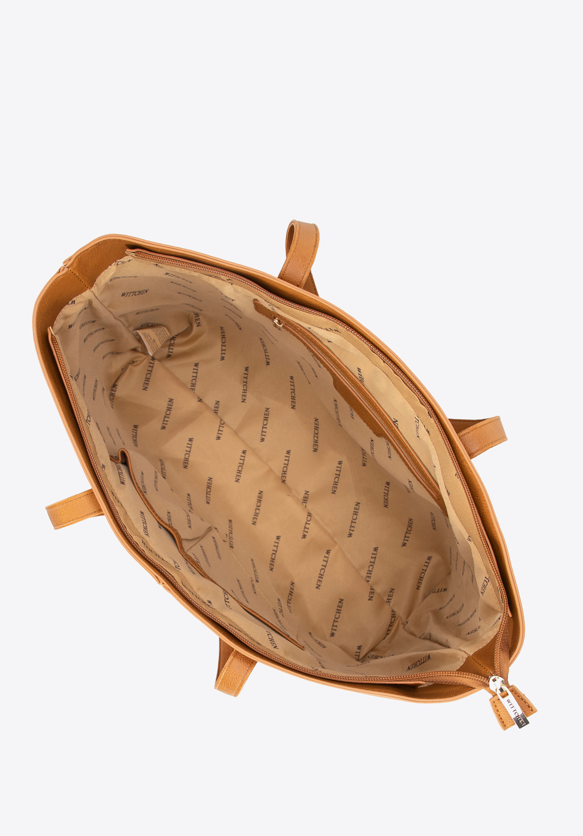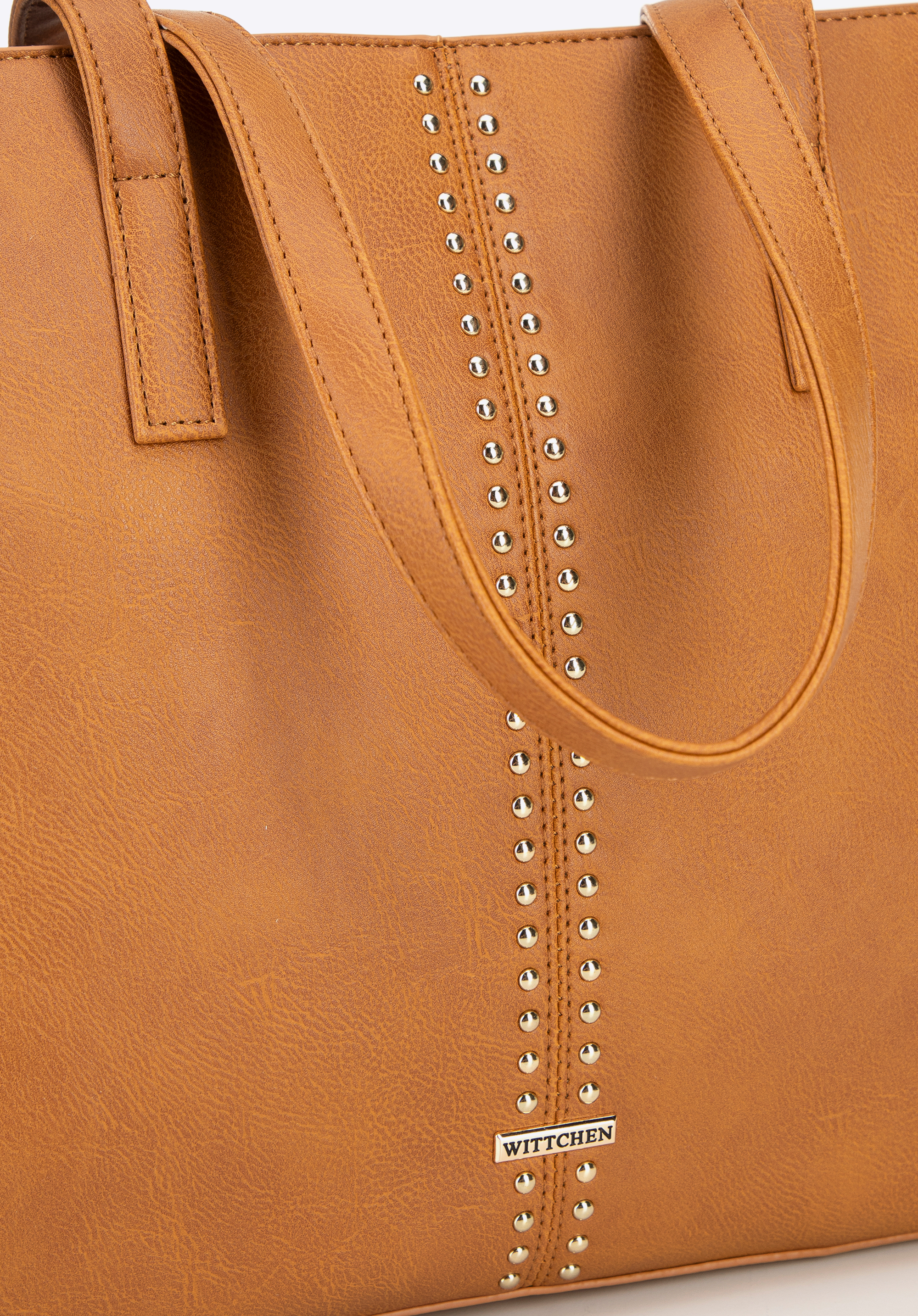 Damska shopperka z imitacji skóry w nity brązowa