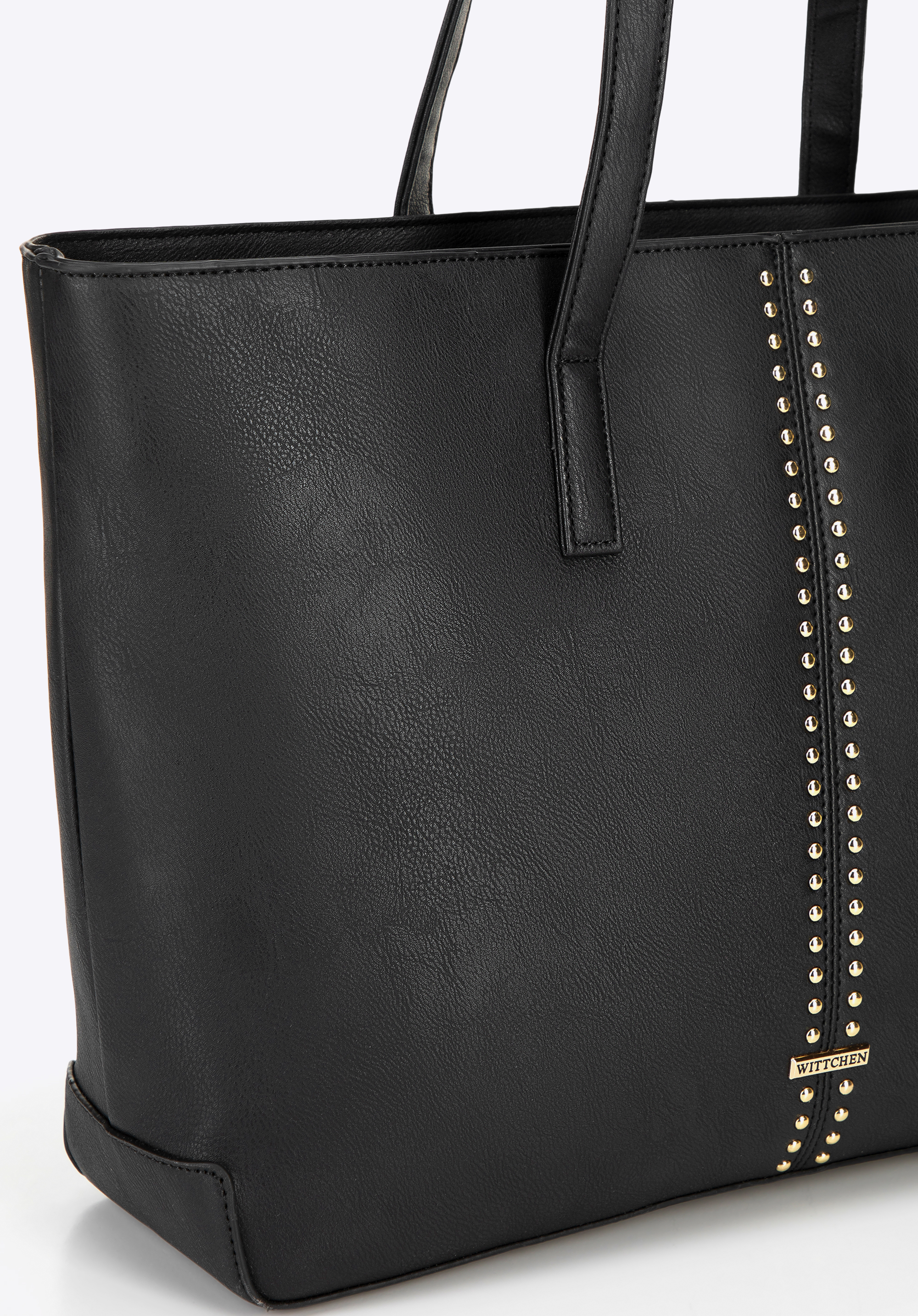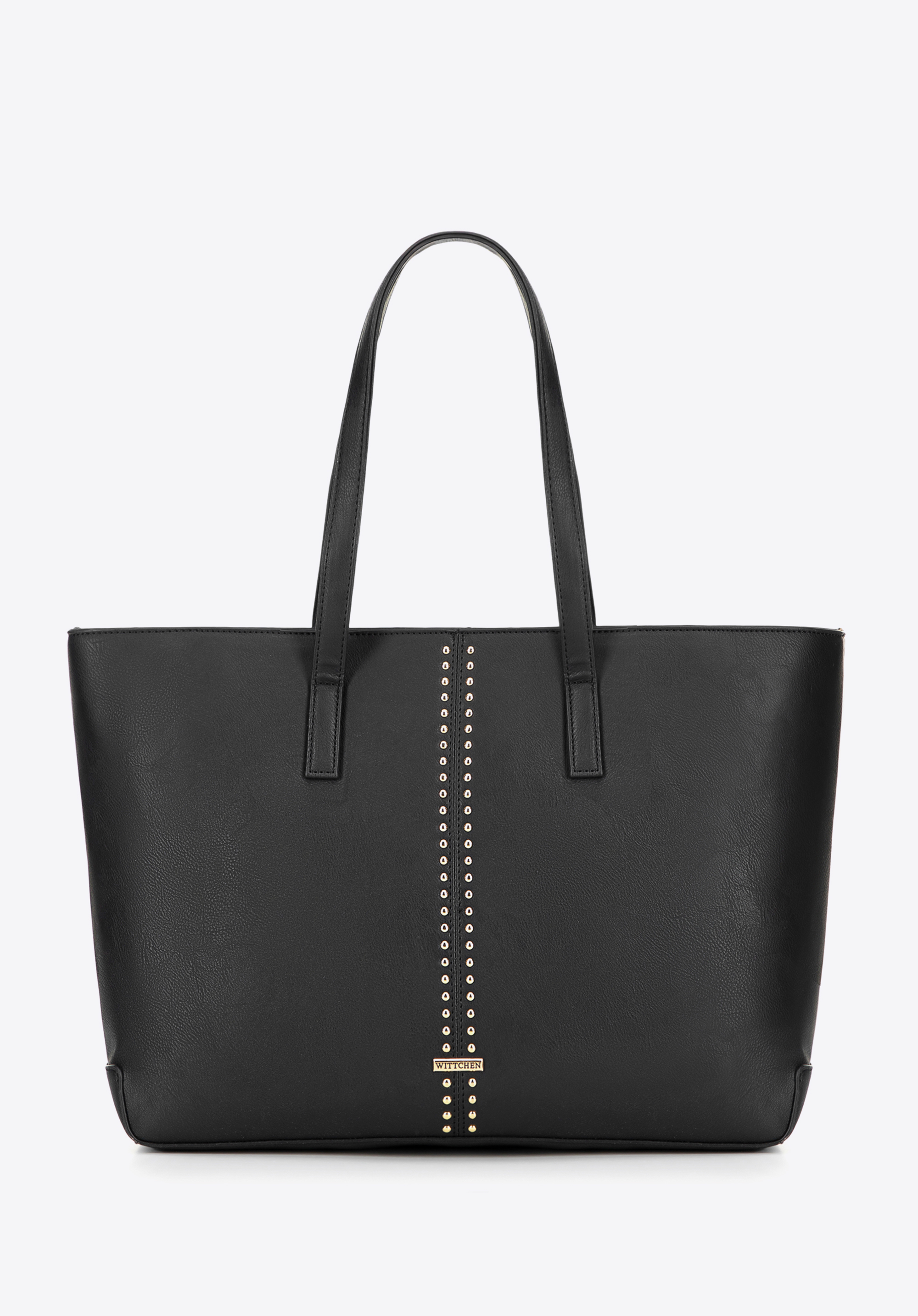 Elegancka shopperka wykonana ze skóry ekologicznej to idealne połączenie stylu i praktyczności. Zapinana na zamek, zapewnia bezpieczeństwo Twoich rzeczy, a pojemne wnętrze bez trudu pomieści format A4, dzięki czemu świetnie sprawdzi się zarówno na co dzień, jak i do pracy. W środku znajdziesz trzy kieszenie, w tym jedną na zamek – idealną na klucze czy telefon. Dwie wygodne rączki ułatwiają noszenie na ramieniu, a subtelne logo producenta na przodzie oraz dekoracyjne nity nadają jej wyrazistego charakteru.