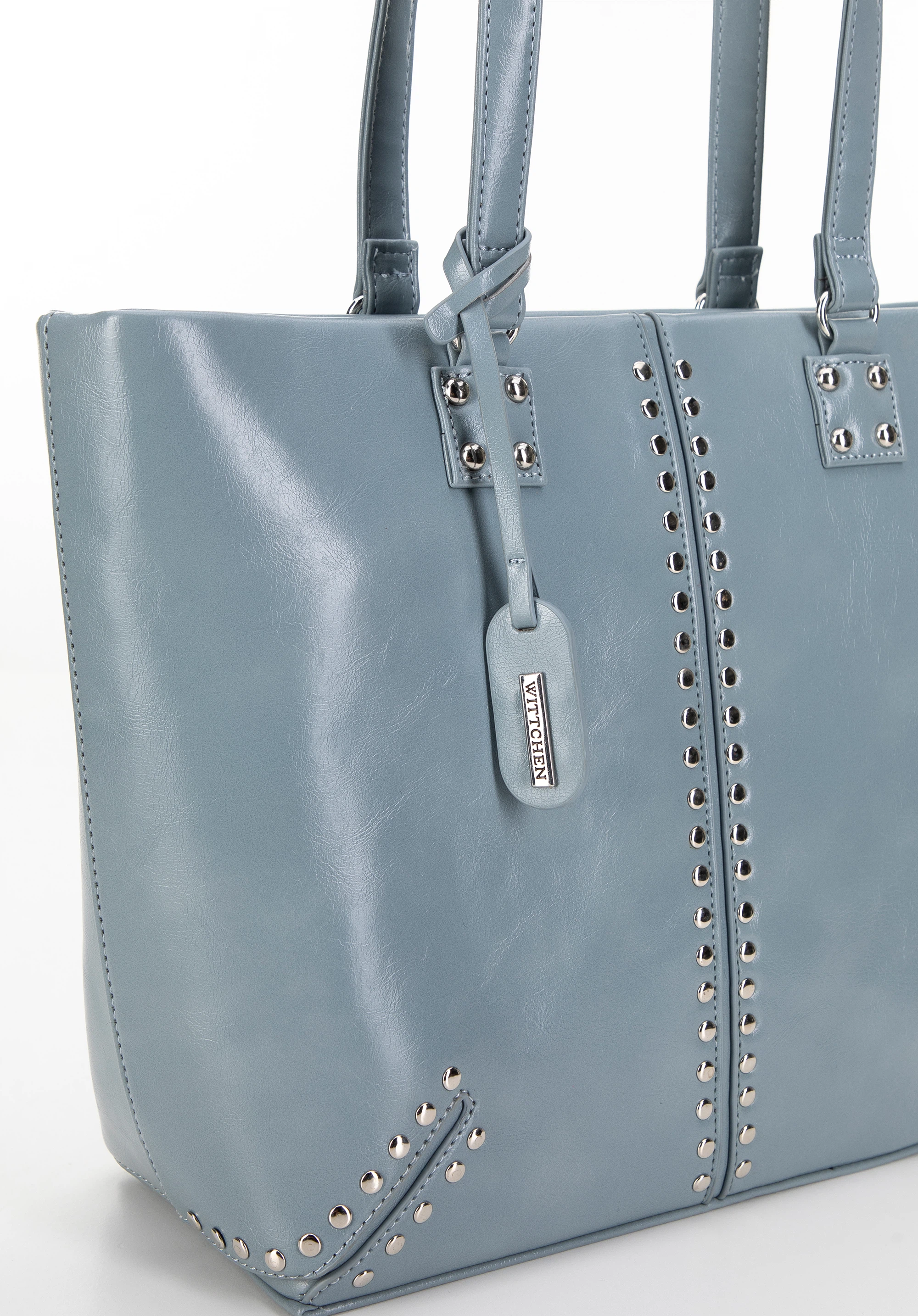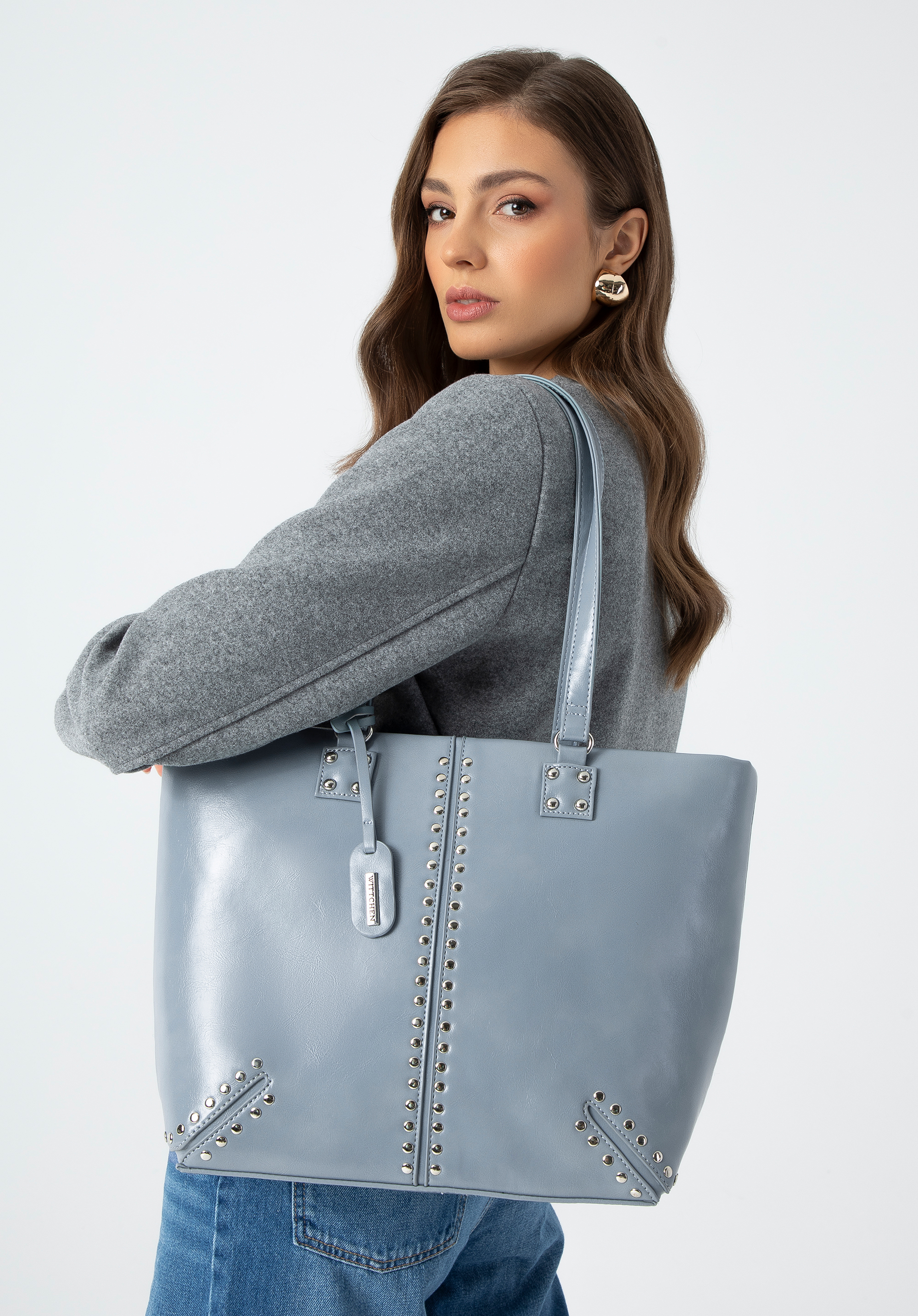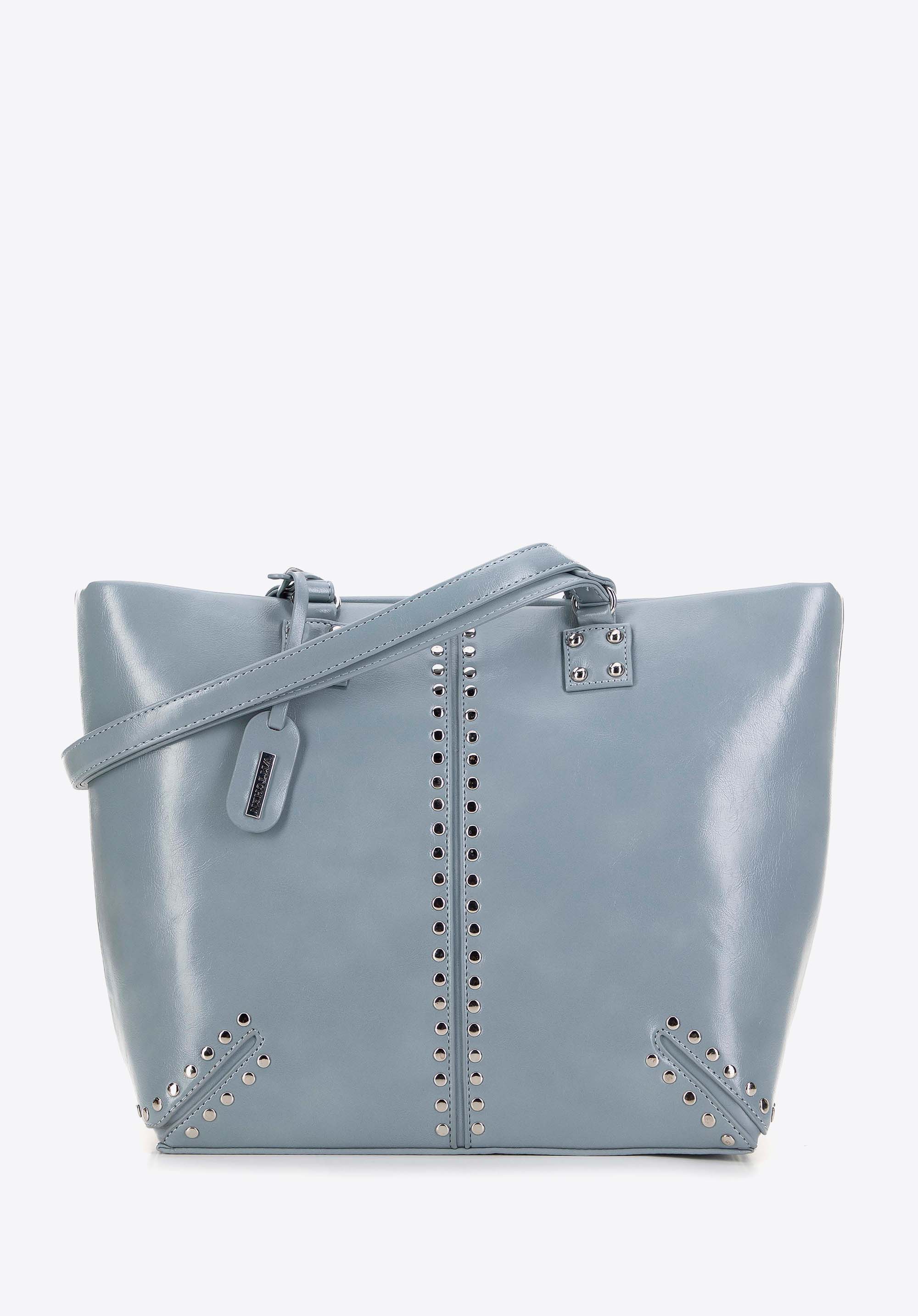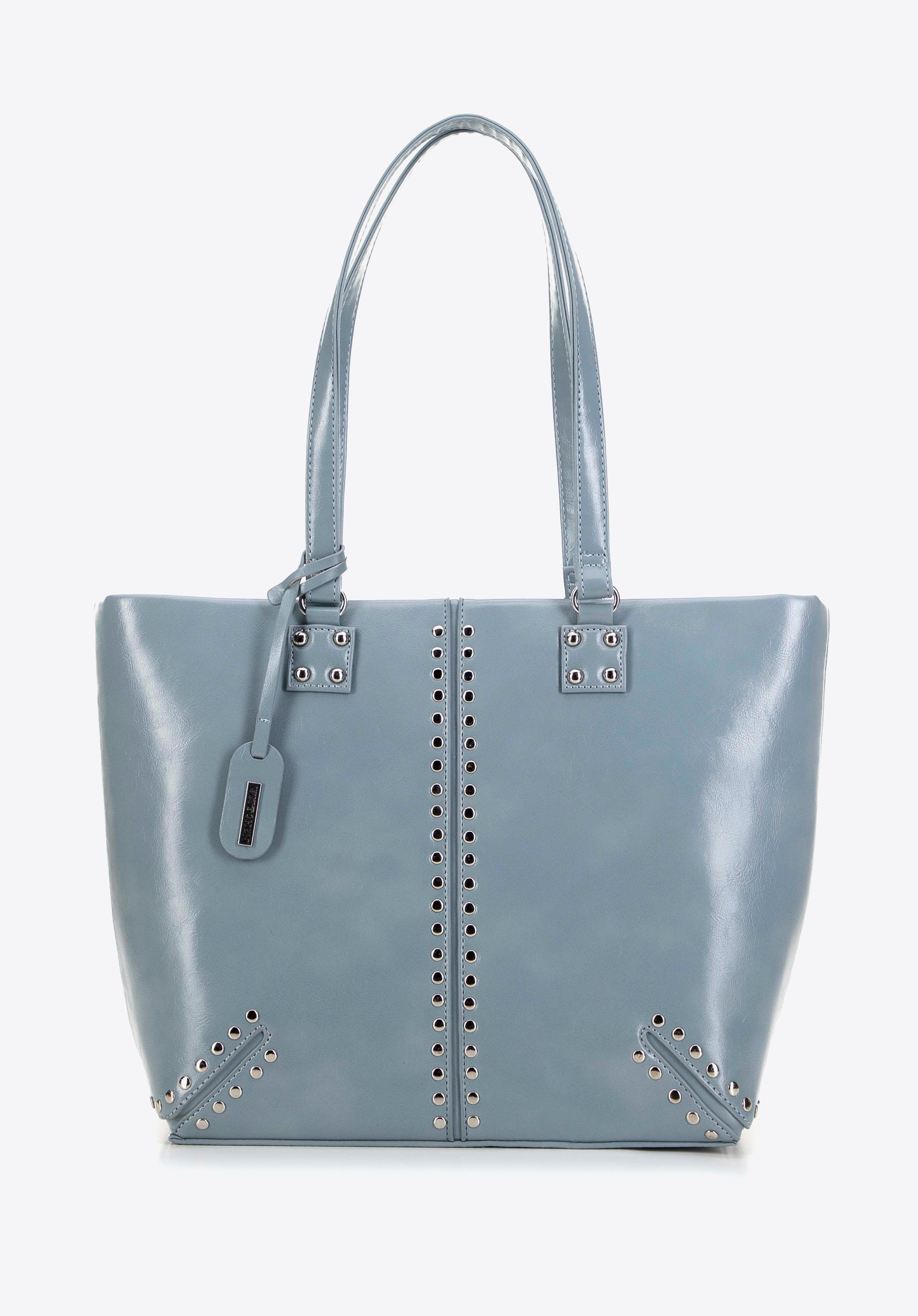 Ta damska torebka na ramię typu shopper jest nie tylko stylowa, ale i funkcjonalna. Wykonana z ekoskóry, została zaprojektowana z myślą o komforcie i praktyczności. Posiada dwie solidne rączki, co sprawia, że noszenie jej jest wyjątkowo wygodne. Dodatkowo wyposażona jest w odpinany chwost z logo oraz ozdobne nity, które dodają elegancji.