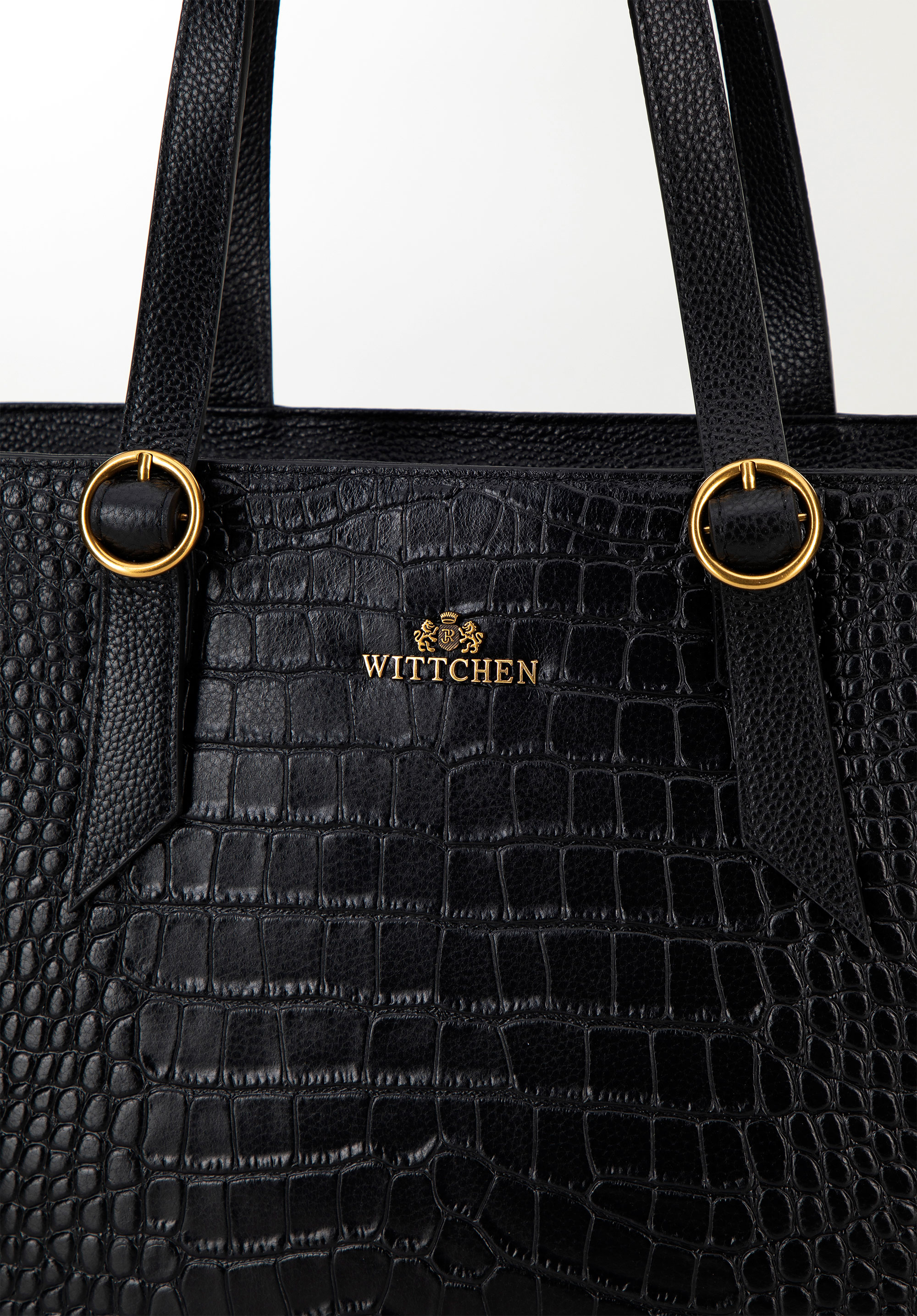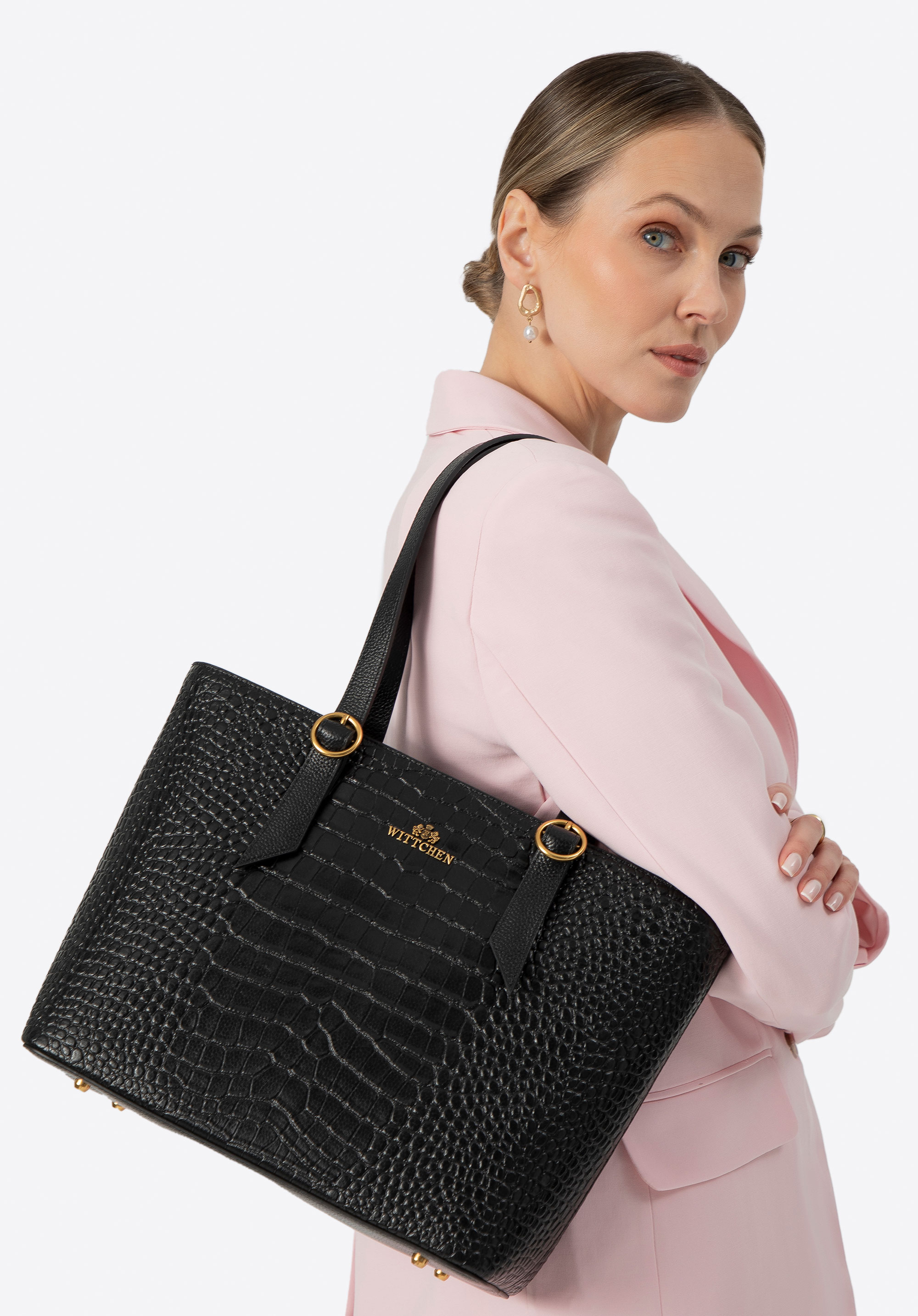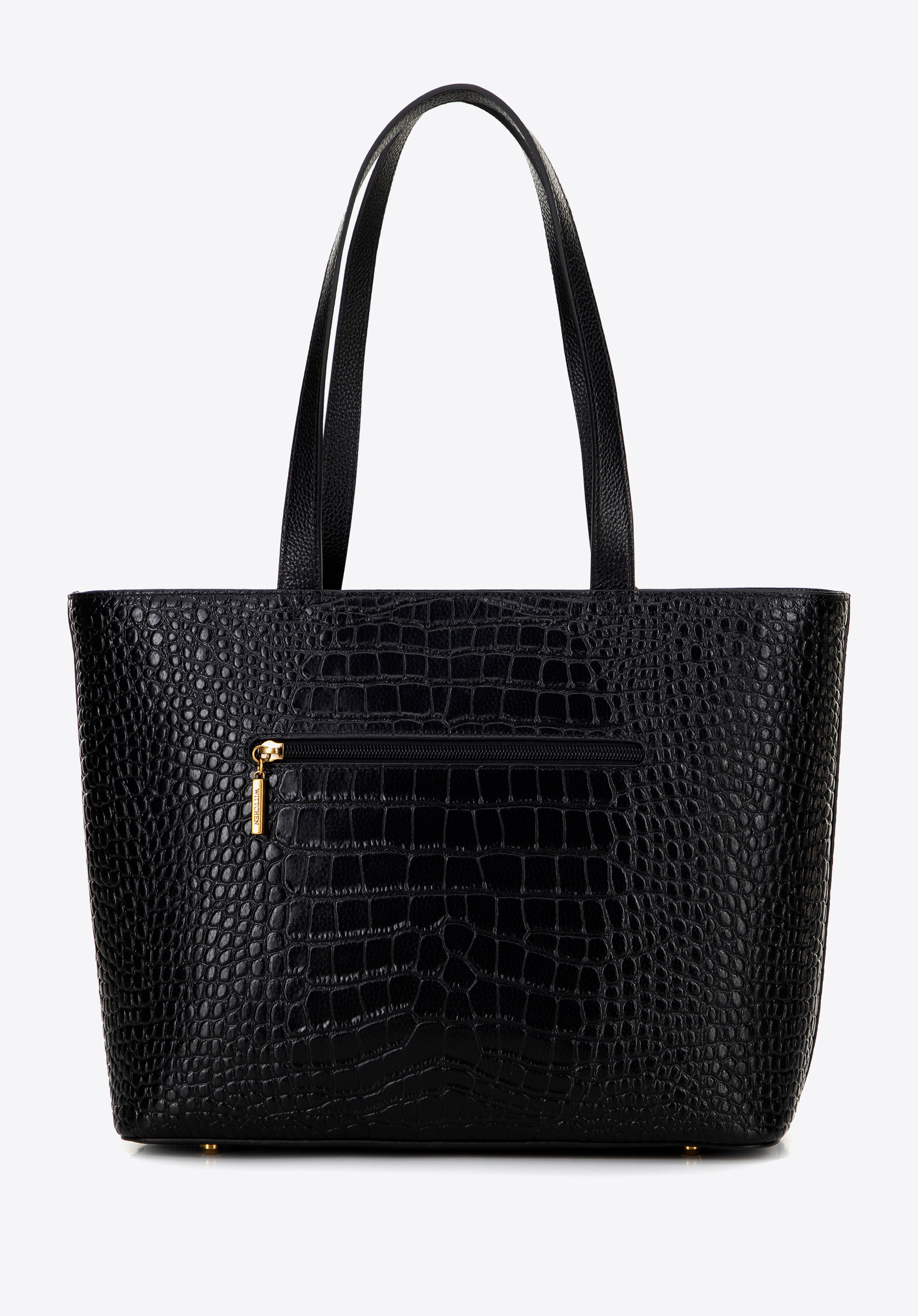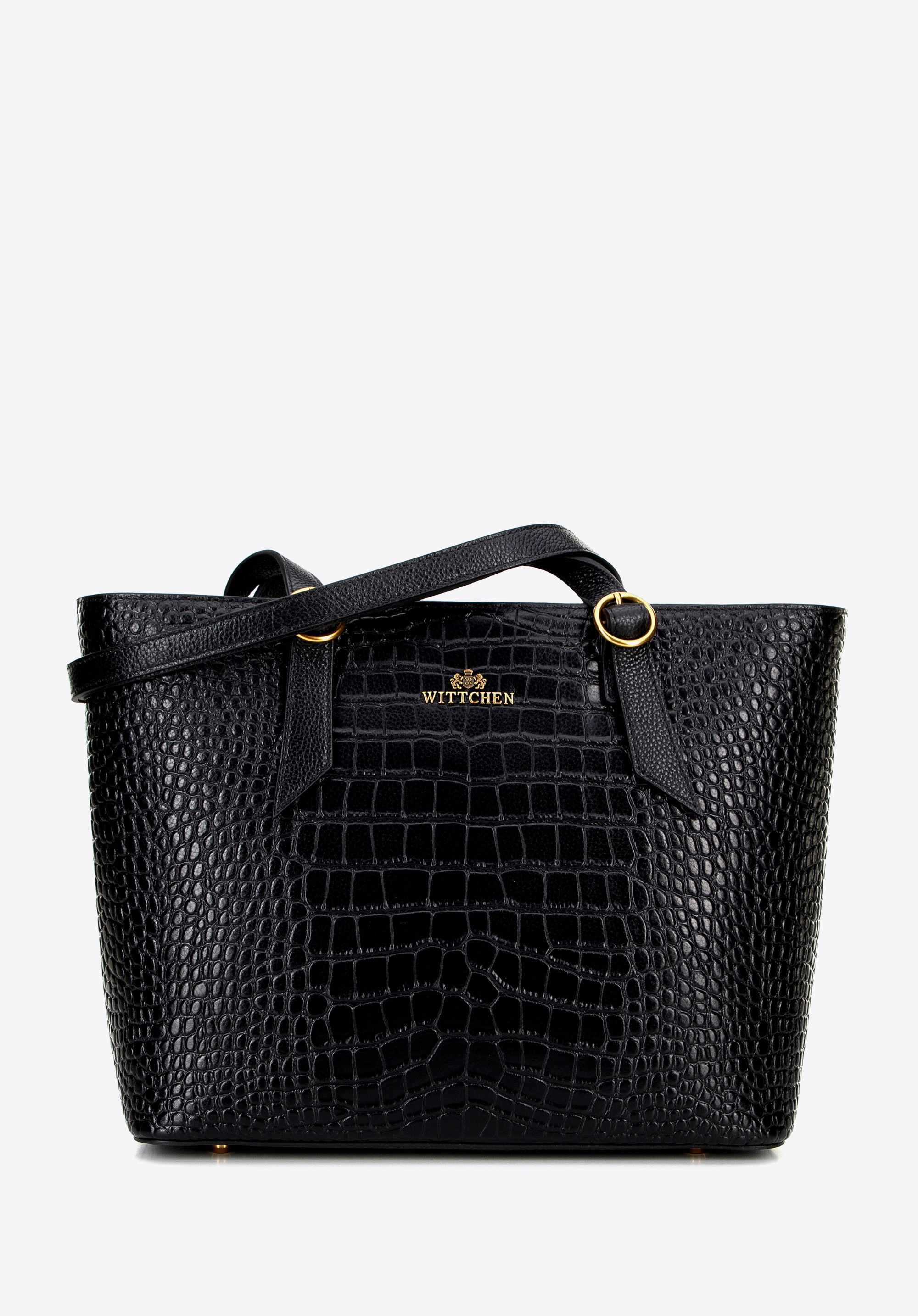 Damska shopperka ze skóry croco czarna ze złotym logo