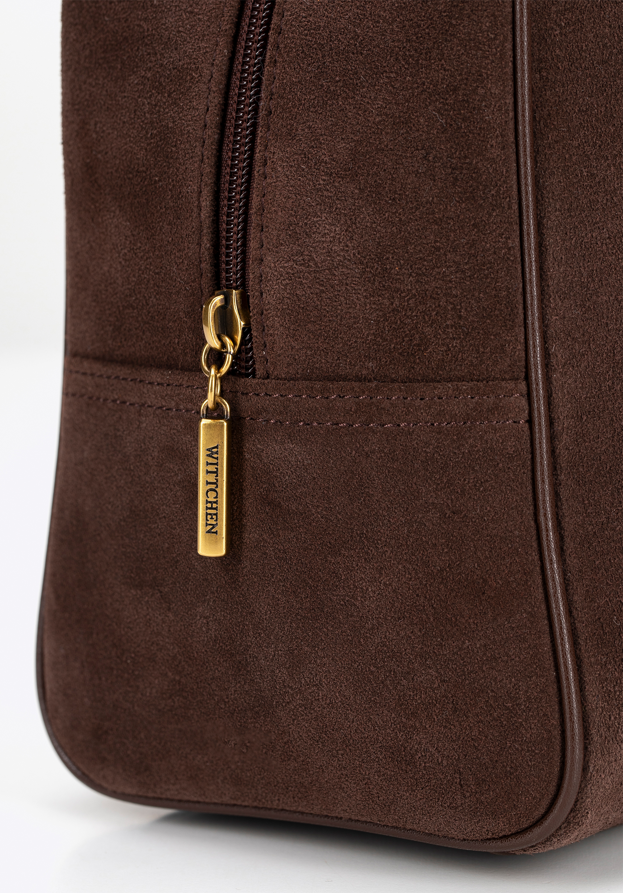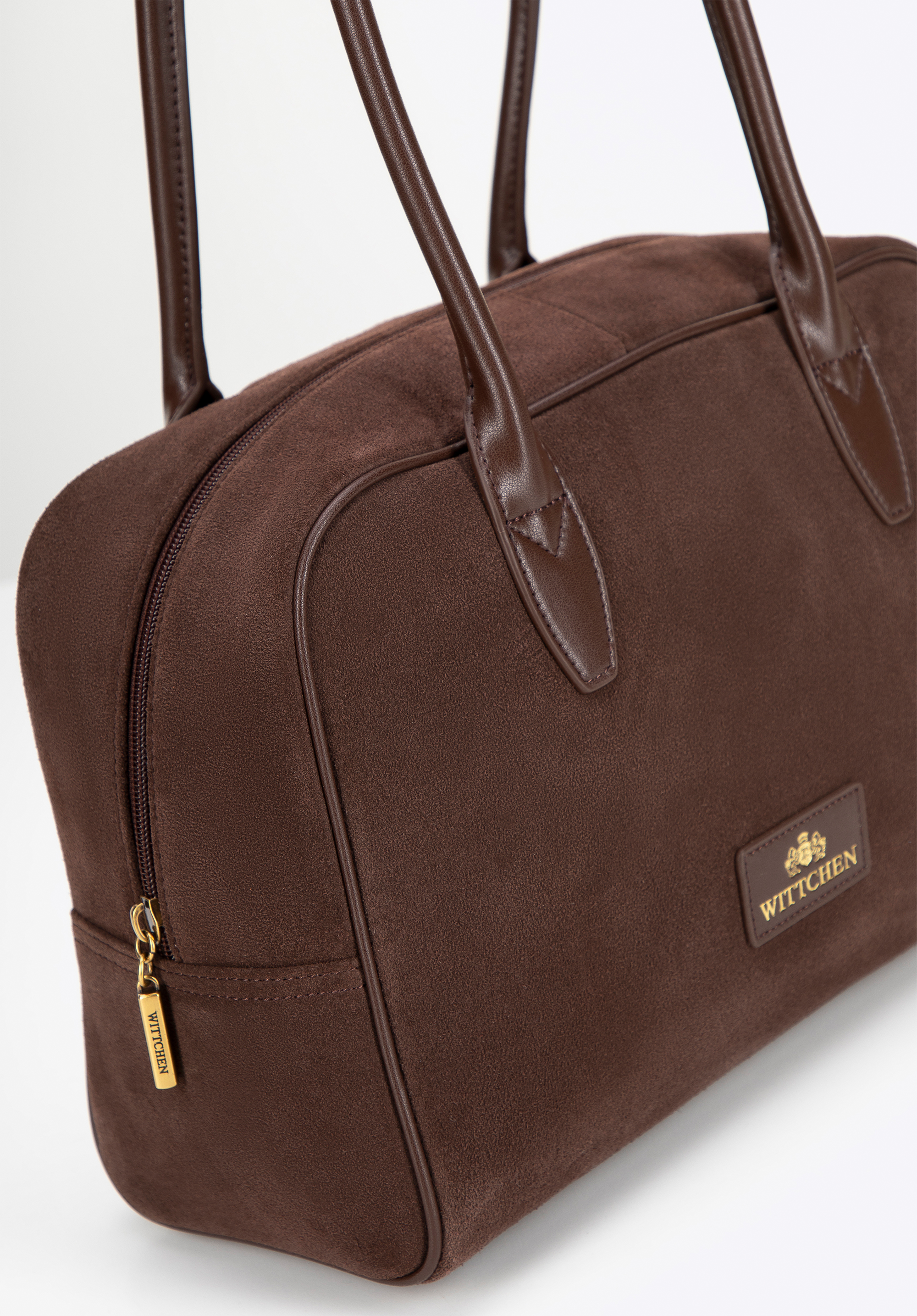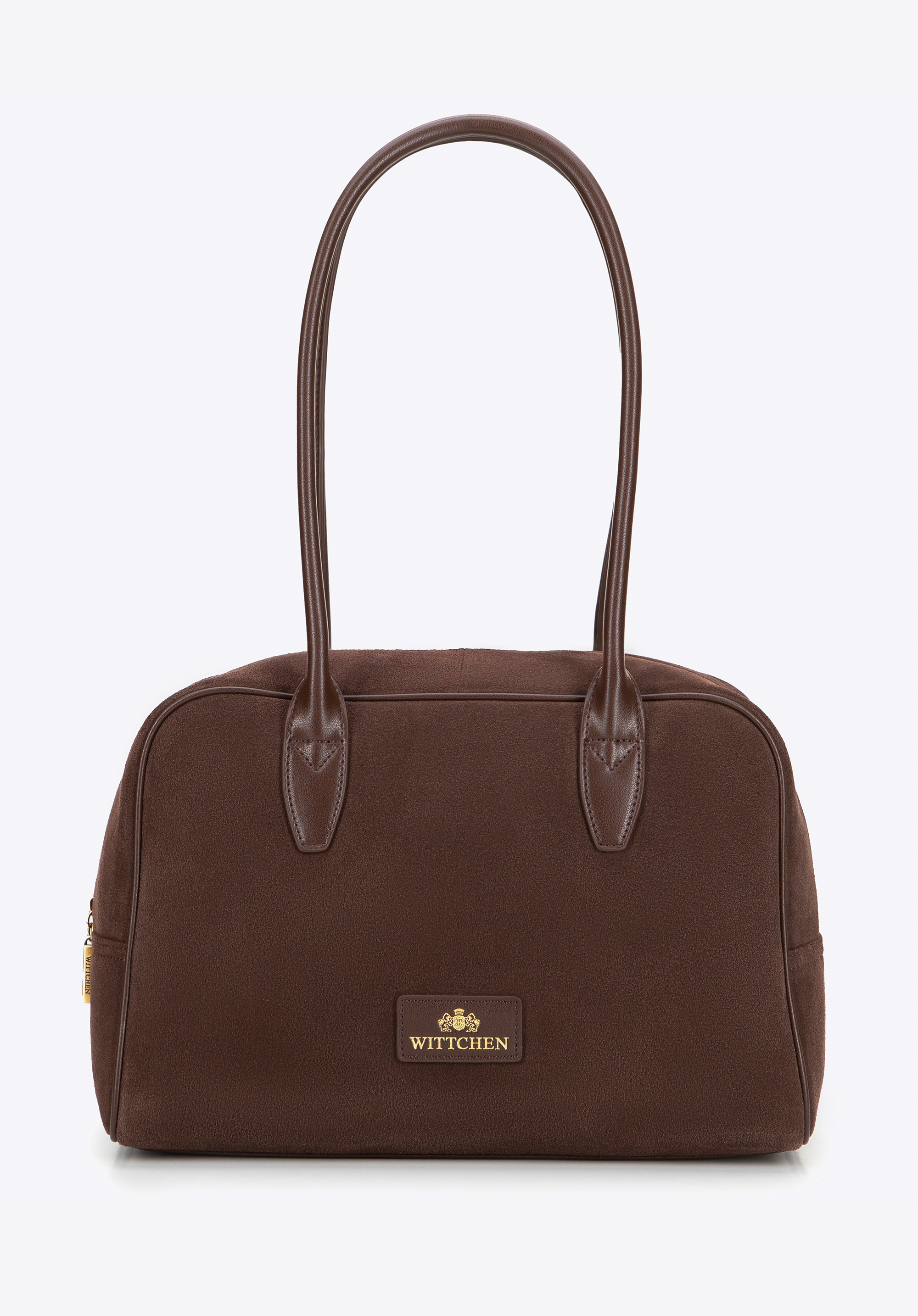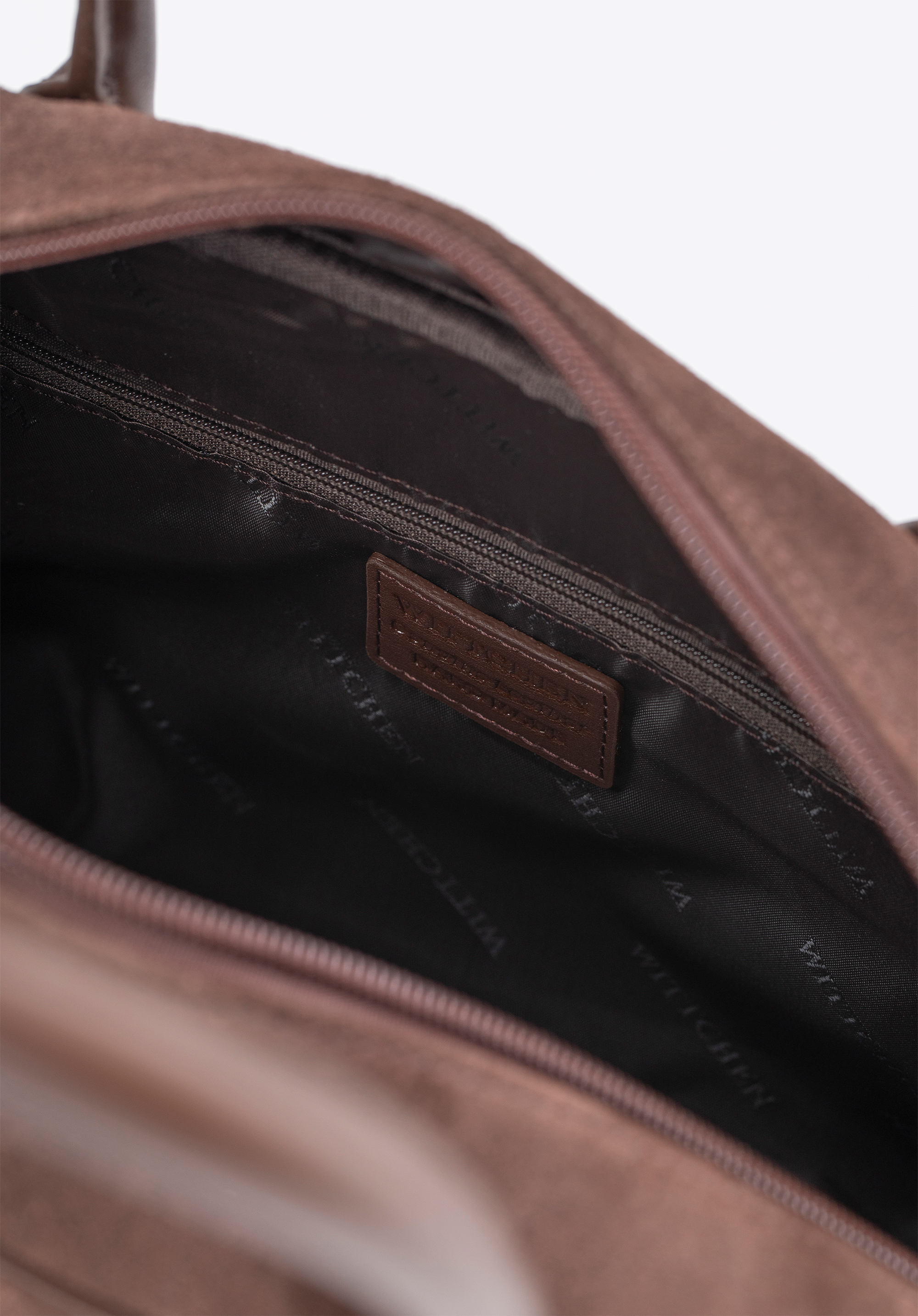 - Materiał: Skóra naturalna w dwóch fakturach – zamszowej na przodzie i gładkiej od strony ciała – uzupełniona solidnymi rączkami i detali wewnętrznymi z imitacji skóry łączy elegancję z komfortem codziennego noszenia.