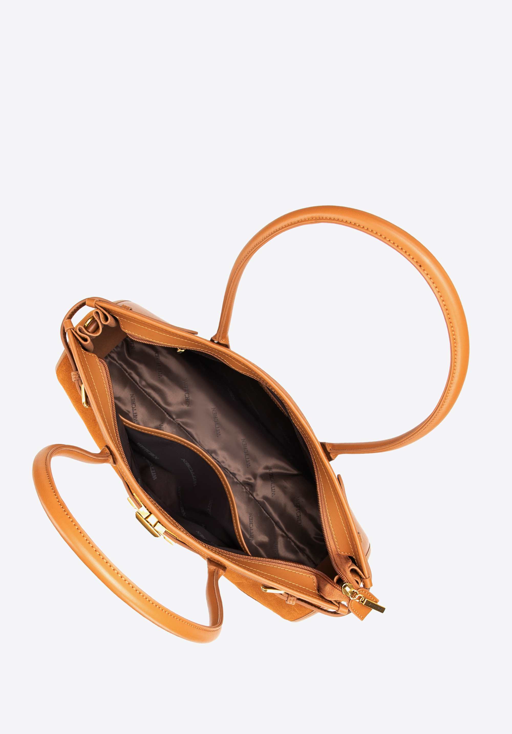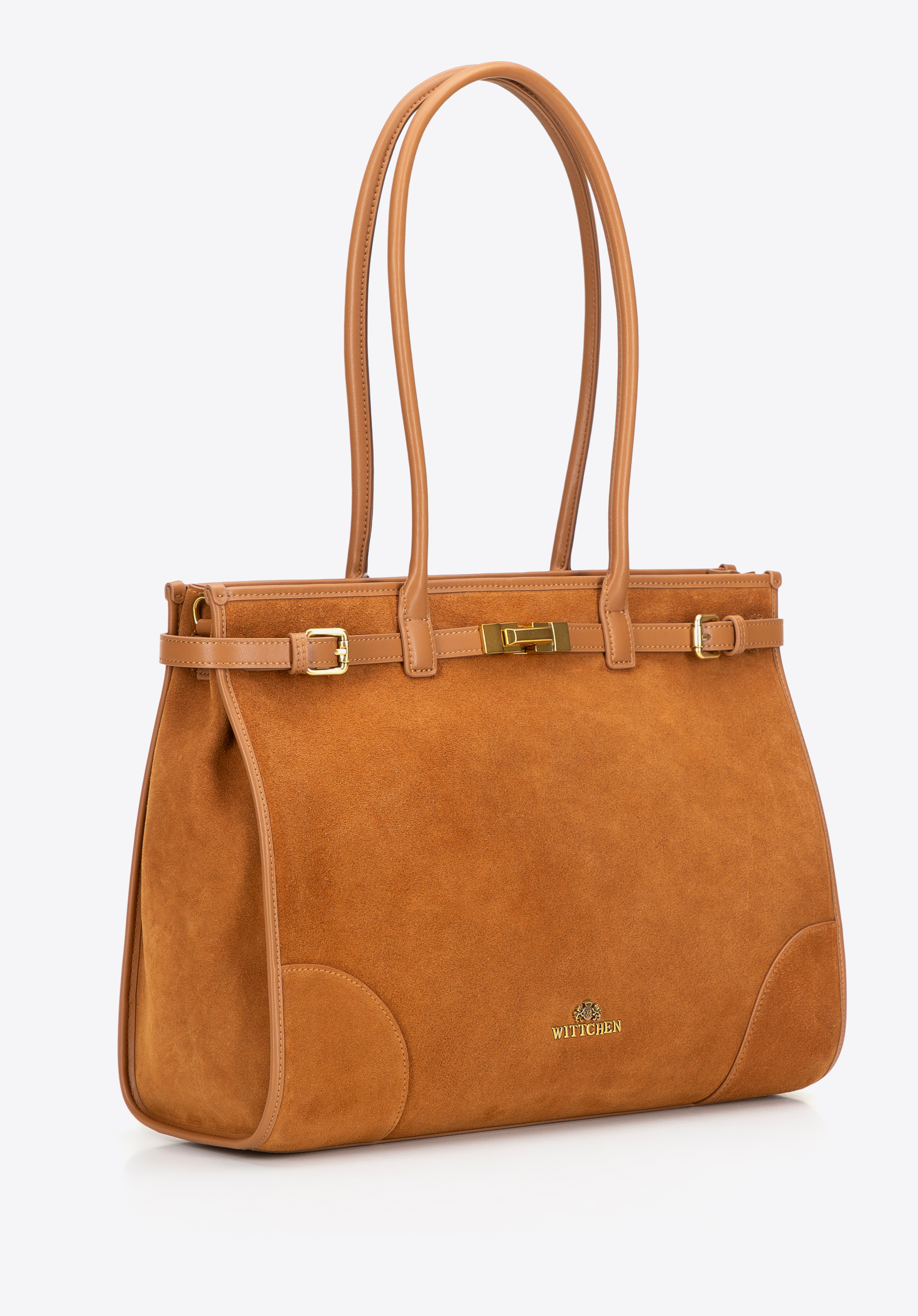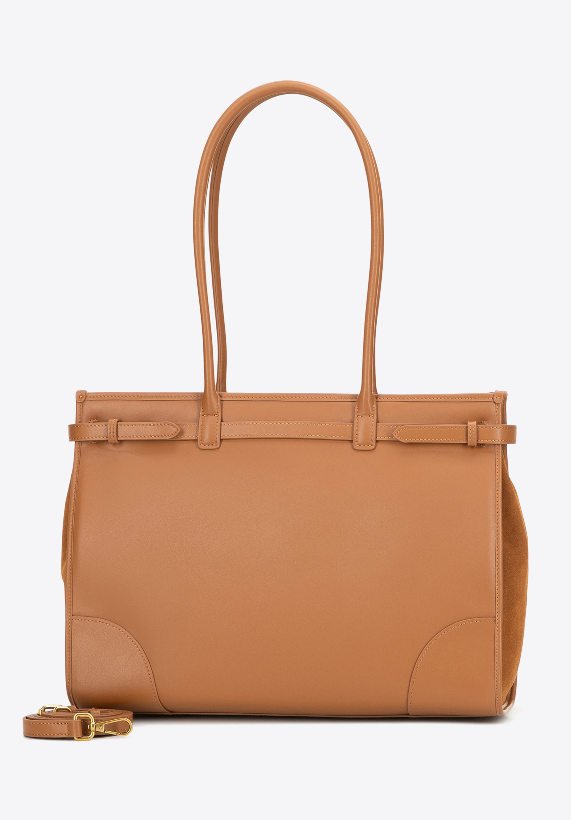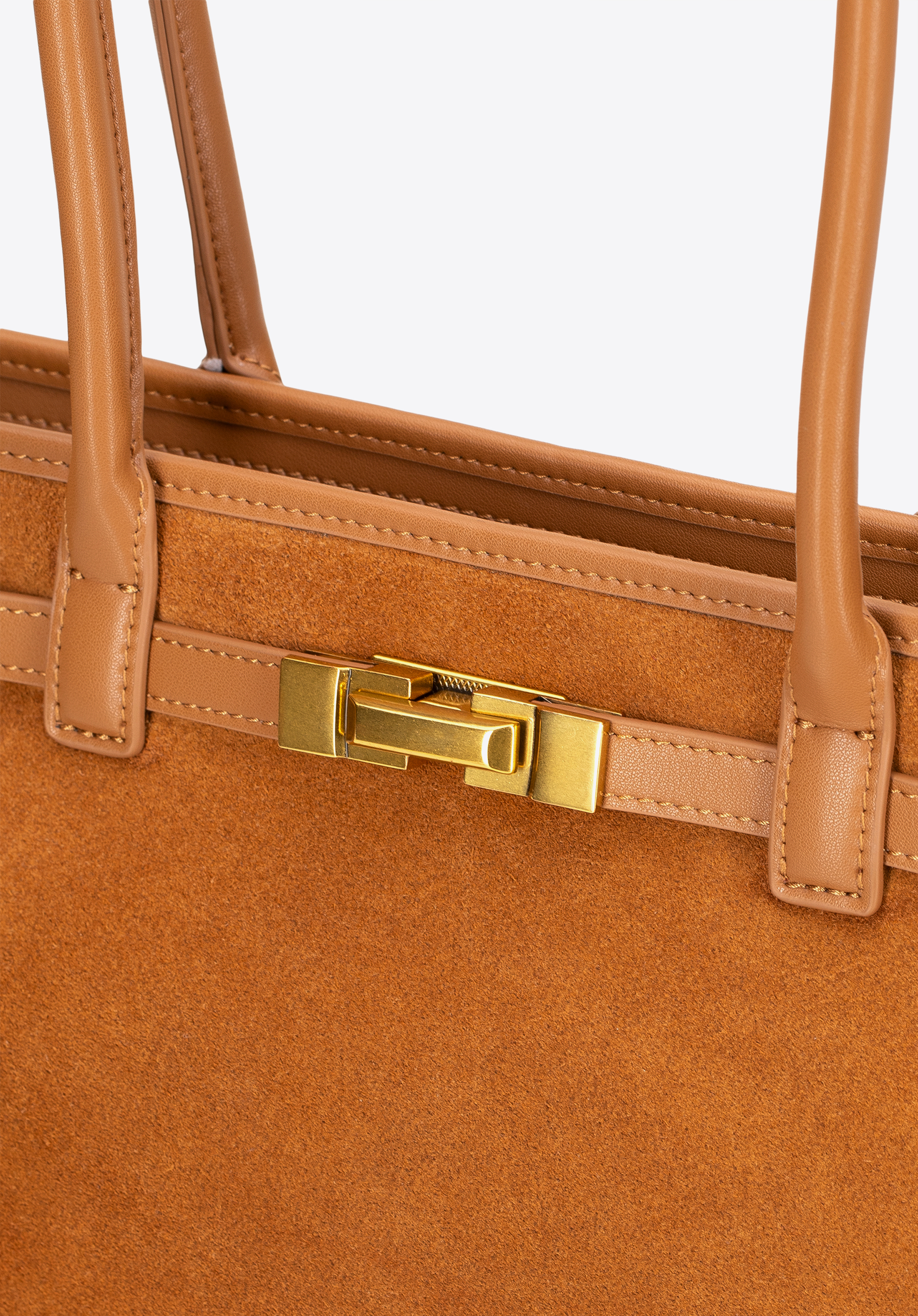 - Materiał: Przód shopperki wykonano ze skóry zamszowej dla miękkości i elegancji, a resztę korpusu z gładkiej skóry naturalnej – trwałej i starannie wykończonej. Rączki, paski i wykończenia wnętrza wykonano z imitacji skóry, która zapewnia lekkość i wygodę.