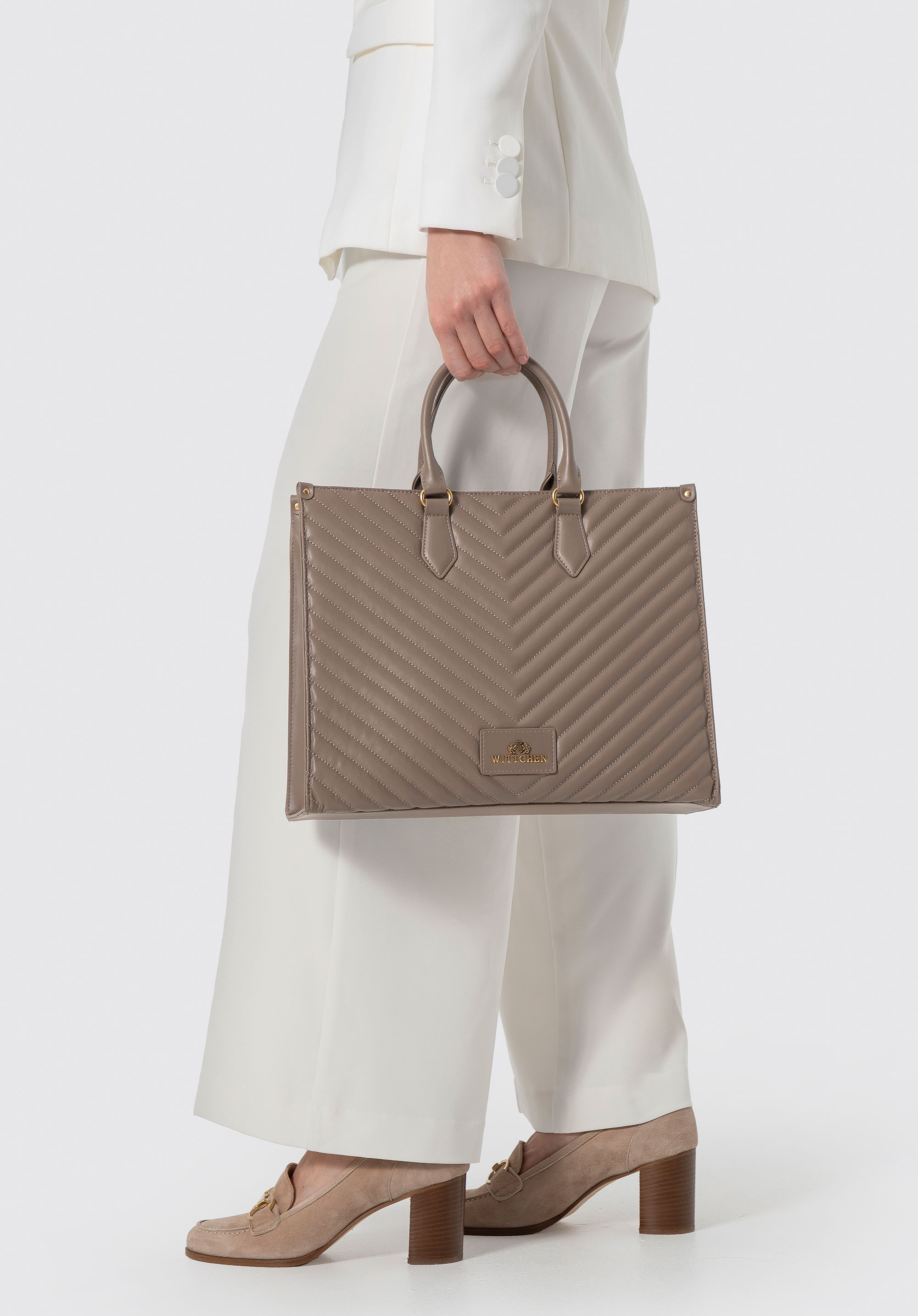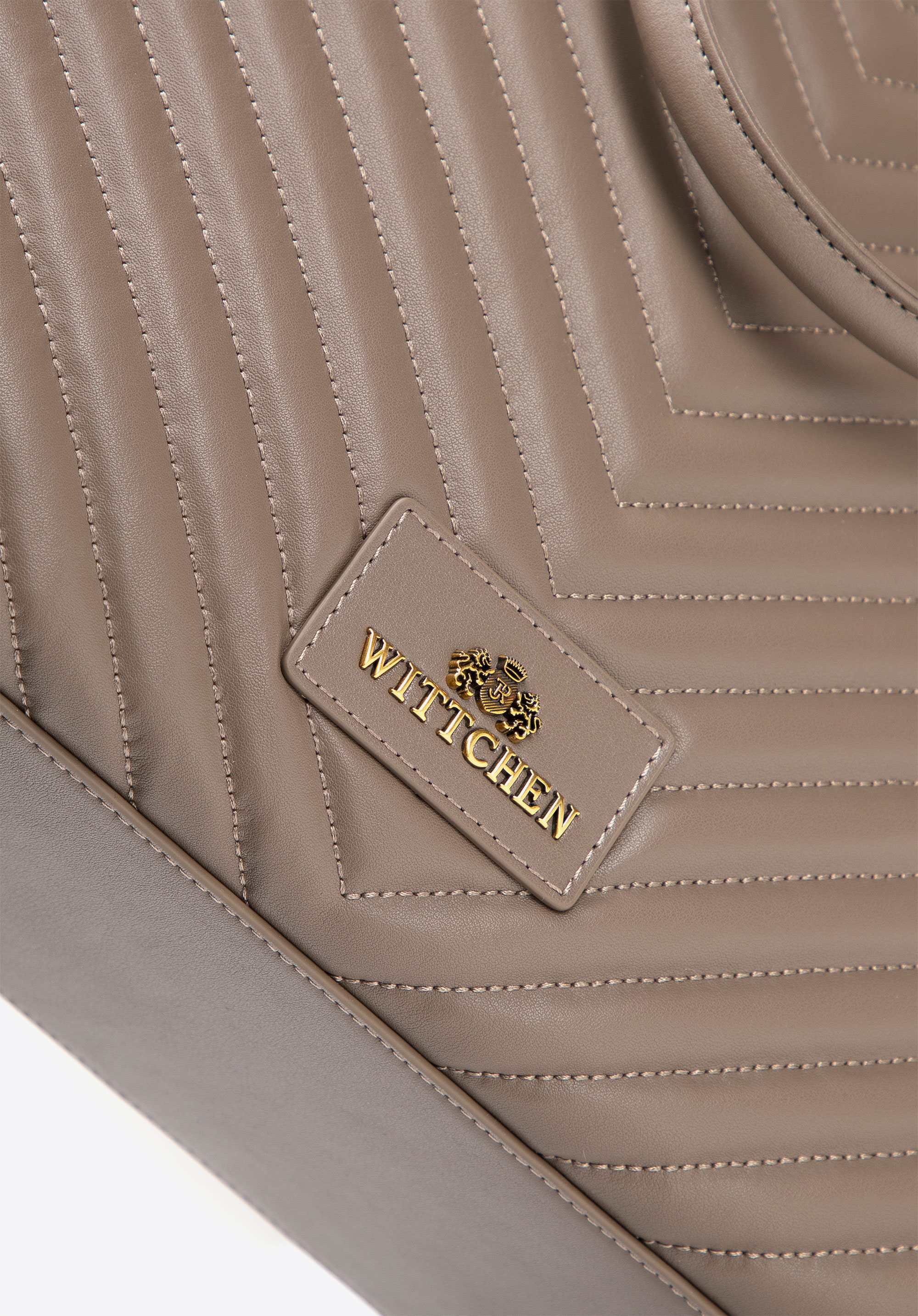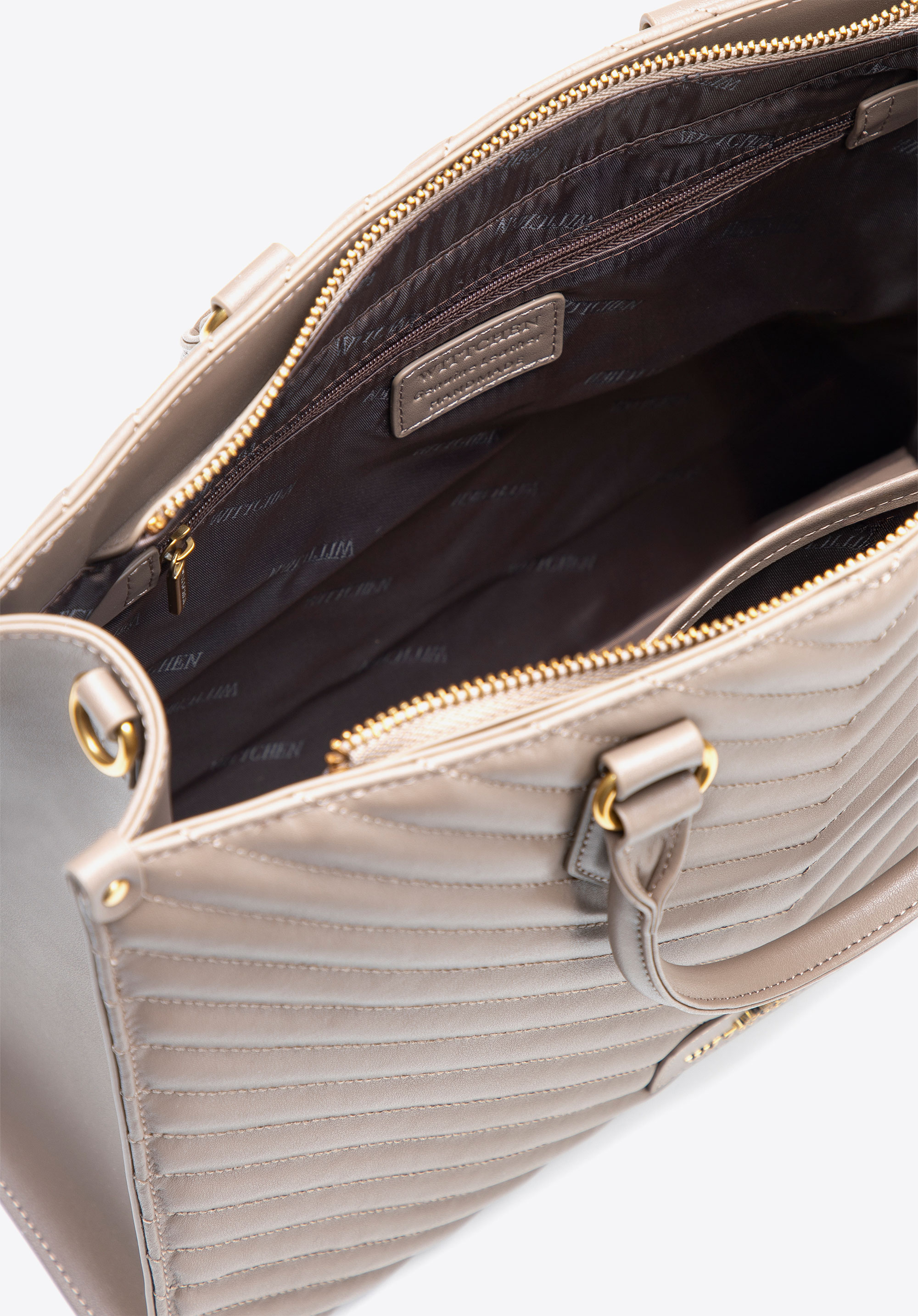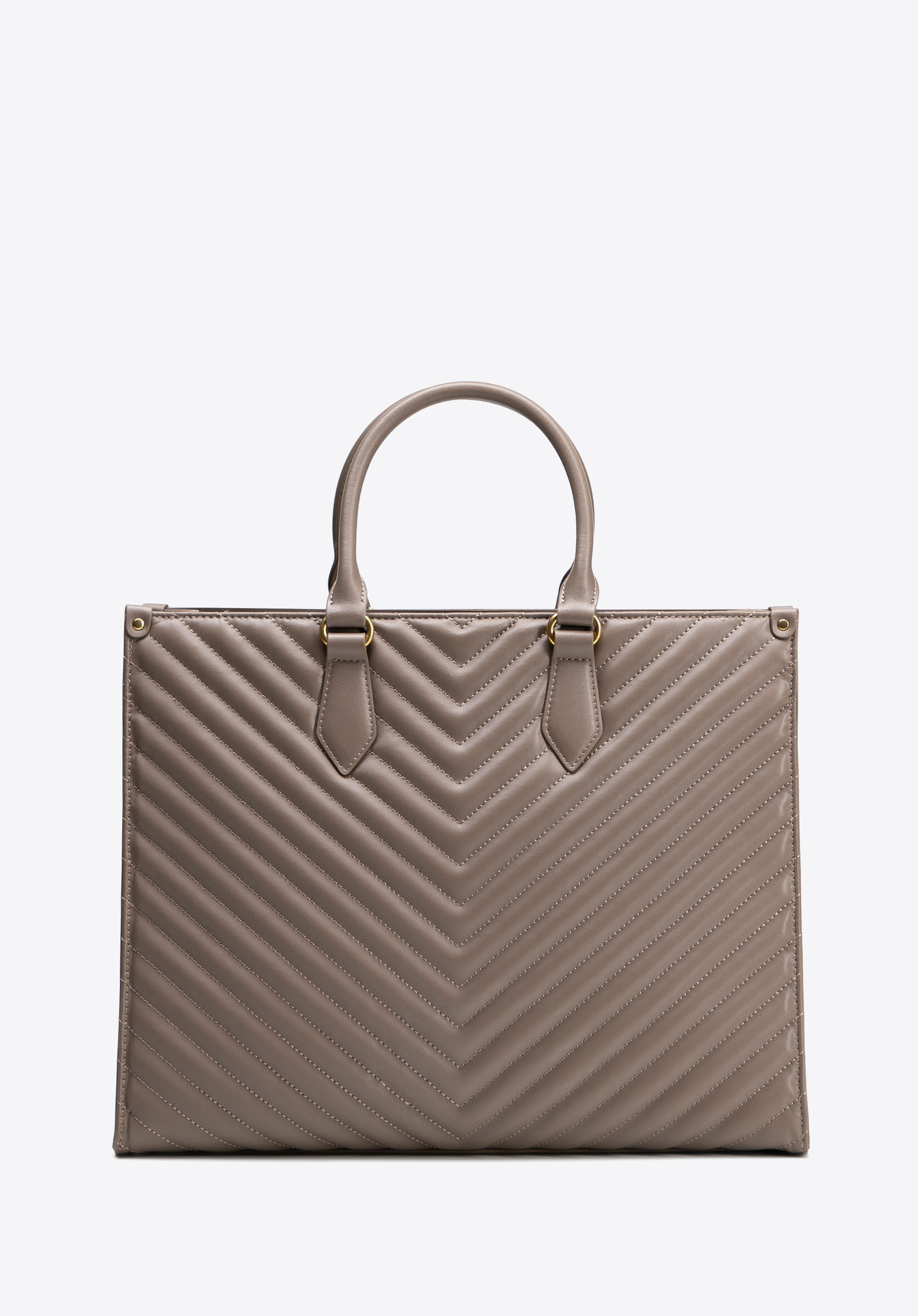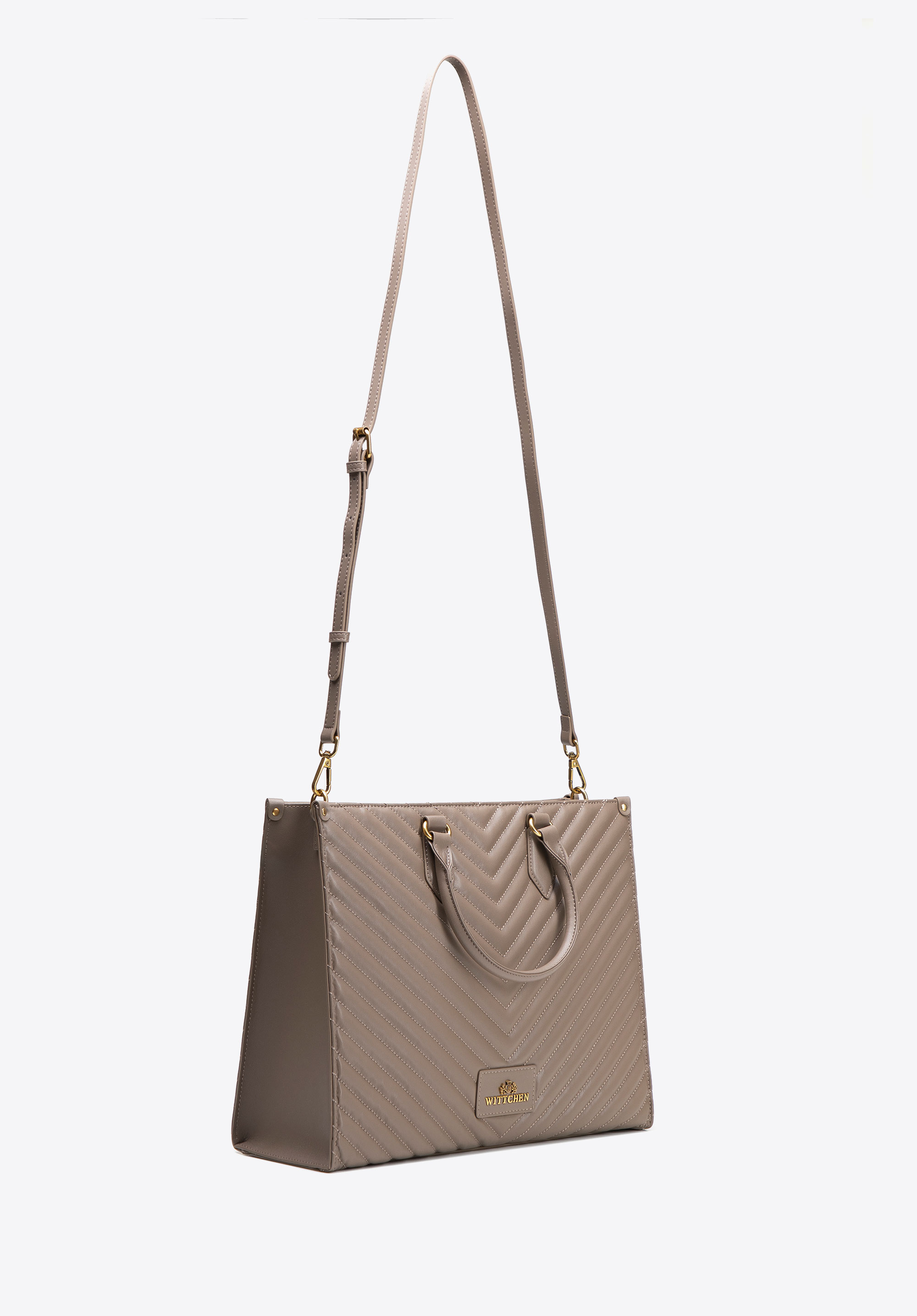 Damska shopperka ze skóry naturalnej z przeszyciami ciemny beż